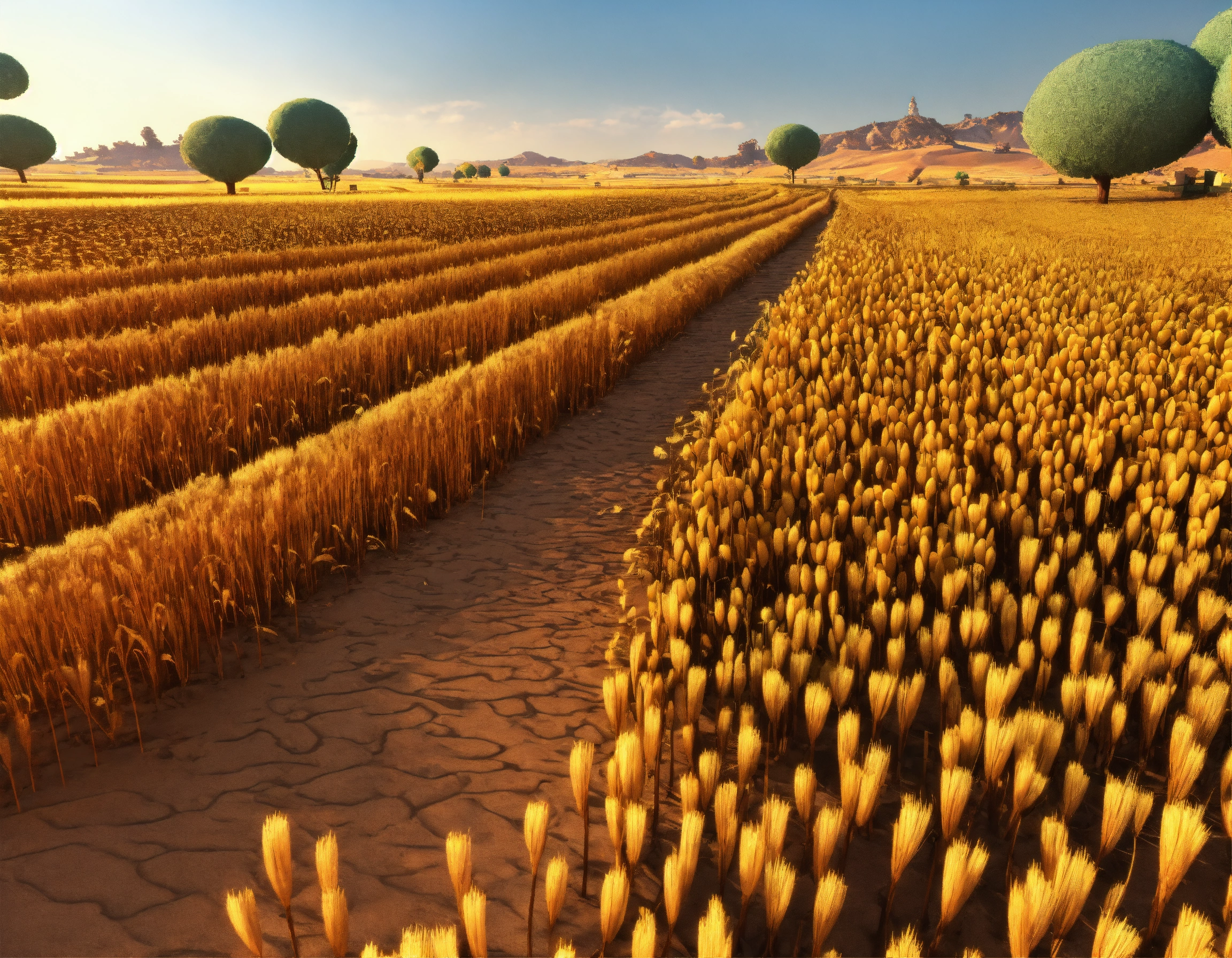 Cartoon 3d field of dry crops