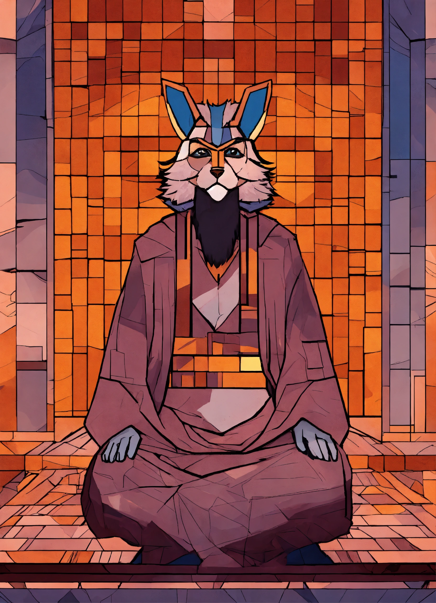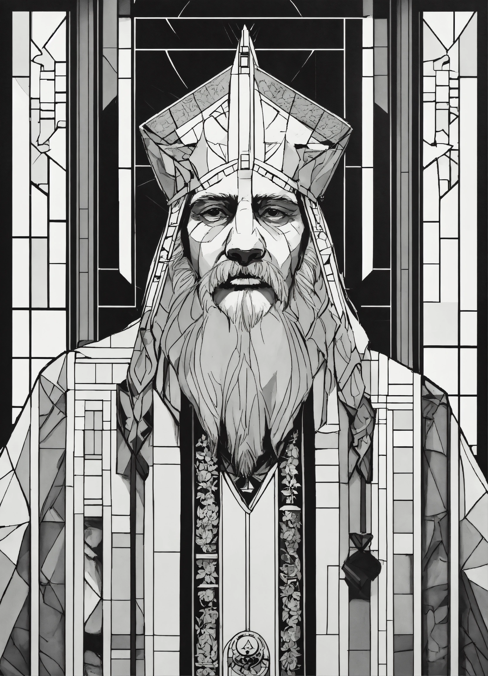 A portrait of a furry holy man with bad cubisme human proportions in brutalism style using lexica aperture v1, 5 outlines only