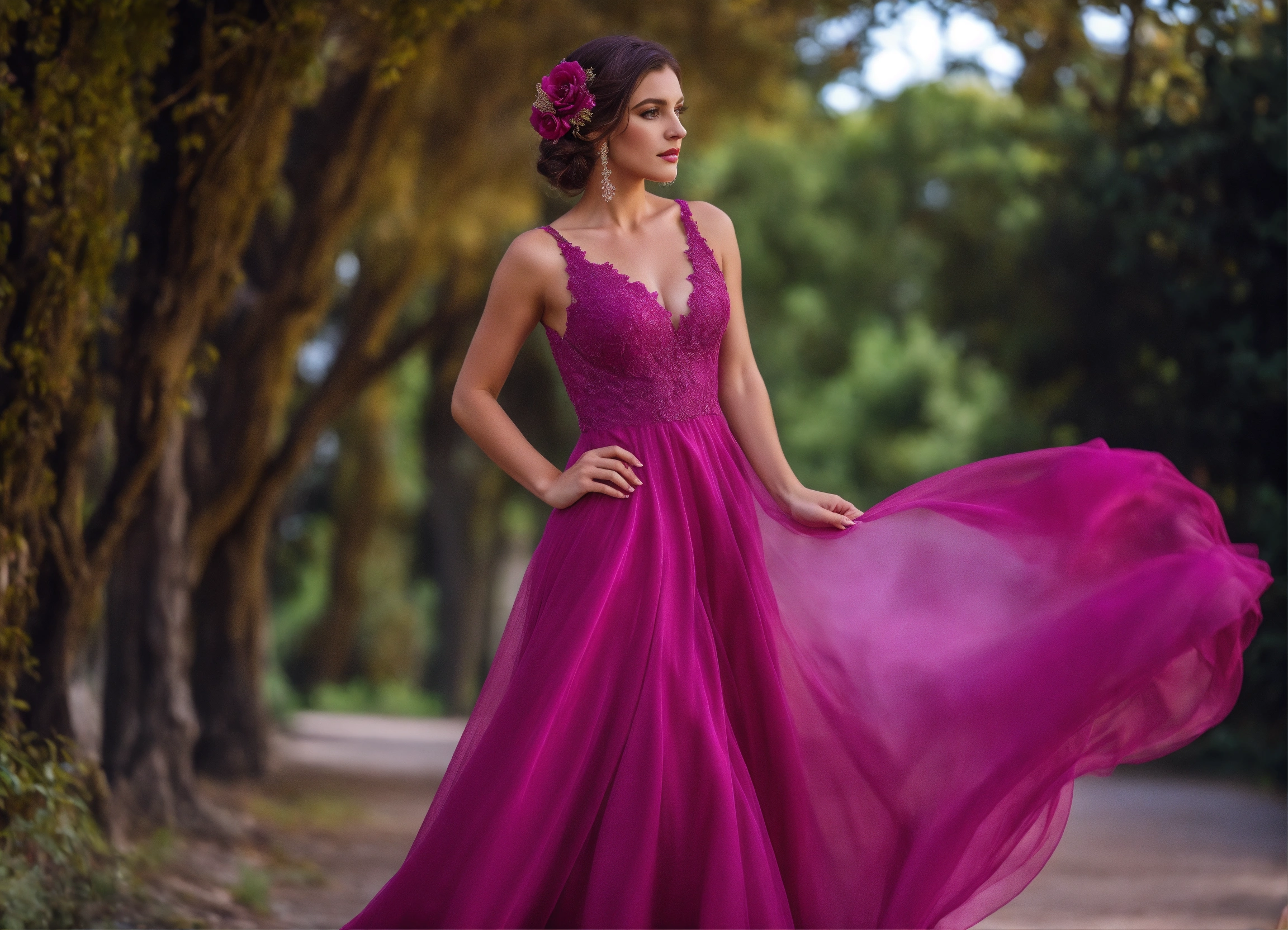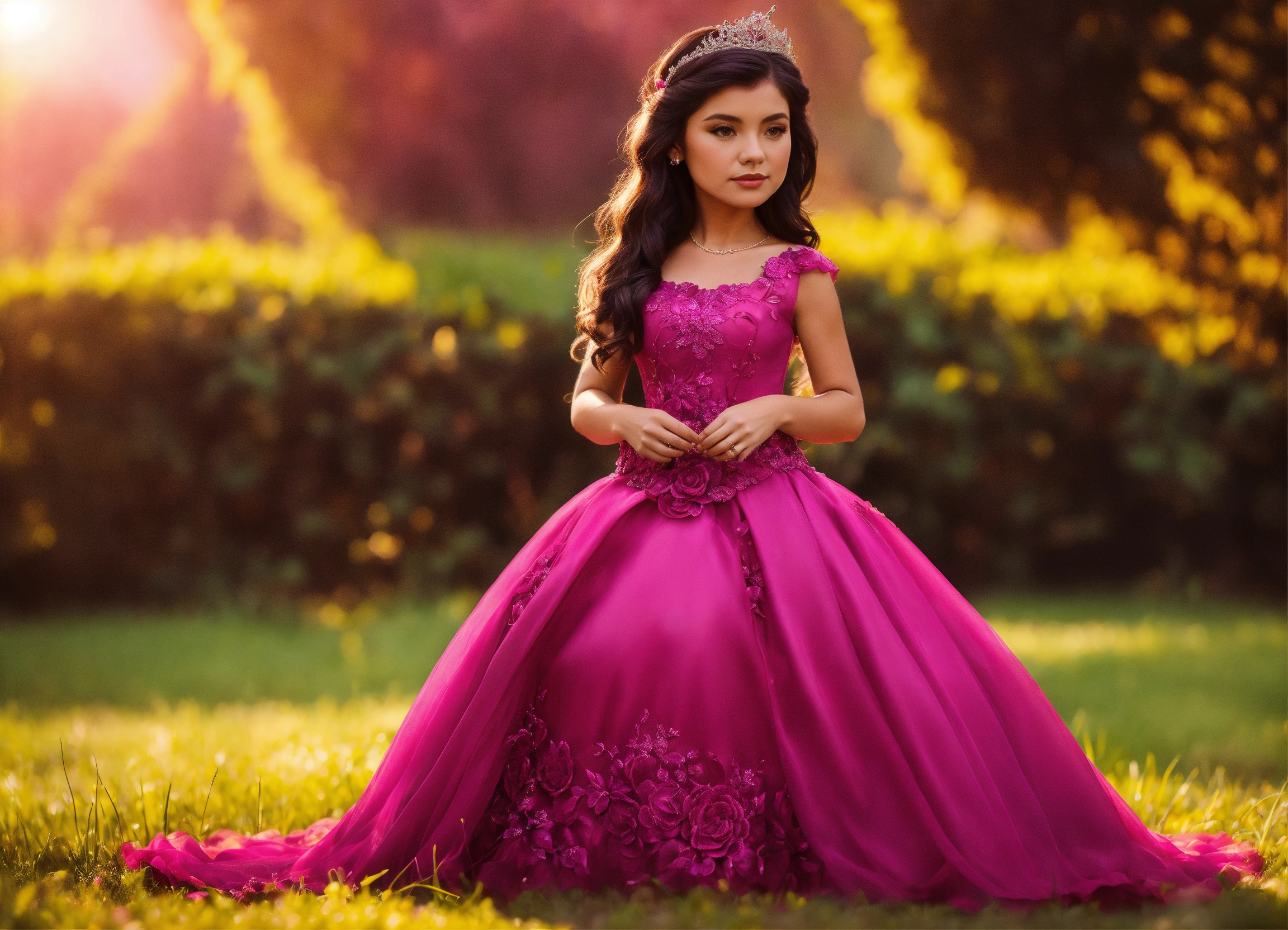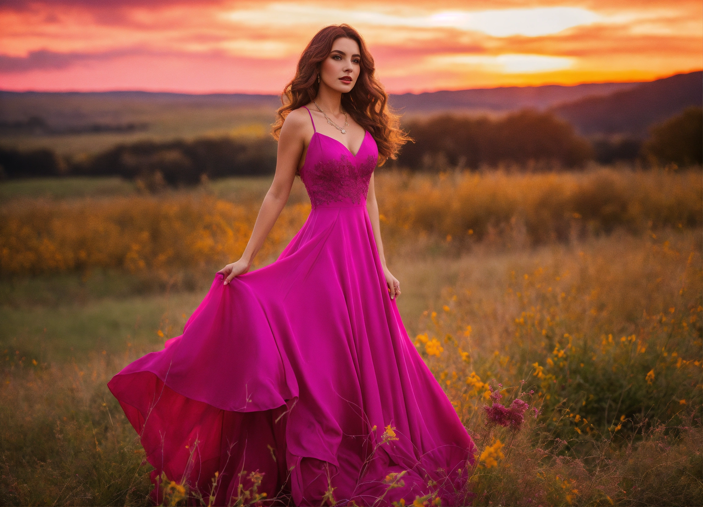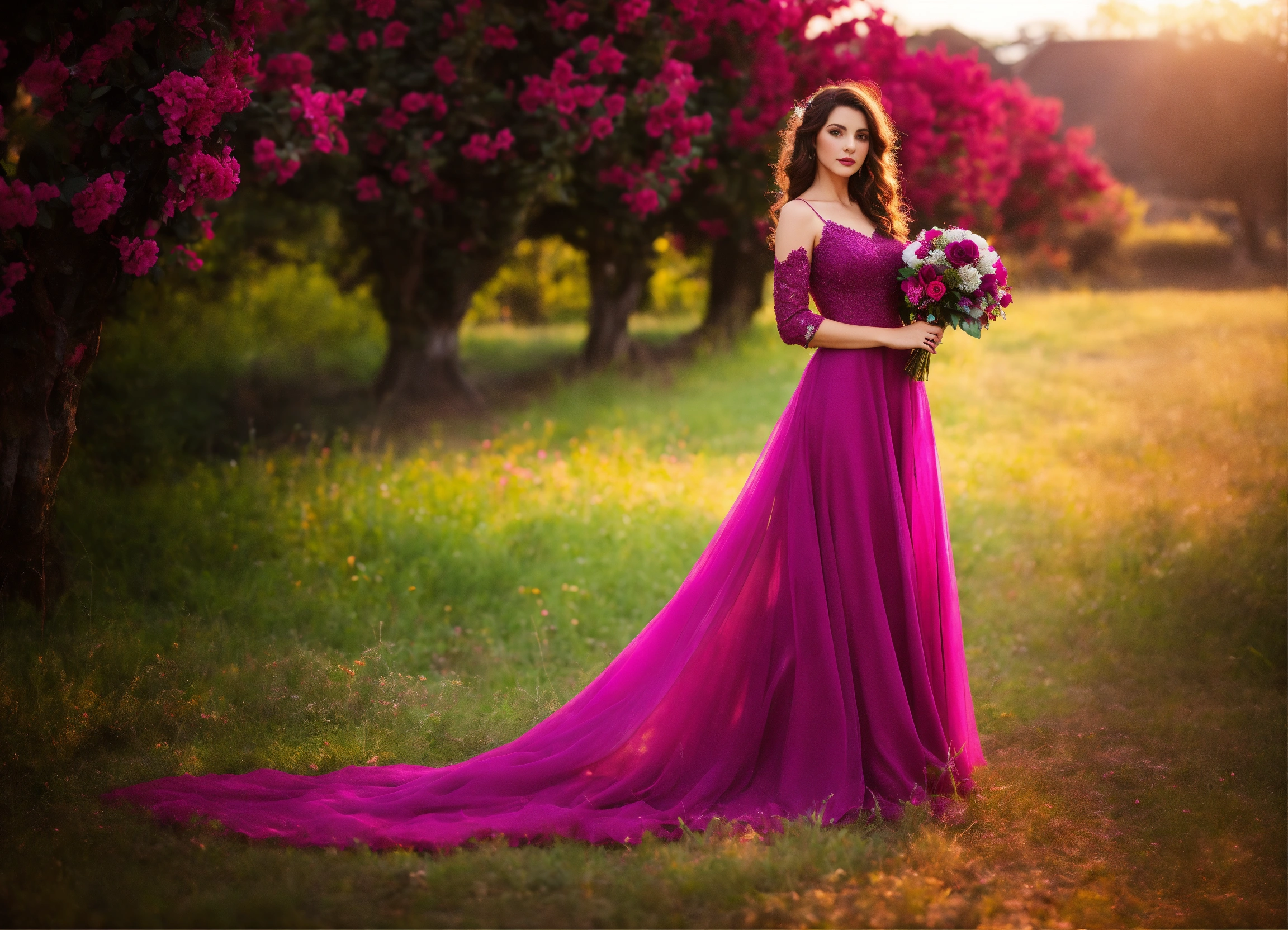 com vestido cor magenta
