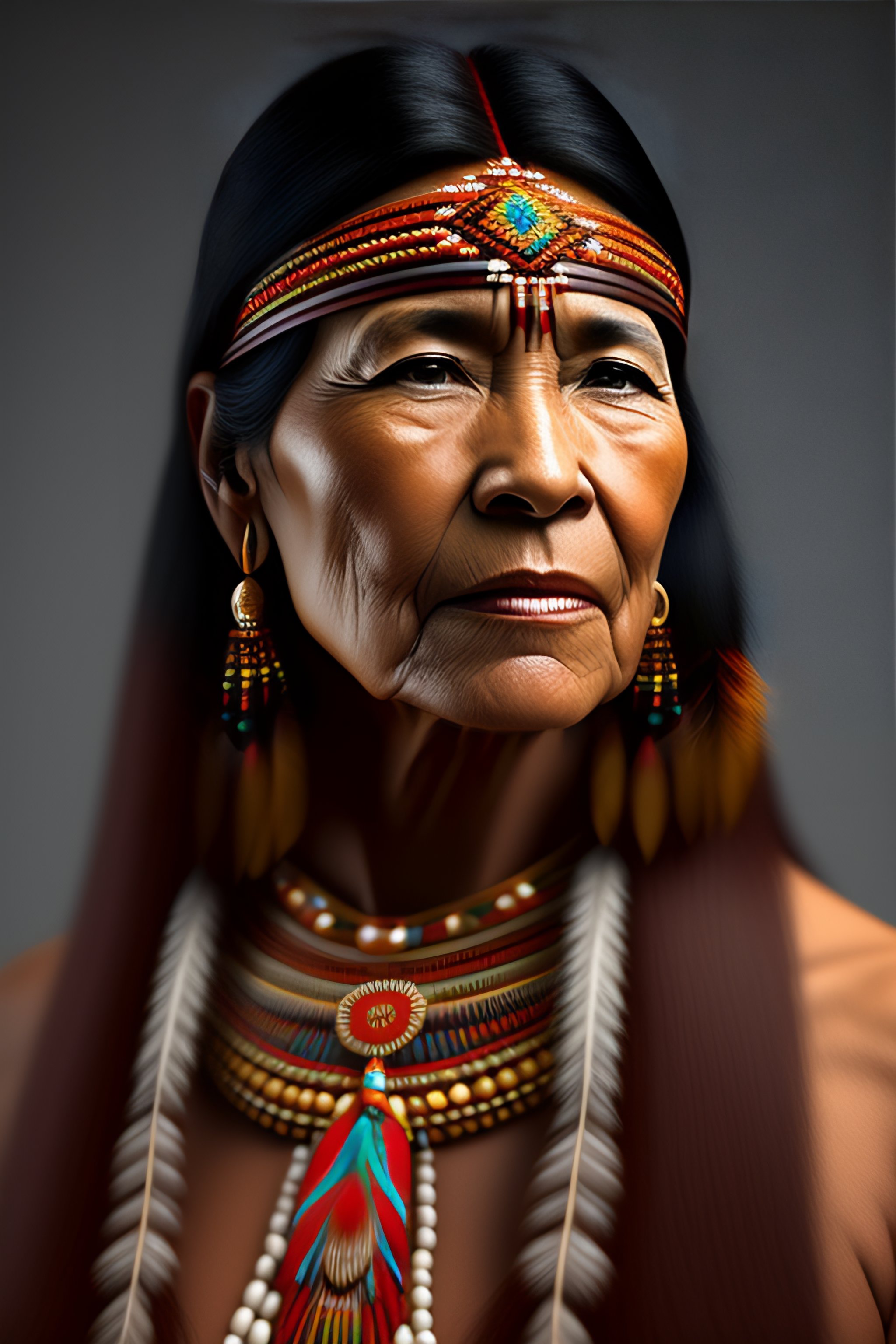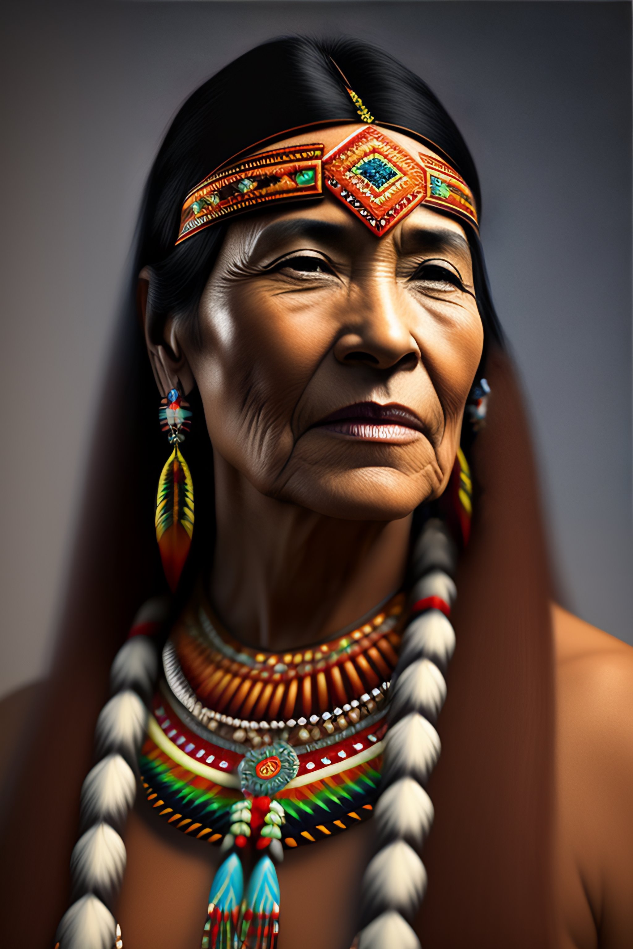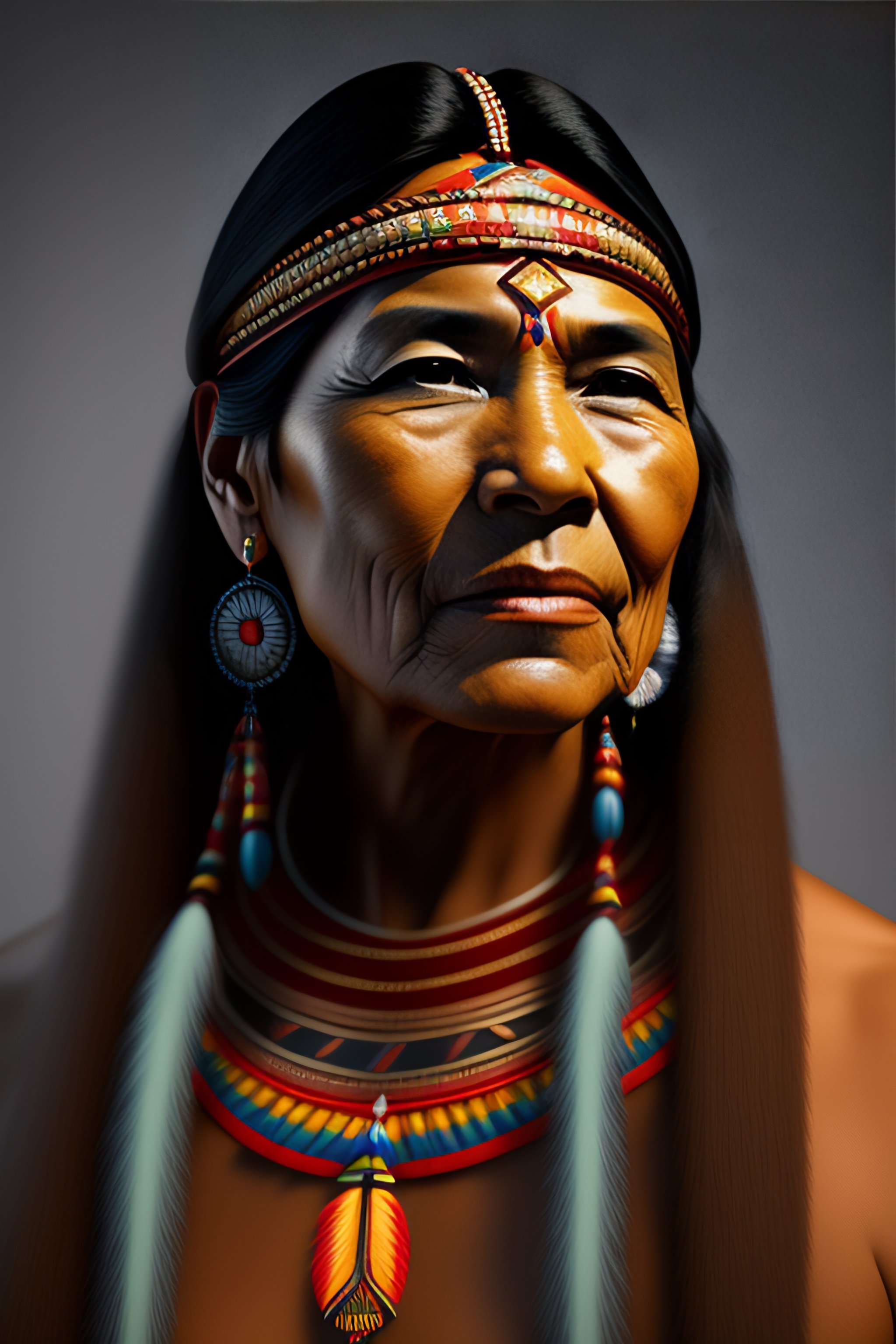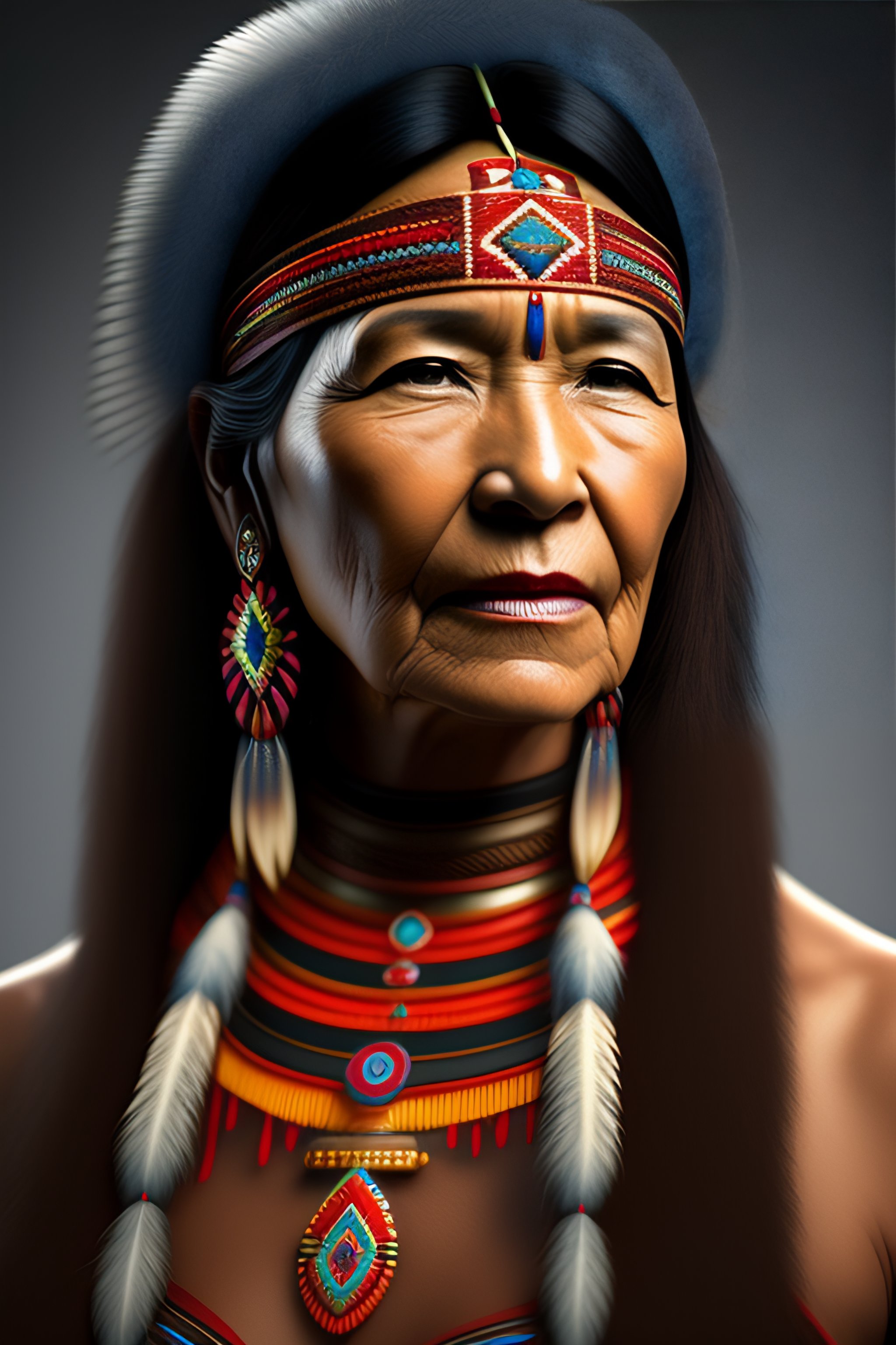 Native american woman portrait in 3d digital art change face