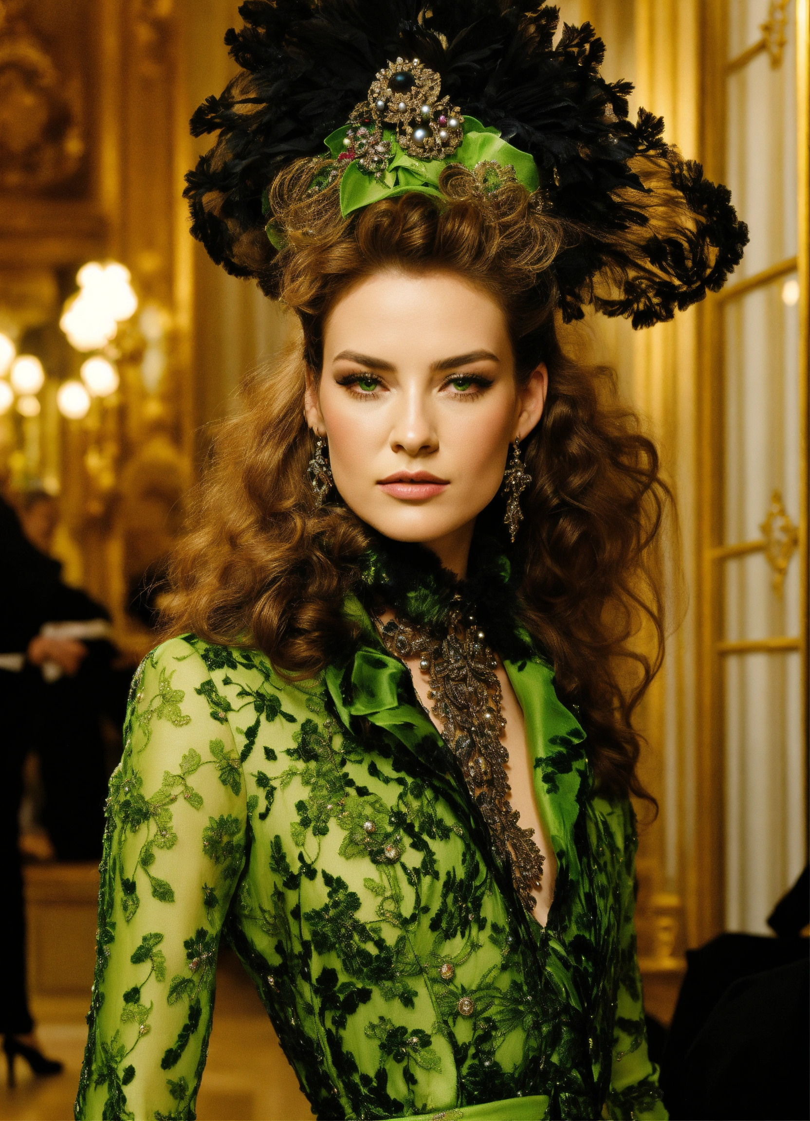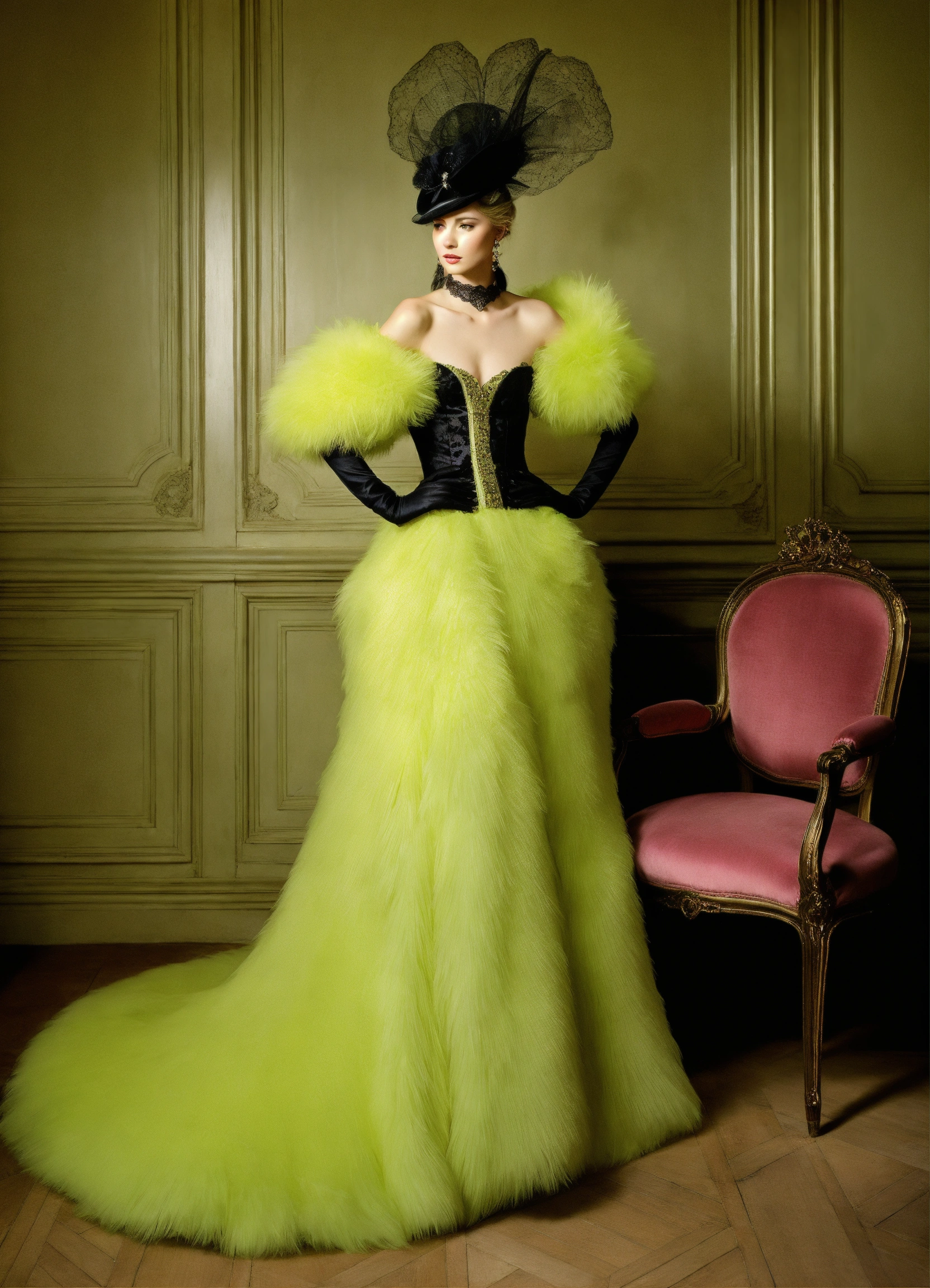 Christian dior, galliano john, haute couture fall 2009, basques, girdles, lace-edged slips, petticoats, black pearl, black gloves, touch of leoperd, curly hair chignon, tule vail, high heels, parisian salon, boutique, montaigne avenue, bright space well lit suit, bar suit, le new look, white walls, fluorescent green fur, leopard, king louis xiv