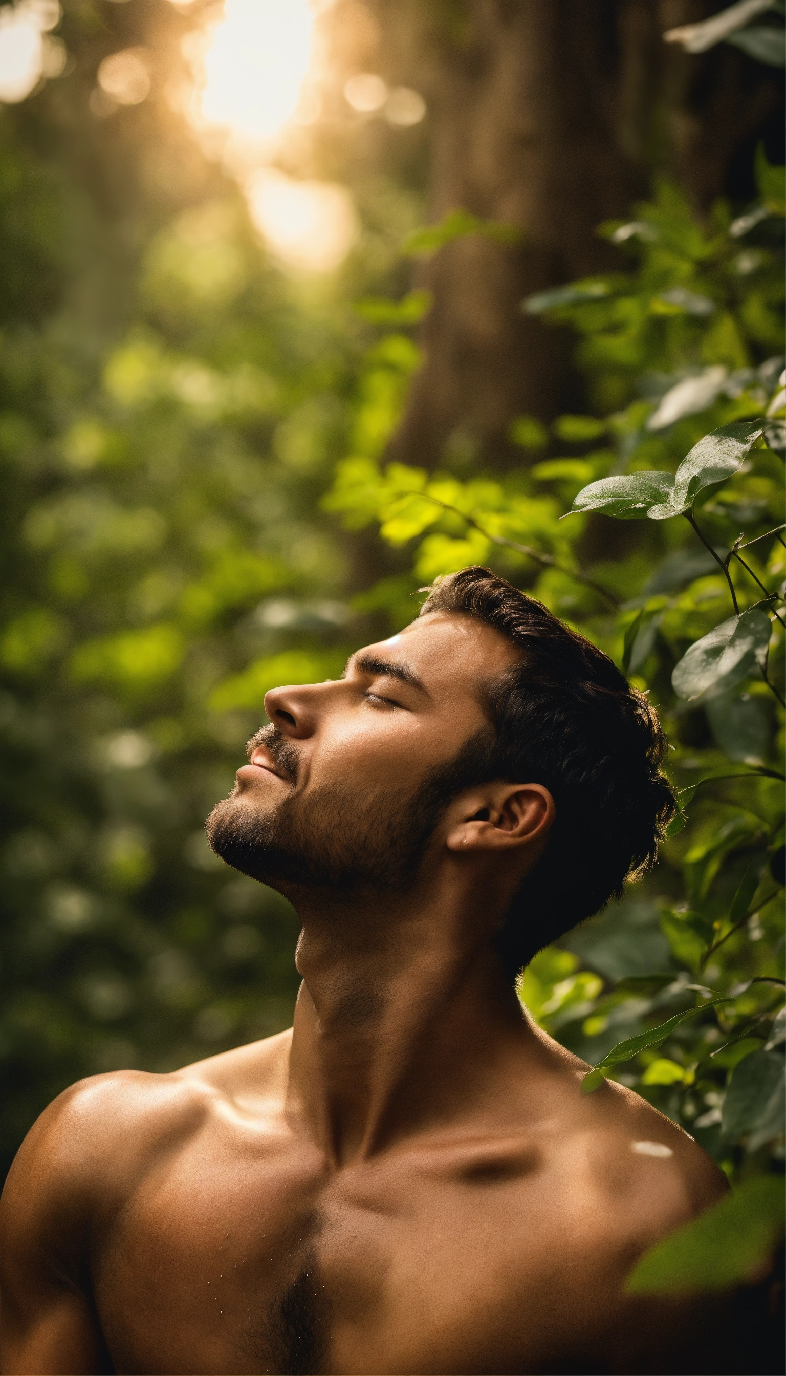 Man taking in deep breath in natures rich scent