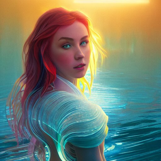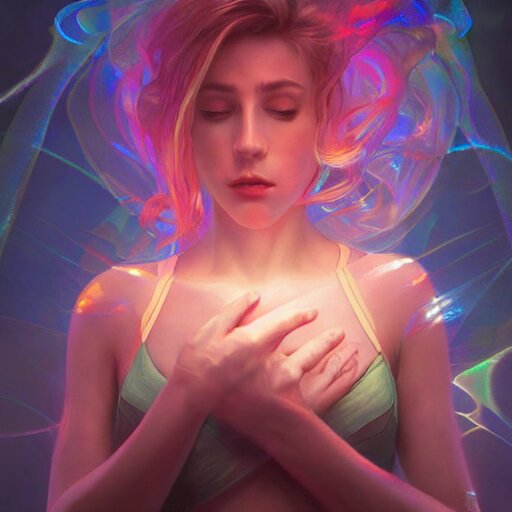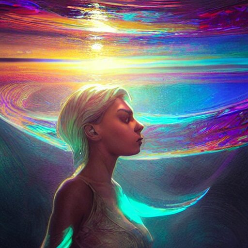 Color light waves, color spectrum refraction, light through glass, girl in water, cinematic lighting, highly detailed, trending art station, concept art, unreal engine 5, photorealism, 8k resolution, cinema 4d, beautiful, art by artgerm and greg rutkowski and alphonse mucha and loish and wlop