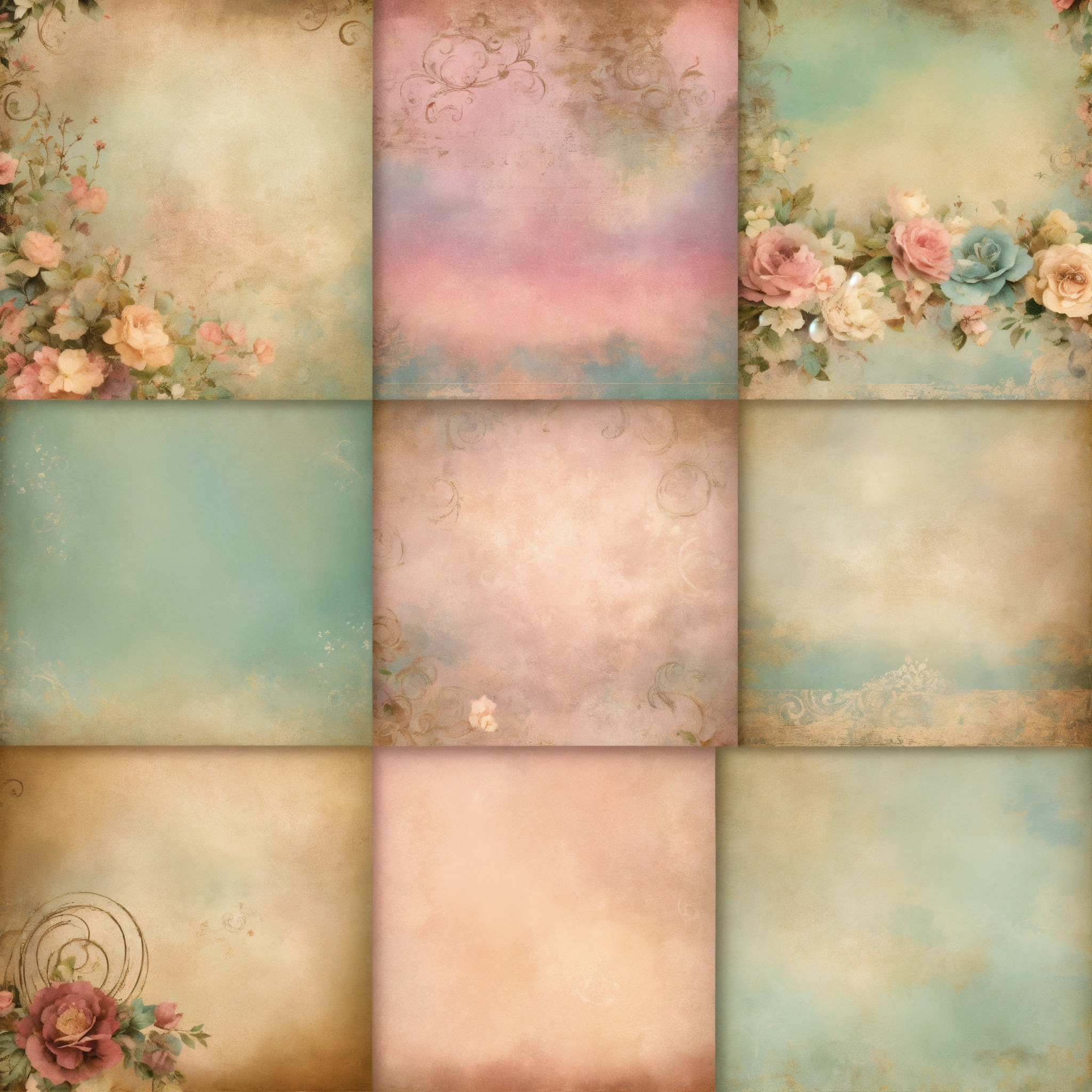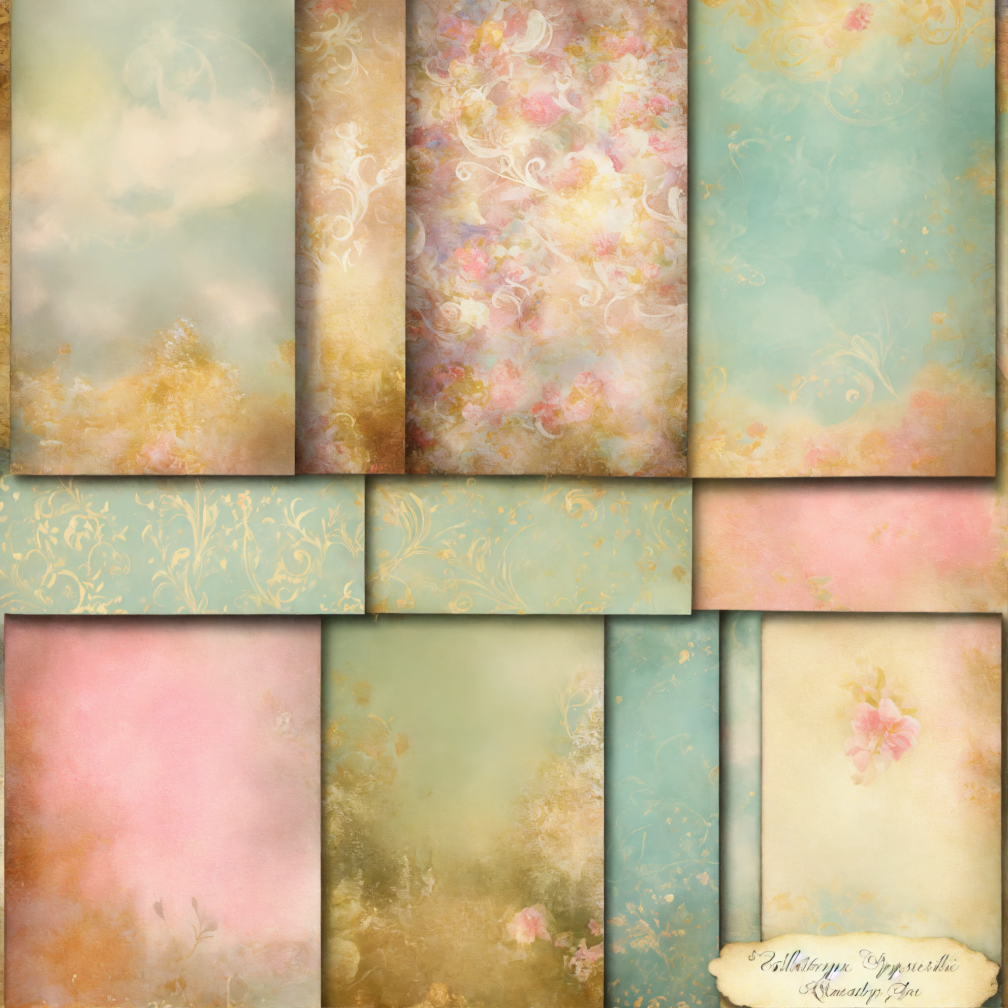 Shabby chic dreamy mist pastel junk journals vintage seamless abstract patterns, fullpage full page, ephemera digital paper, textured digital paper, scrapbook, decoupage, papercraft, antique texture swirling magical fairytale abstract art style
