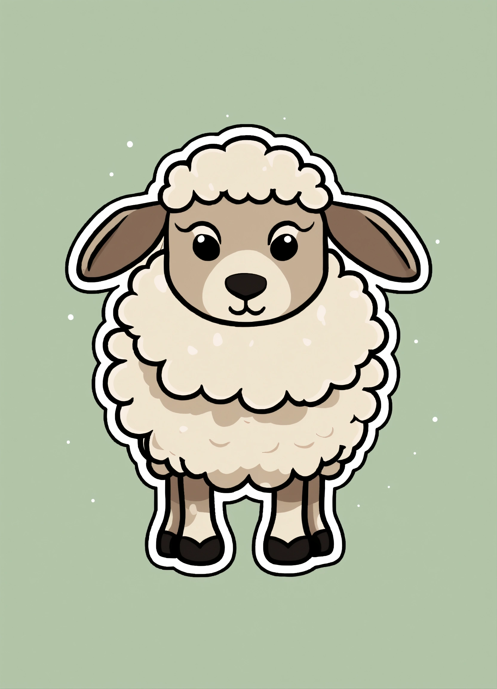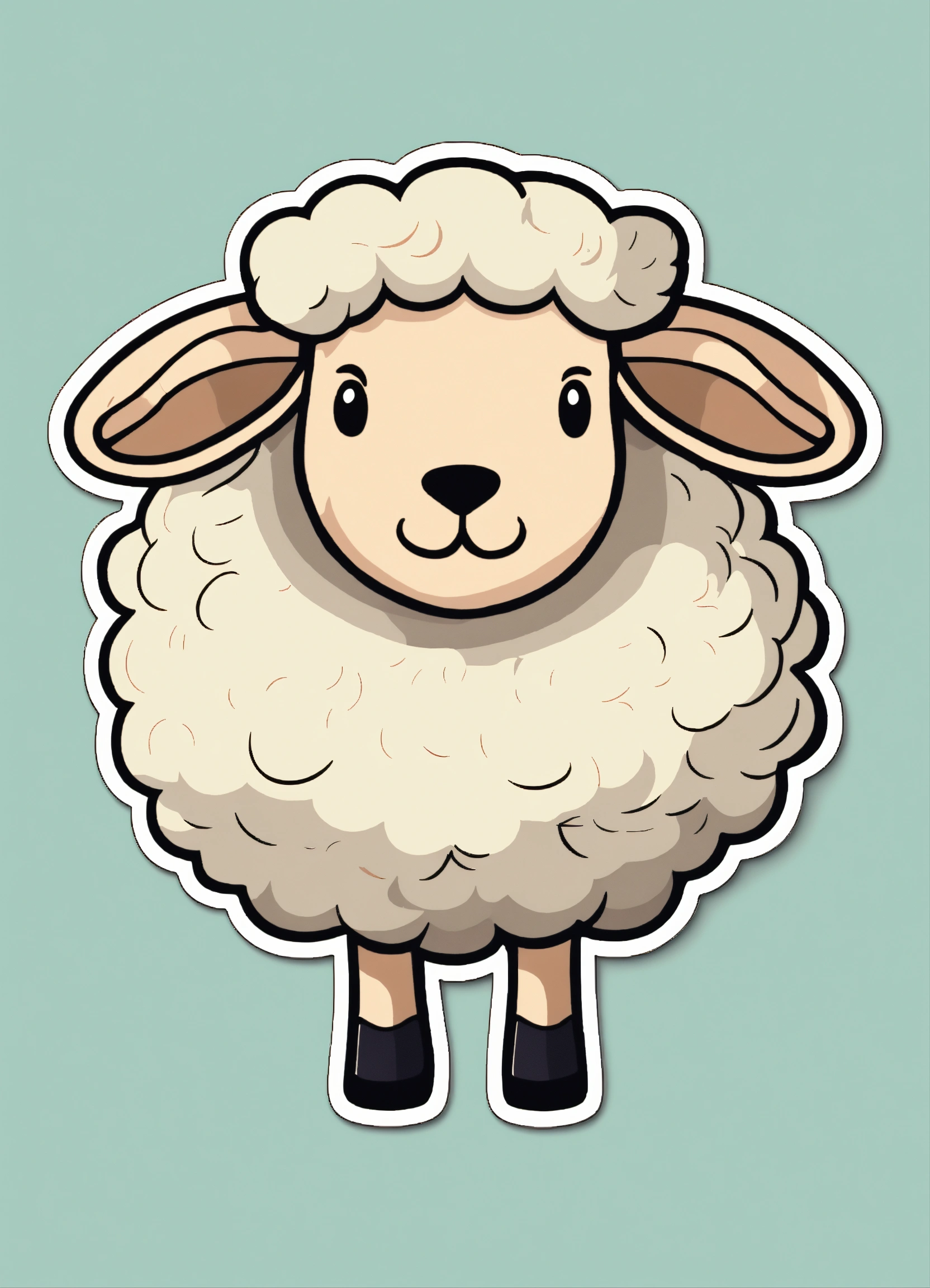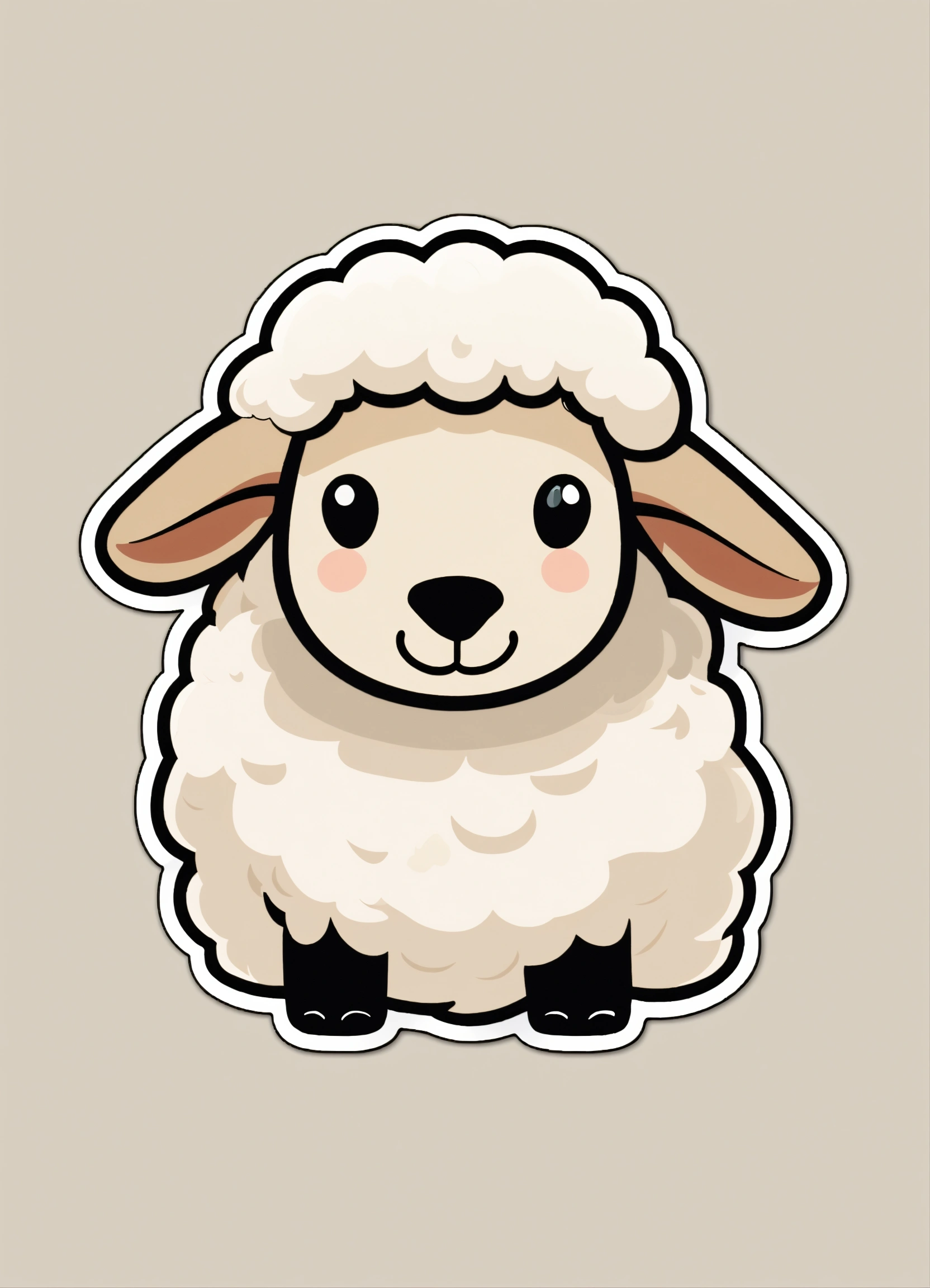 Printable sticker featuring a minimalistic cute cartoon sheep