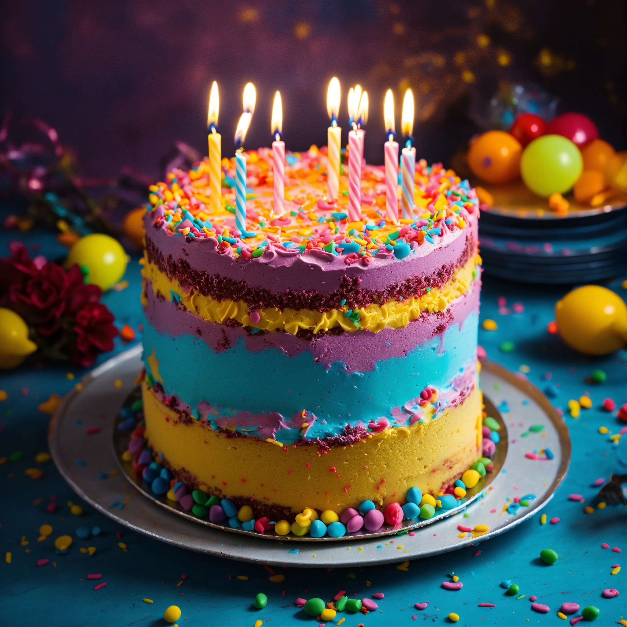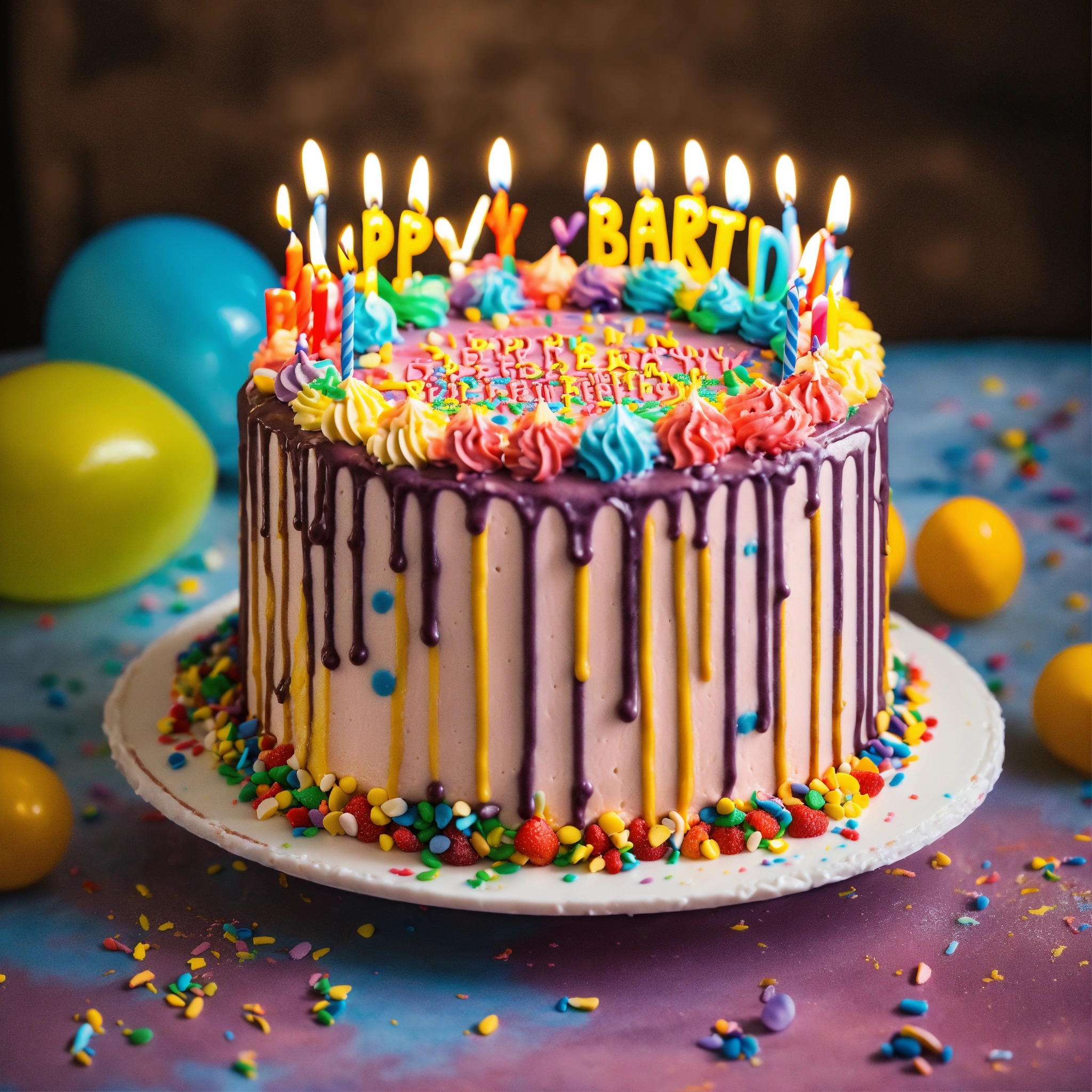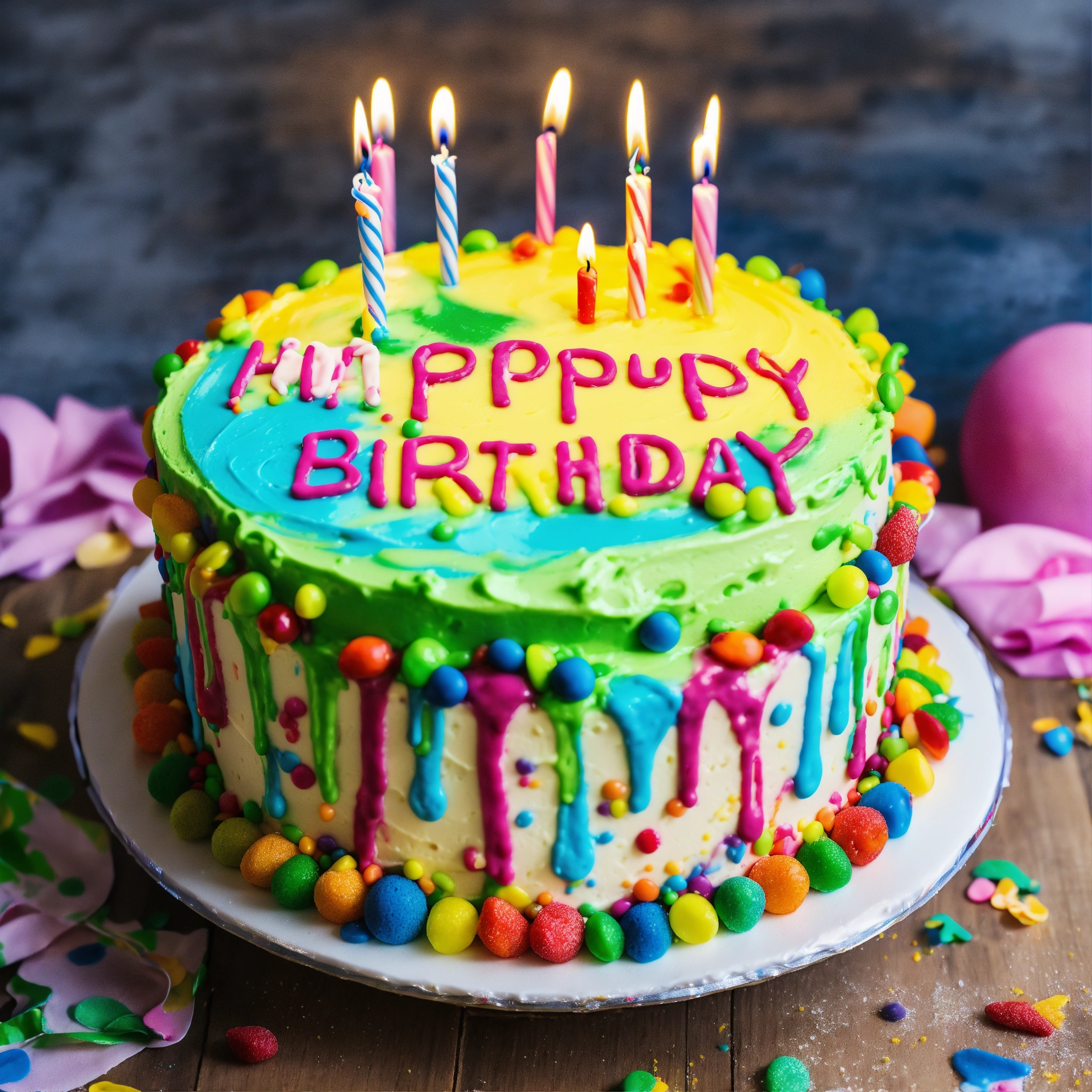 A photo of a delicious birthday cake, the cake is decorated with colorful icing and has a happy birthday message written on it