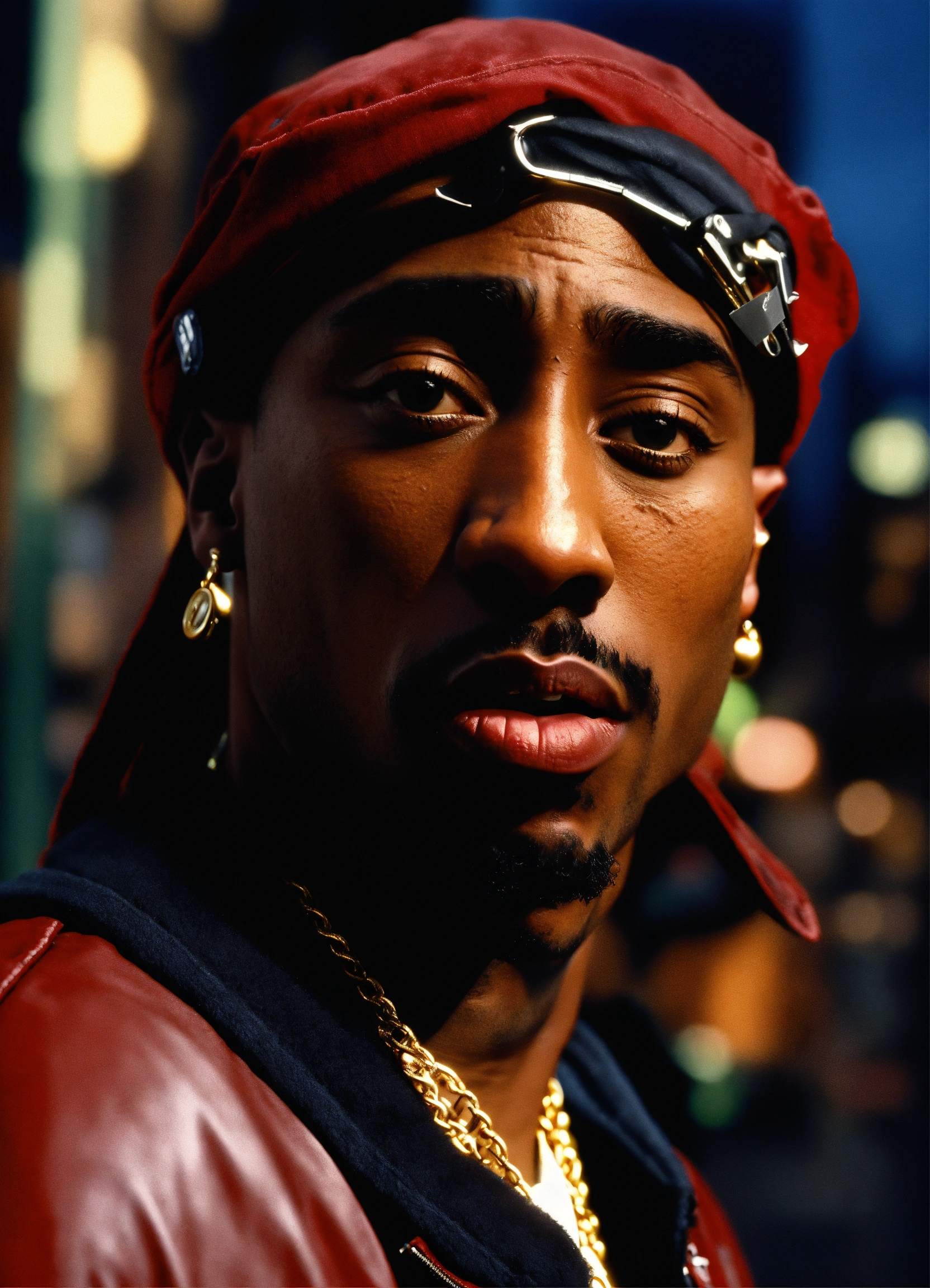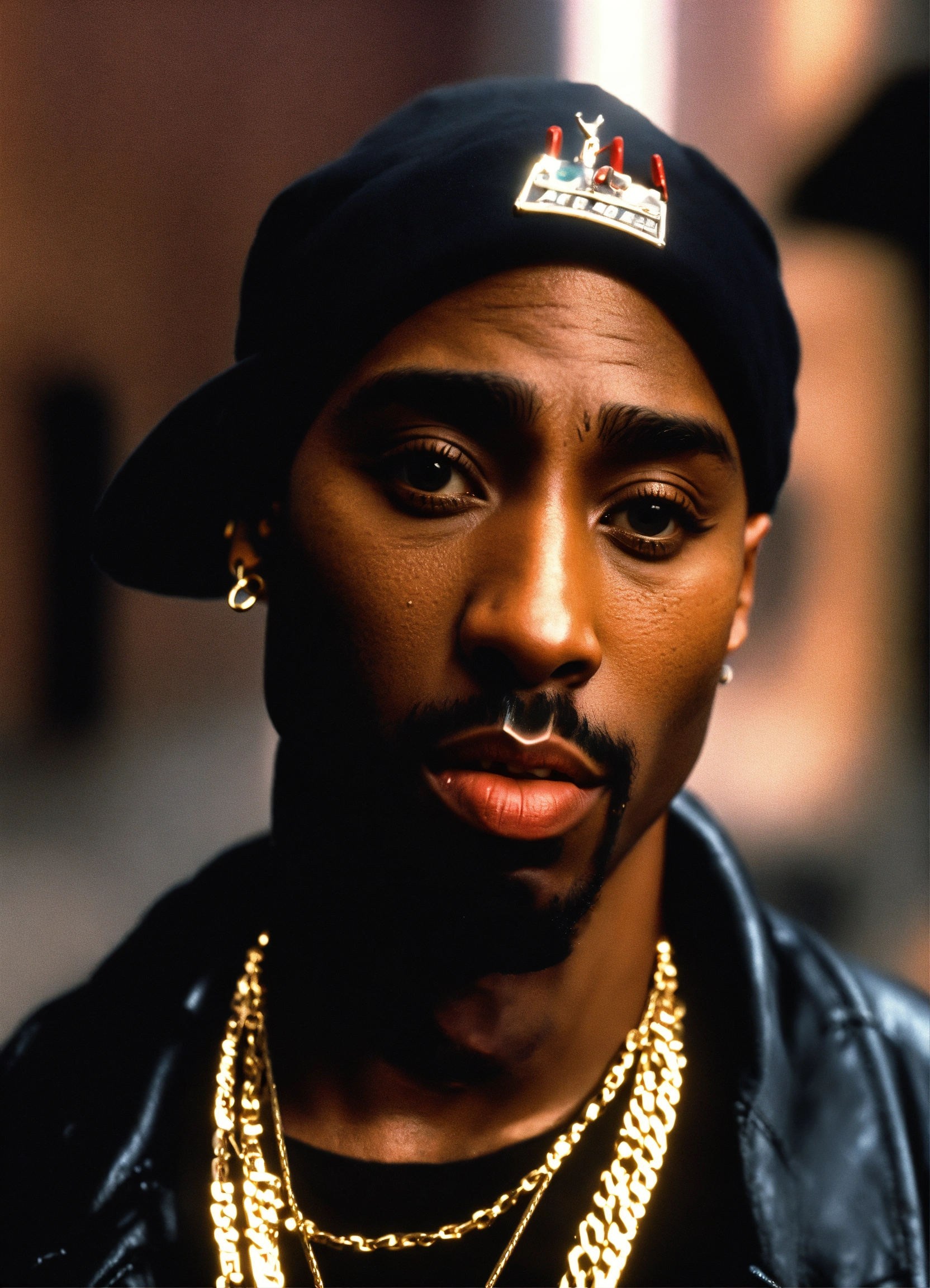 Tupac shakur as birdie in the movie “above the rim” 8k unreal render, high definition, crime noir aesthetic razor blade in mouth