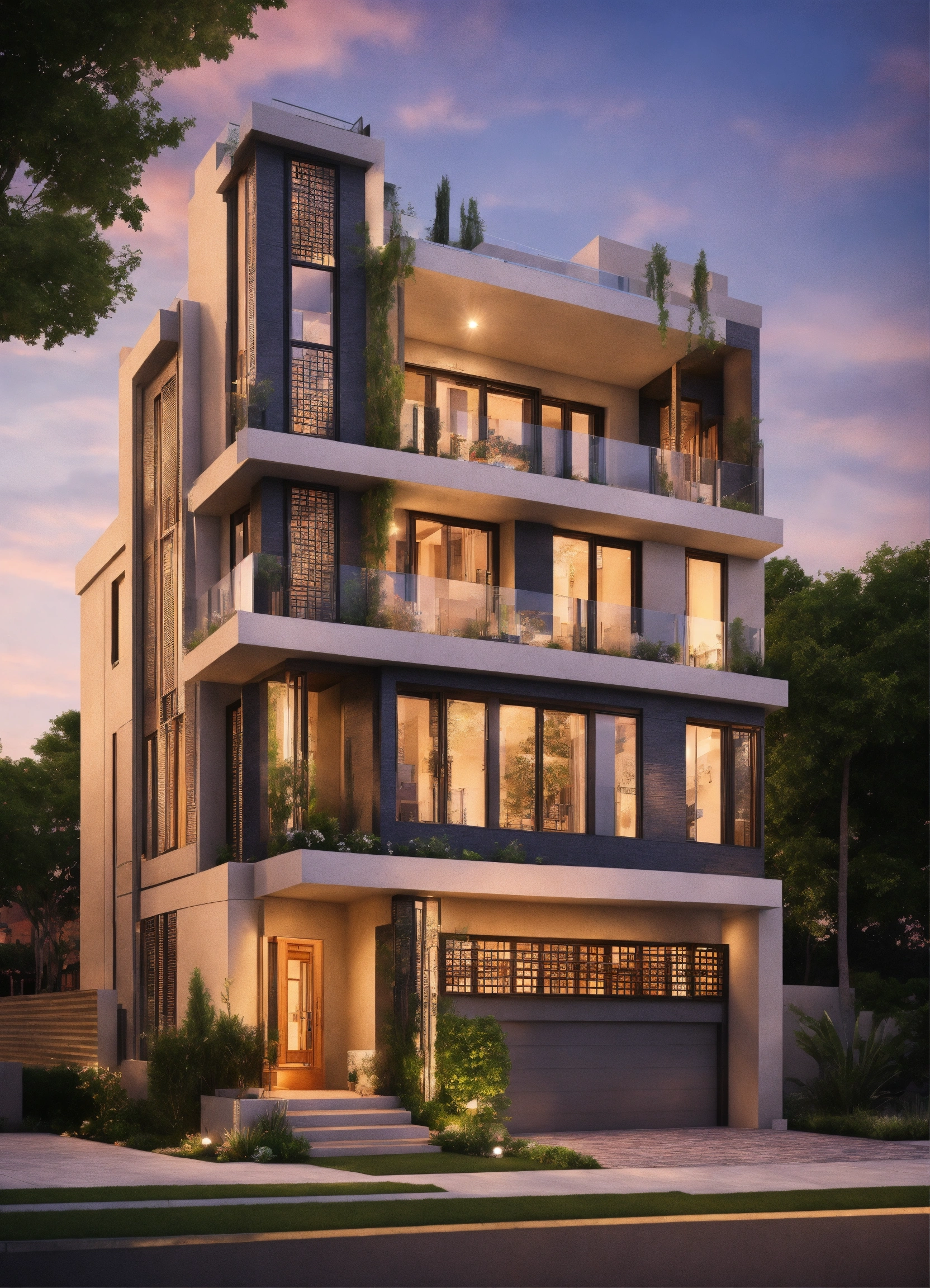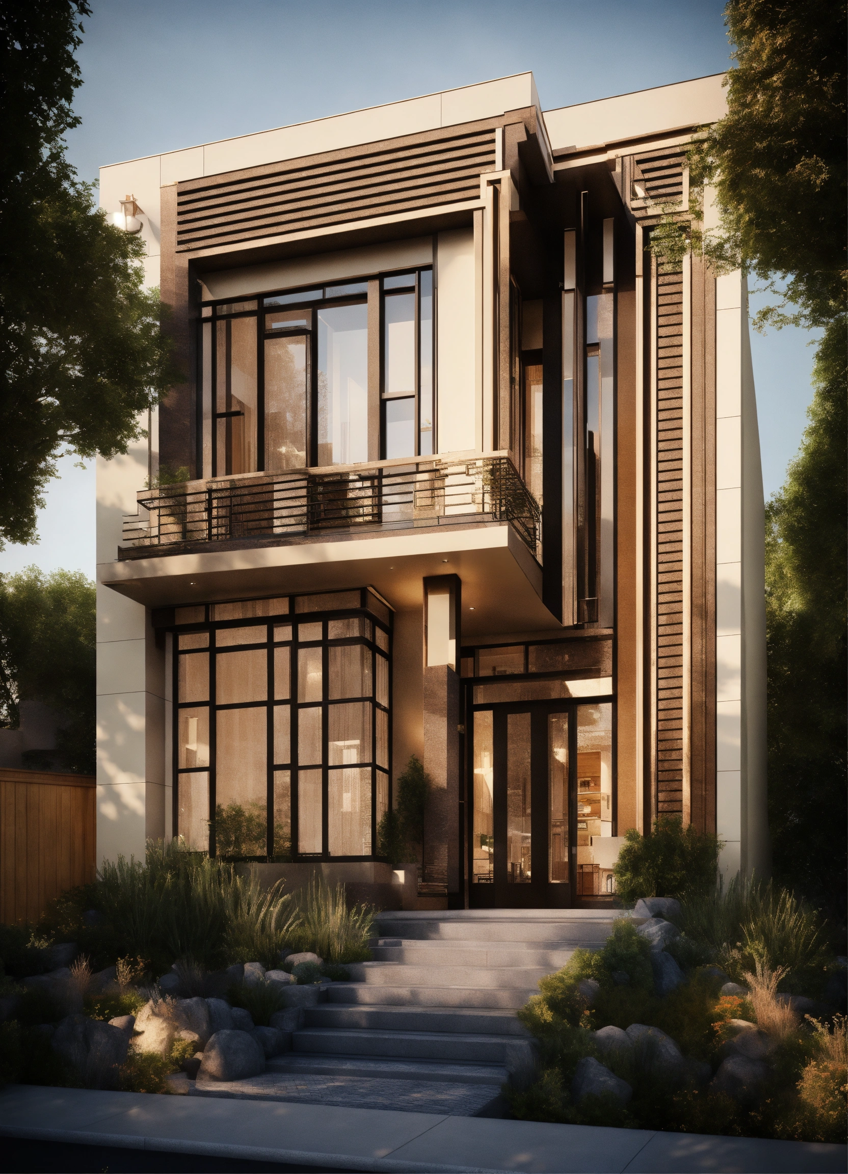 Innovative arcitectural design of 2 story residential buildings in art deco architecture ،https//lexica, art/prompt/c80293e9-eb63-40ac-88a4-dd809afc1ead