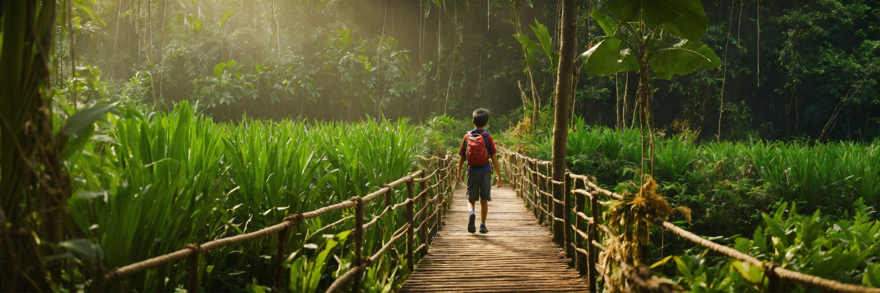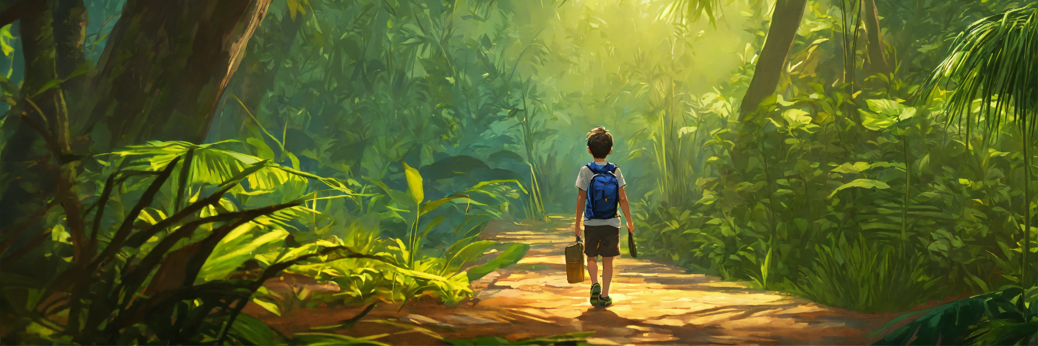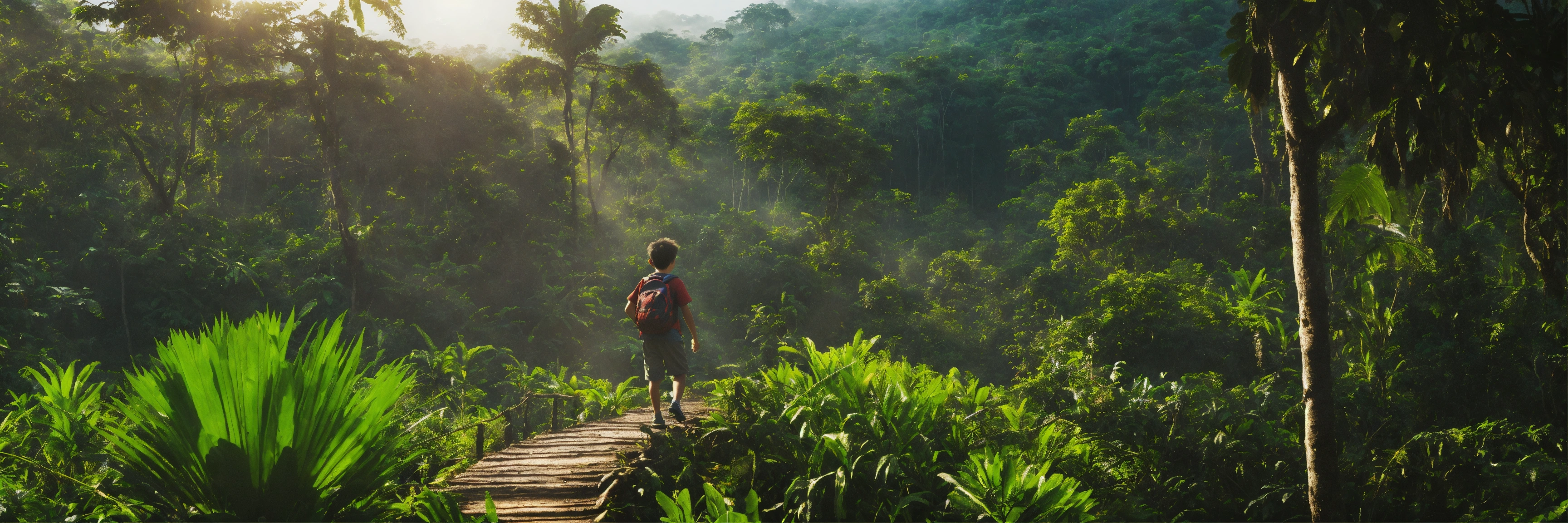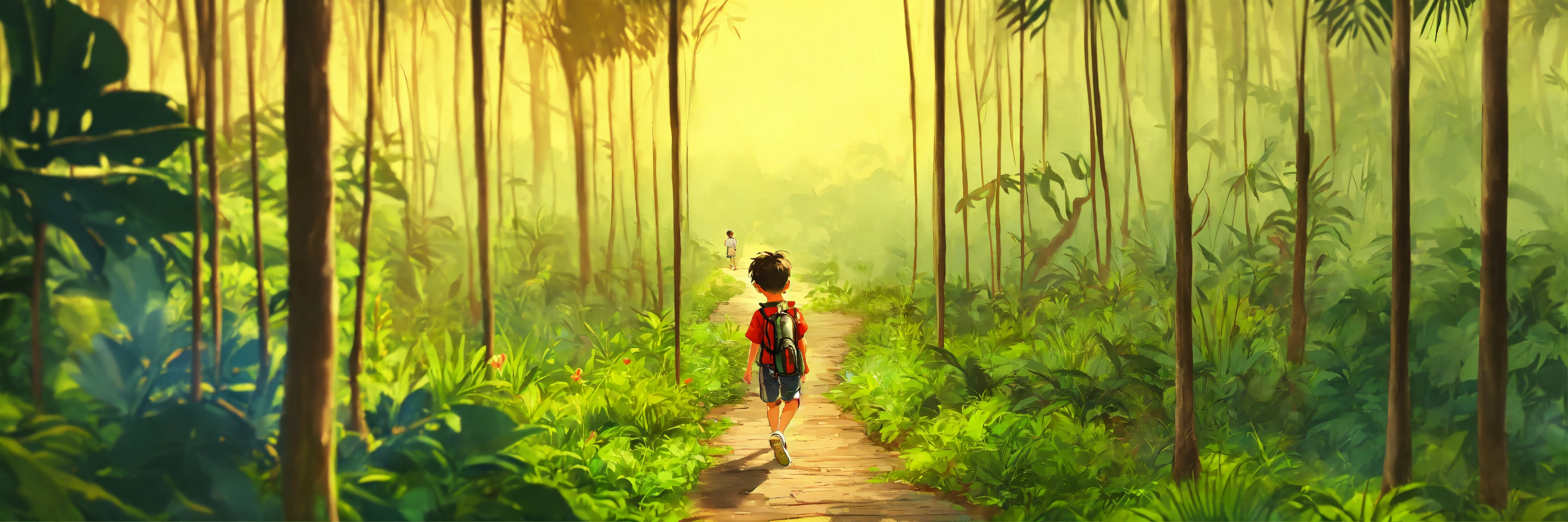 Boy wandering in jungle lost route