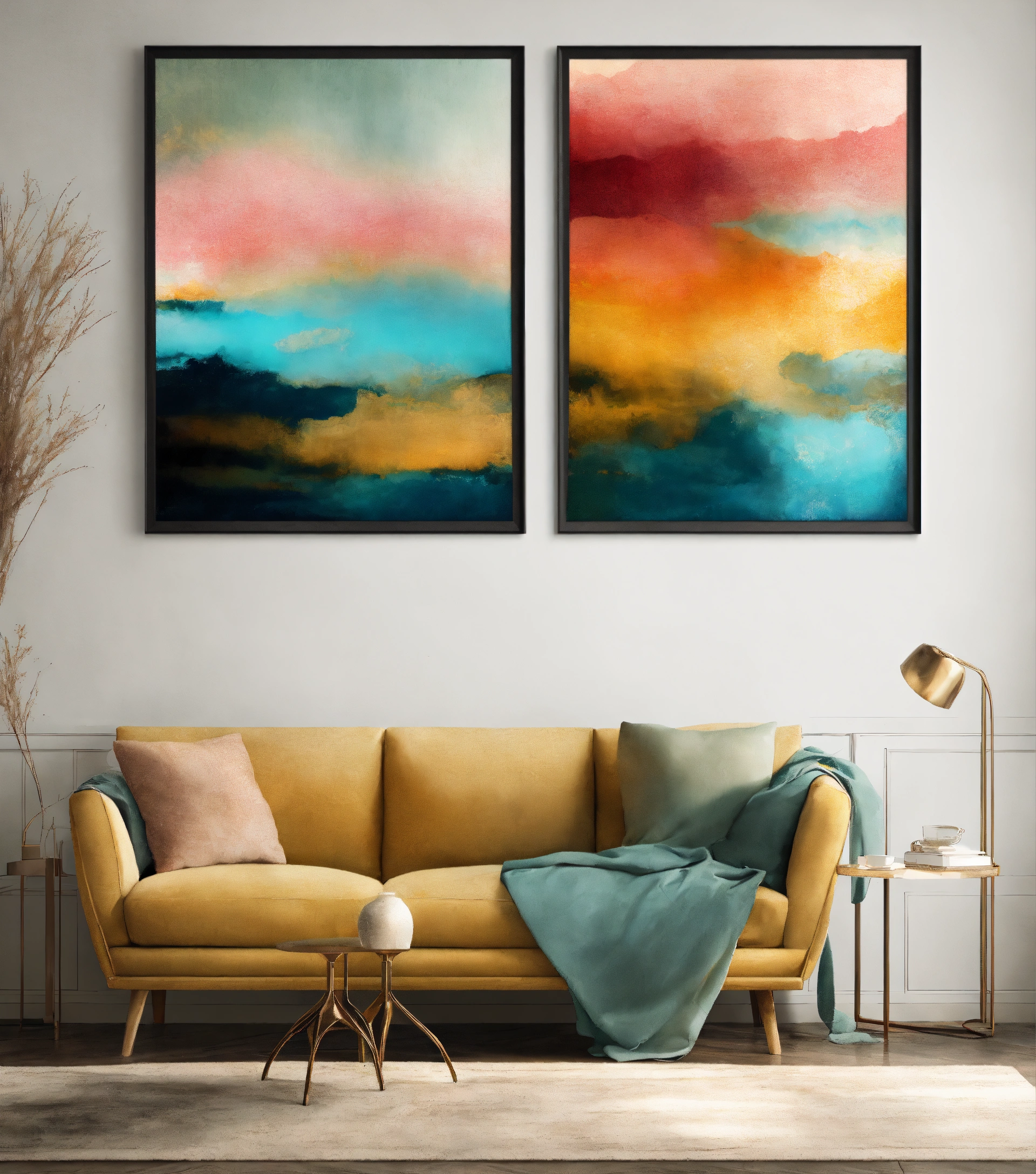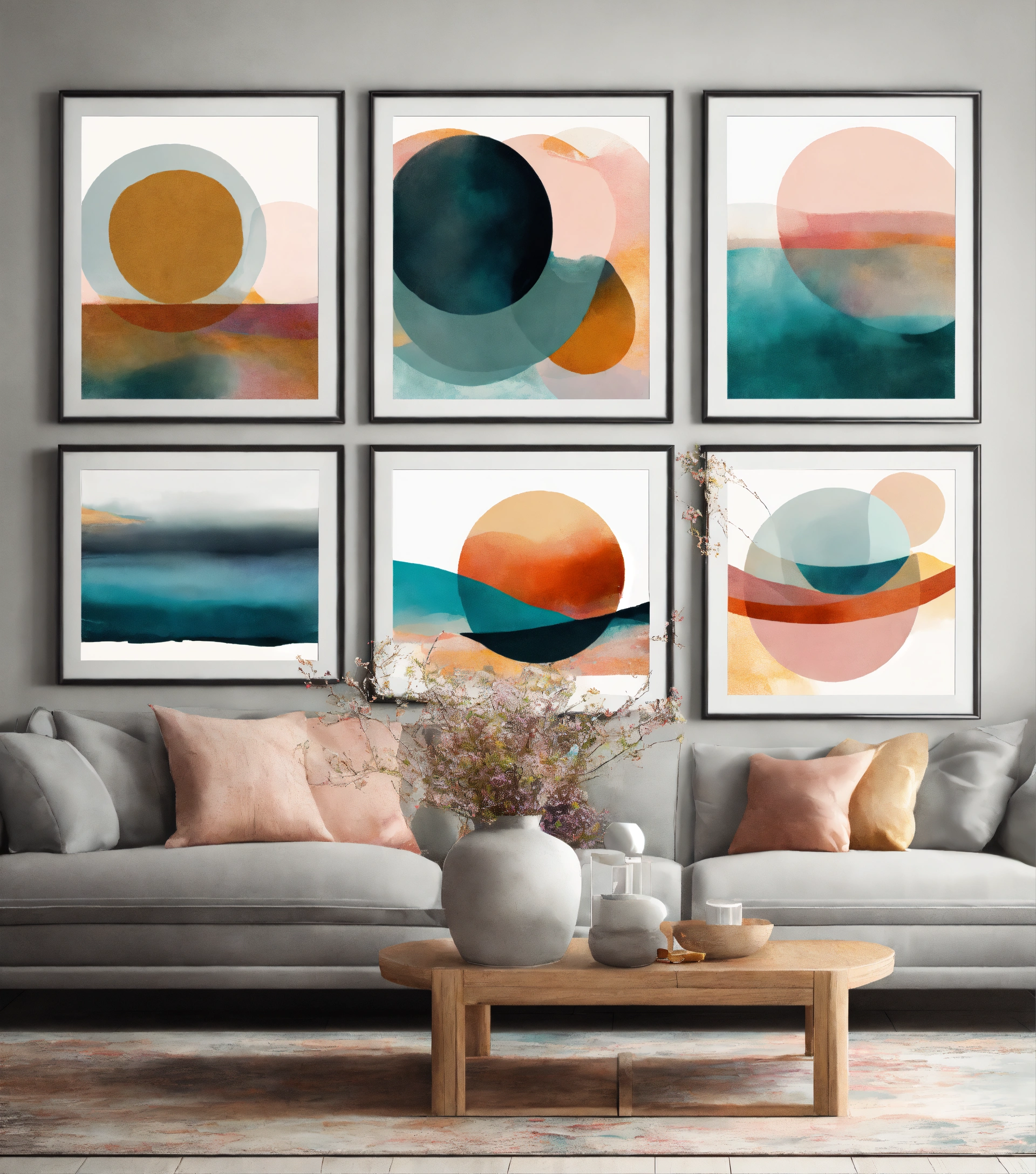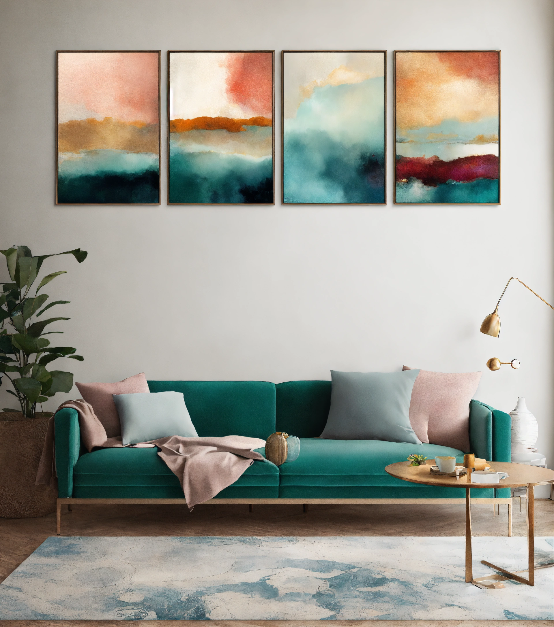 Abstract wall art set of 4, colorful printable artwork, digital art prints, modern abstract art of tranquility and serenity