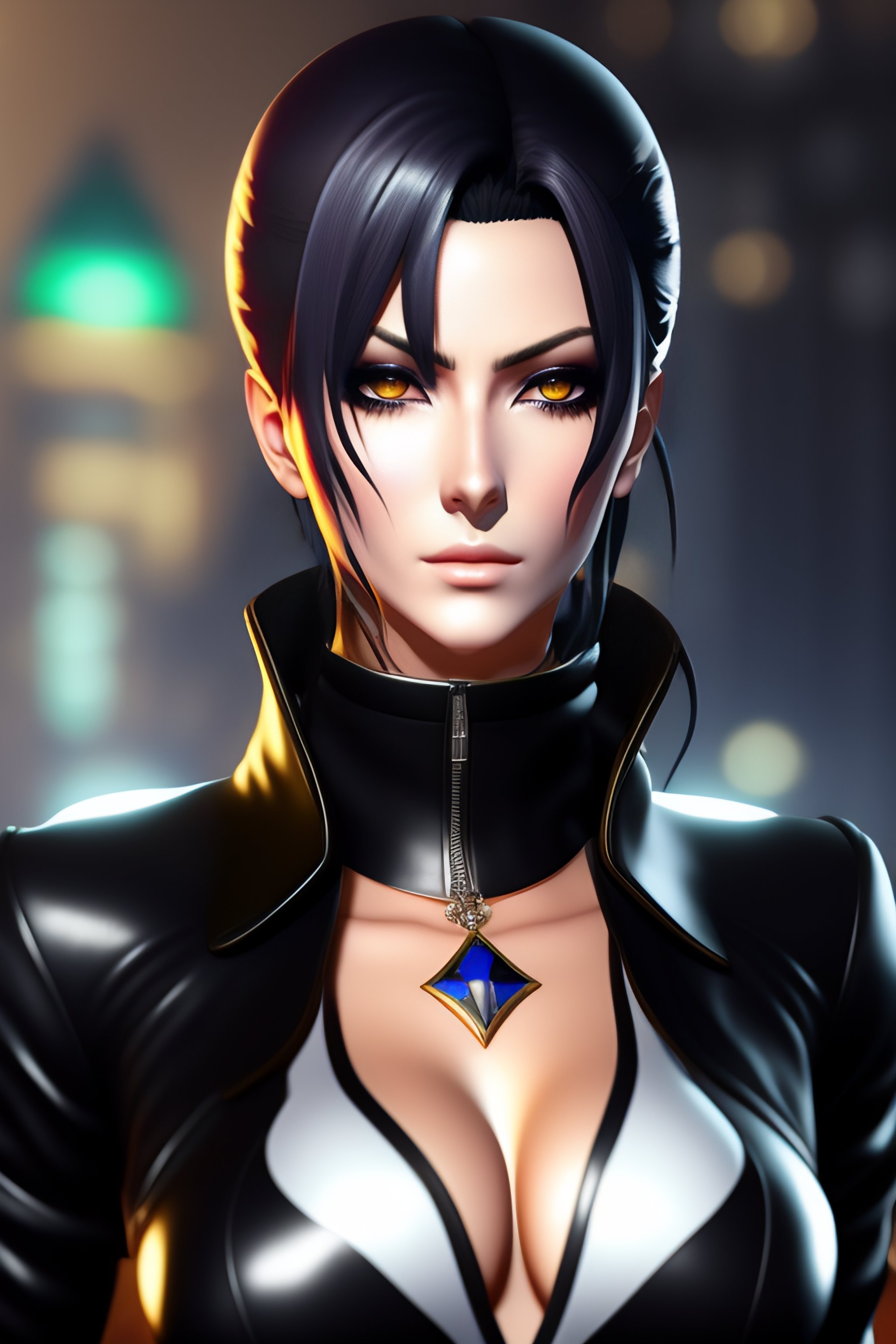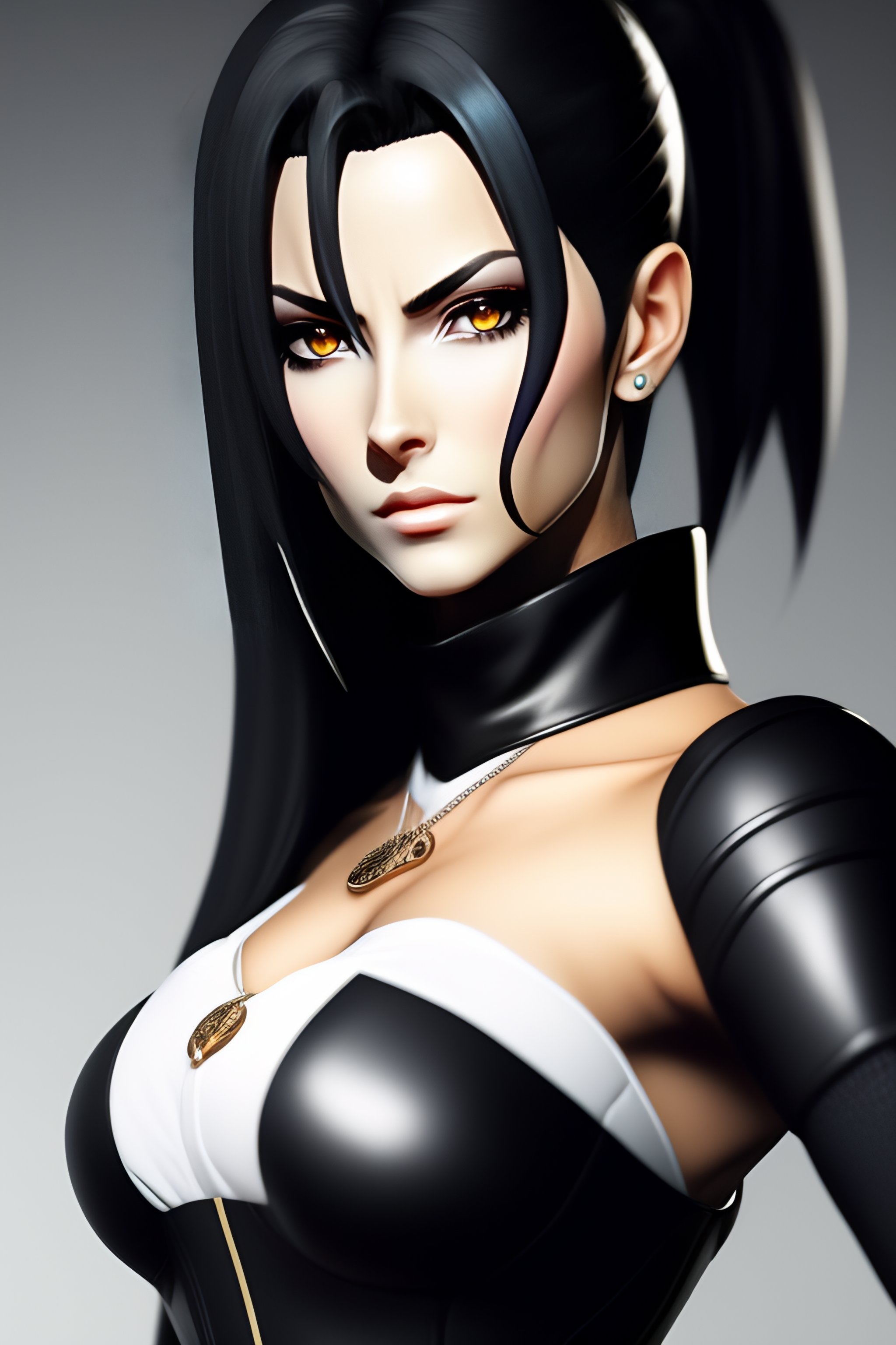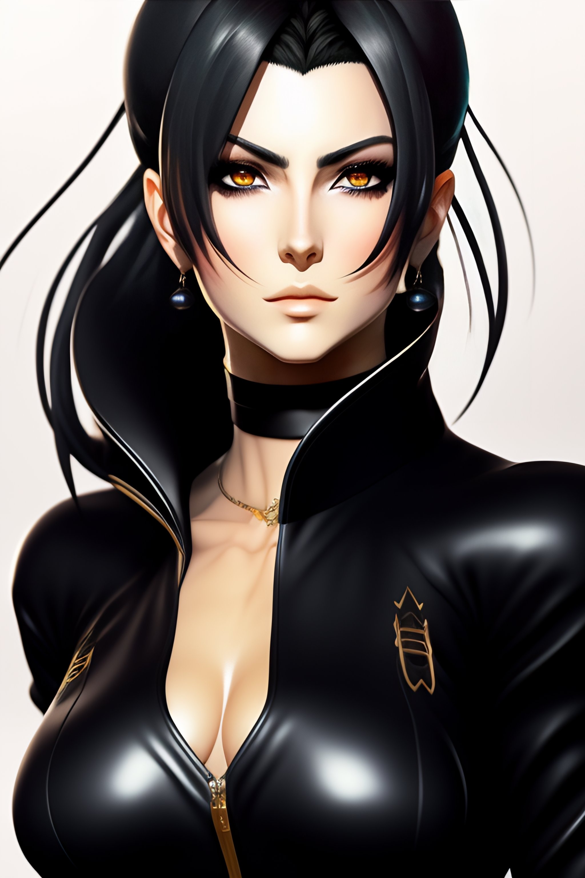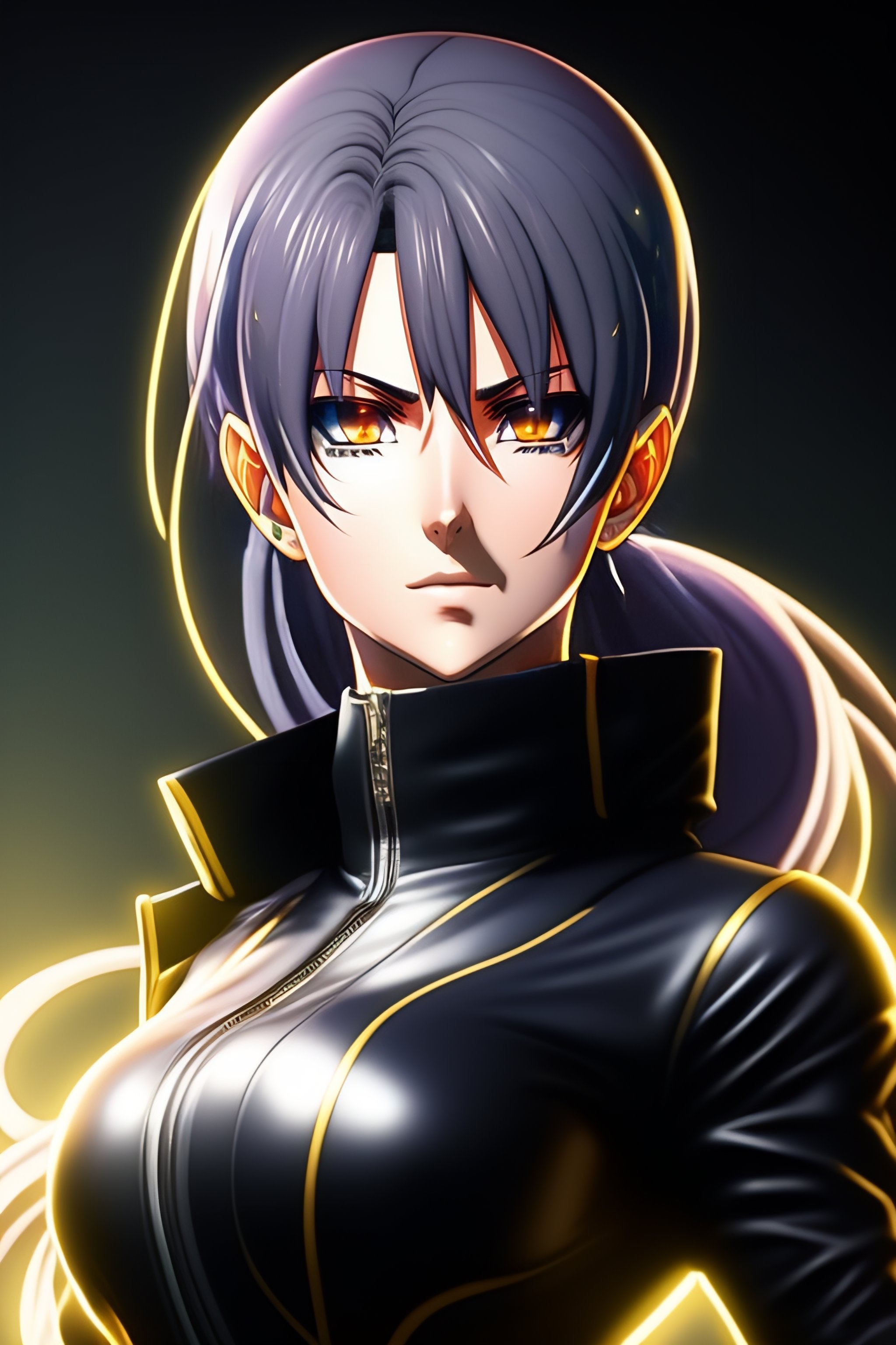 Realistic silva zoldyck from hunter x hunter in skintight black leather outfit, dark aura and stern facial expression