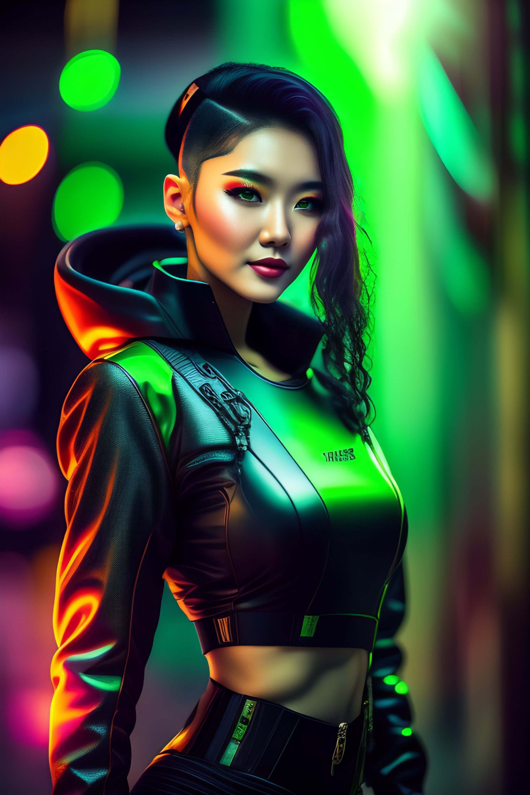 Matrix, cyberpunk, cute, girl, futuristic, green, high resolution, dynamic lighting, rendering, photo-realistic, lightroom gallery, sony a7 mk4, 50mm