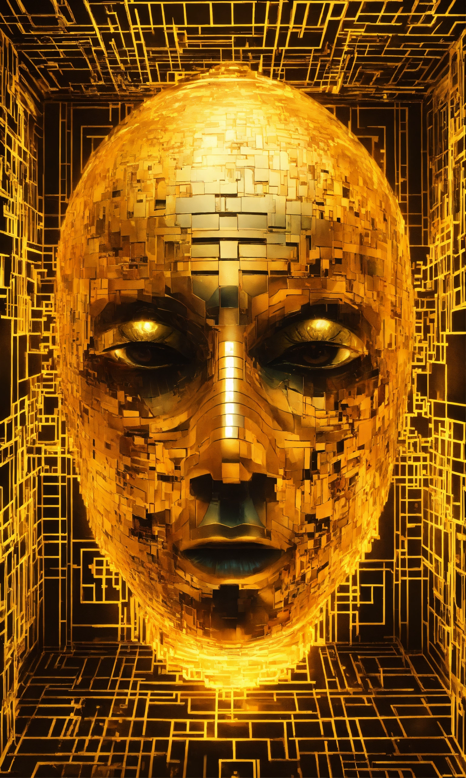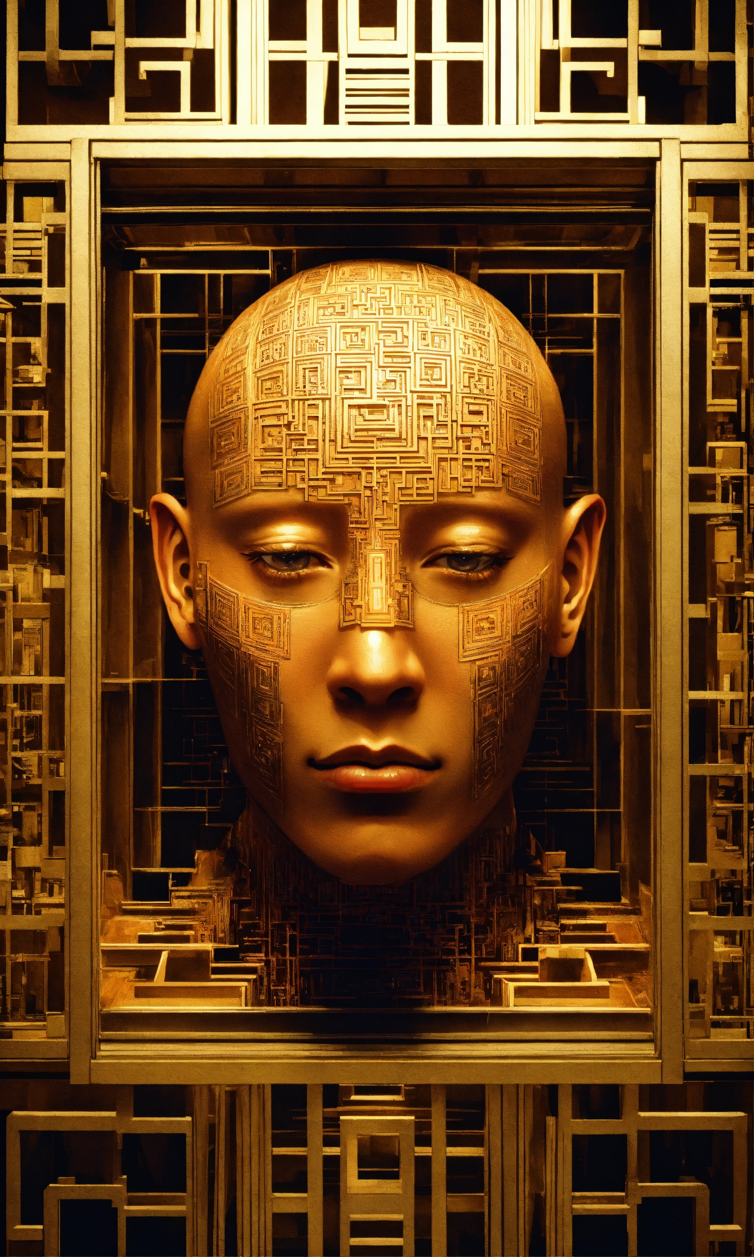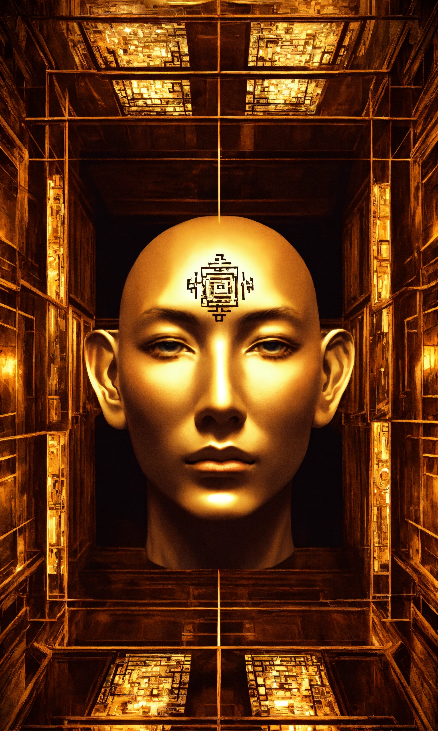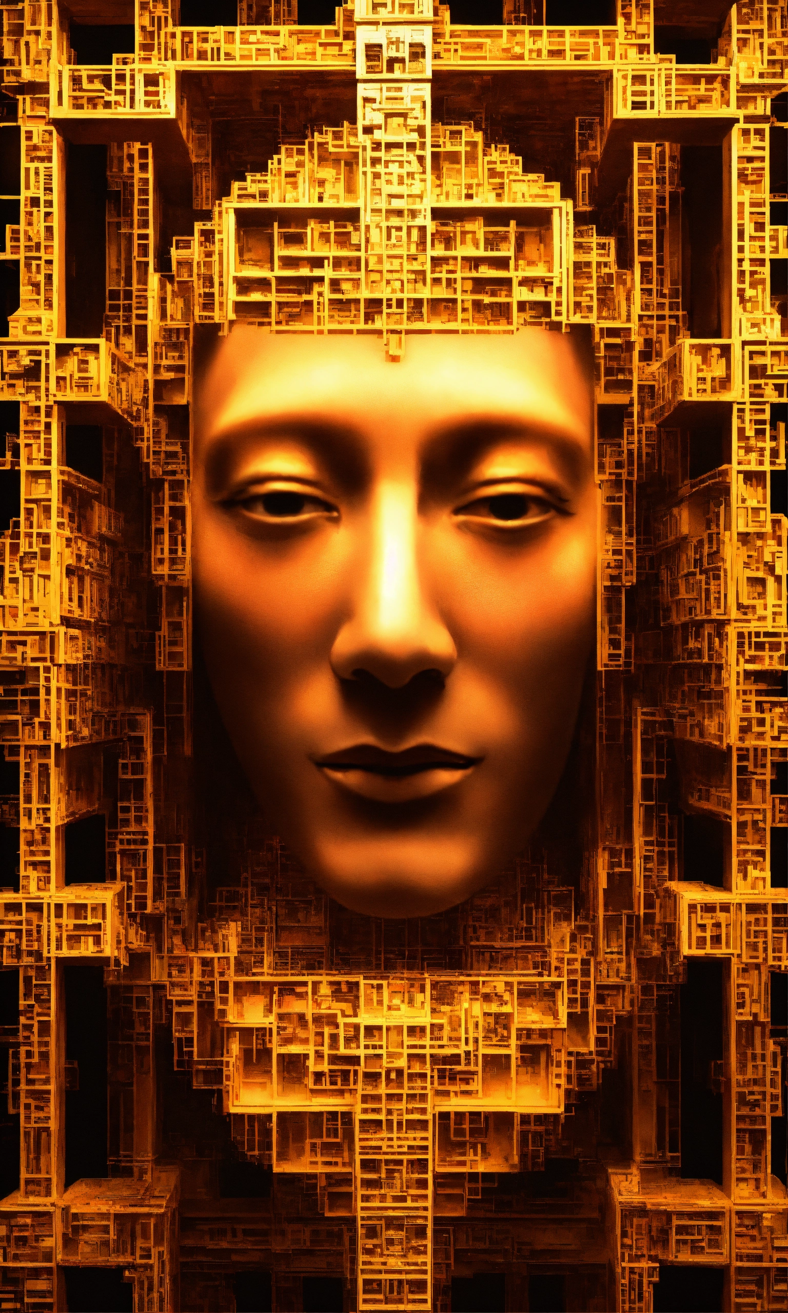 Face taoist christian monk tesseract hypercube fractal monk mirror universal meta consciousness labyrinth monk old face fractal photorealistic symmetry