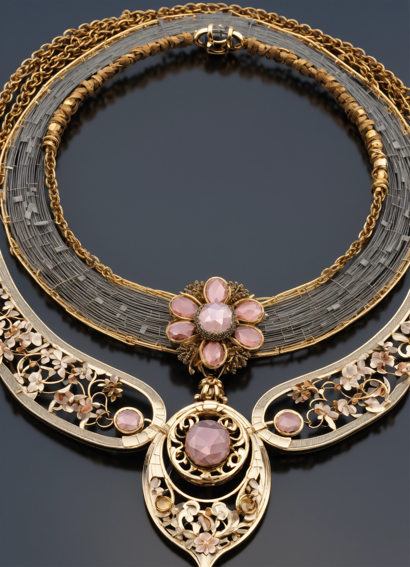 Complex 3d render ultra detailed of a meiji period neofinetia necklace, shibiuchi metal texture, ford hallam style, tsuba, iron, silver, silver material, intricate details, mesh wire, mandelbrot fractal, cable wires, microchip, elegant, hyper realistic, ultra detailed, octane render, volumetric lighting, 8k post-production