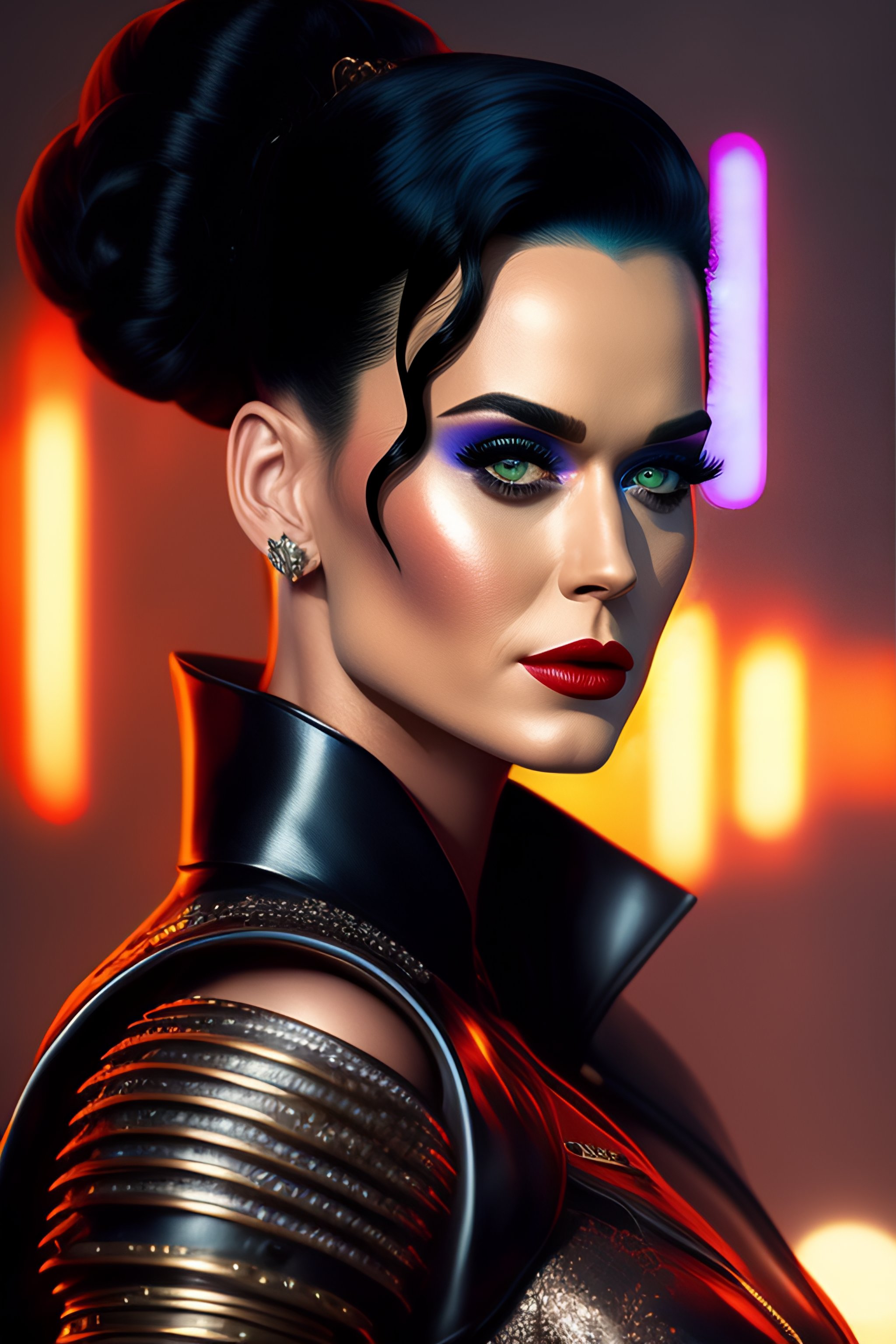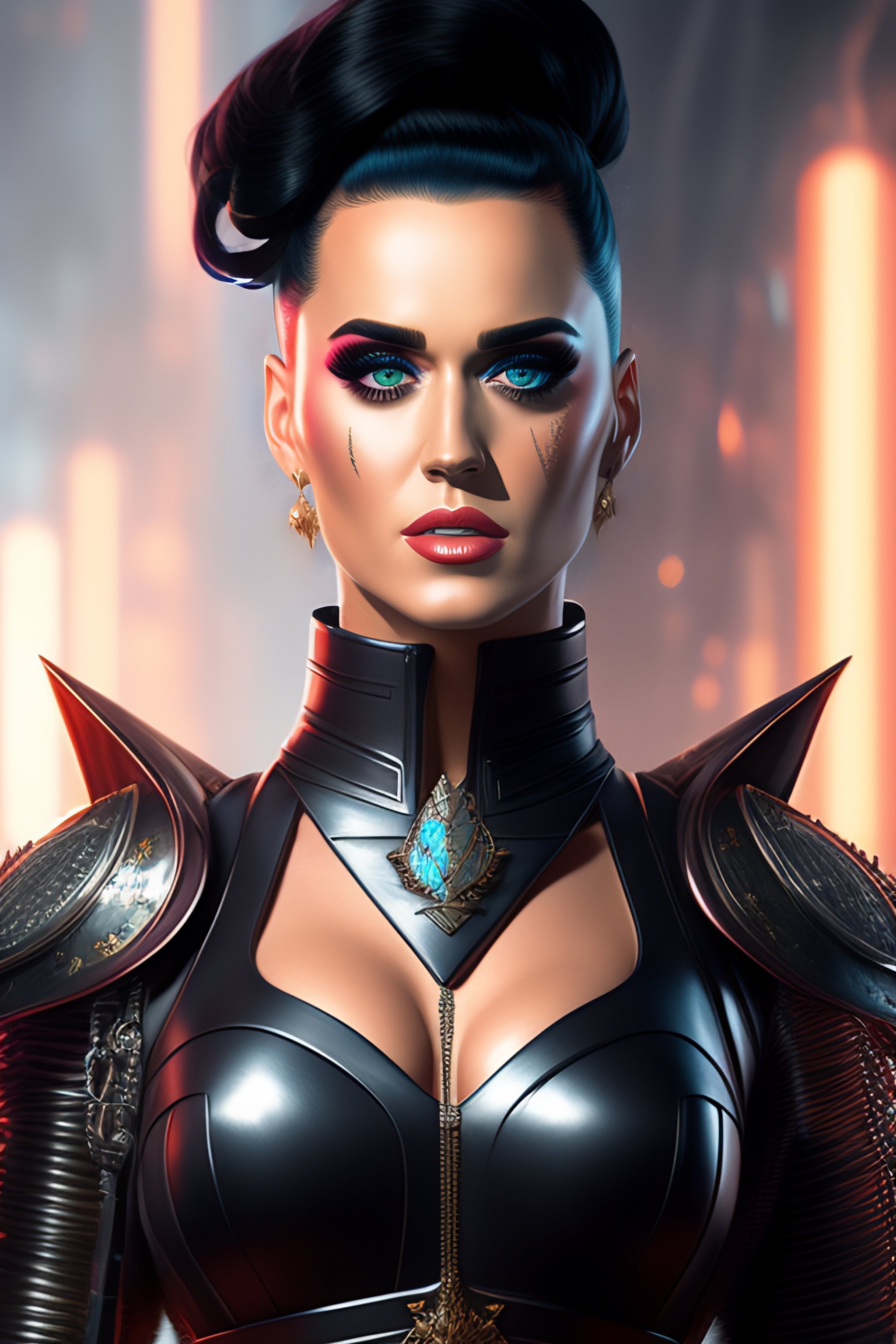A portrait of katy perry as the terminator fantasy character portrait, ultra realistic, cinematic, concept art, wide angle, intricate details, hologram, highly detailed by greg rutkowski, aaron horkey, gaston bussiere, craig mullins, simon bisley, arthur rackham