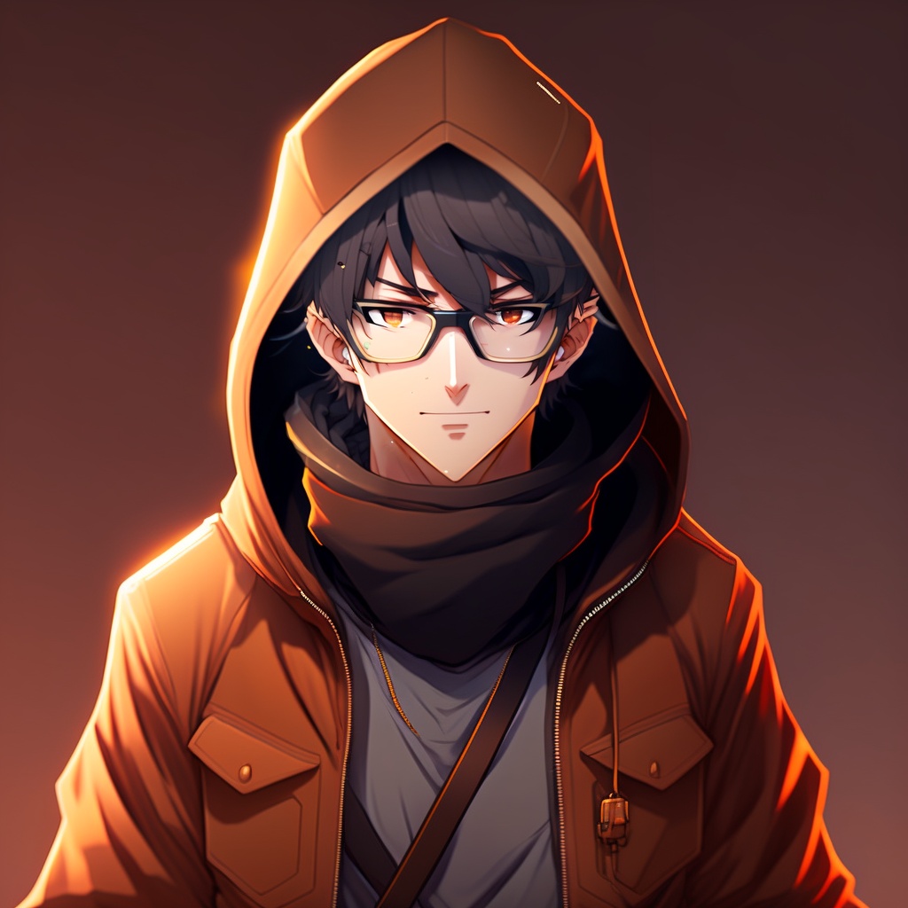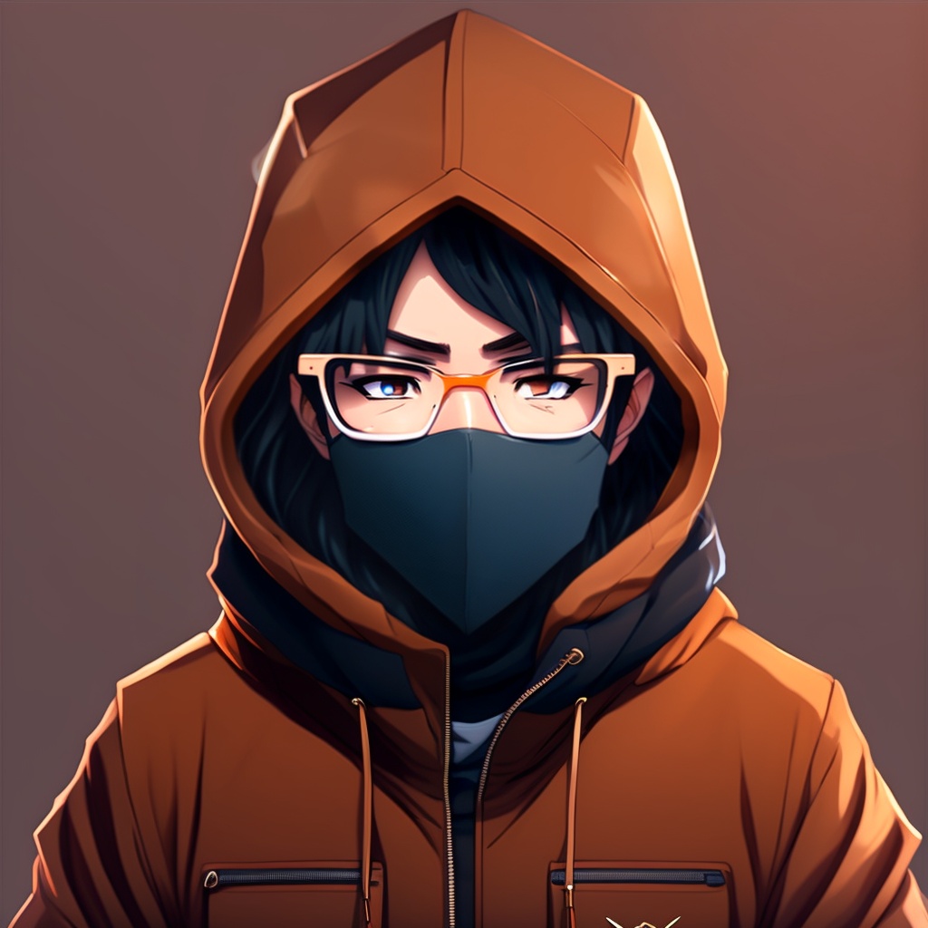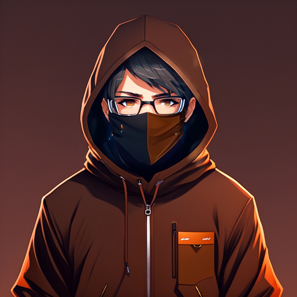 Anime guy in black hoodie, wearing mask, indian, coder, brown face, glasses, light brown skin, hacker, no expression, no emotion, no background, anime style, manga, cartoon, anime