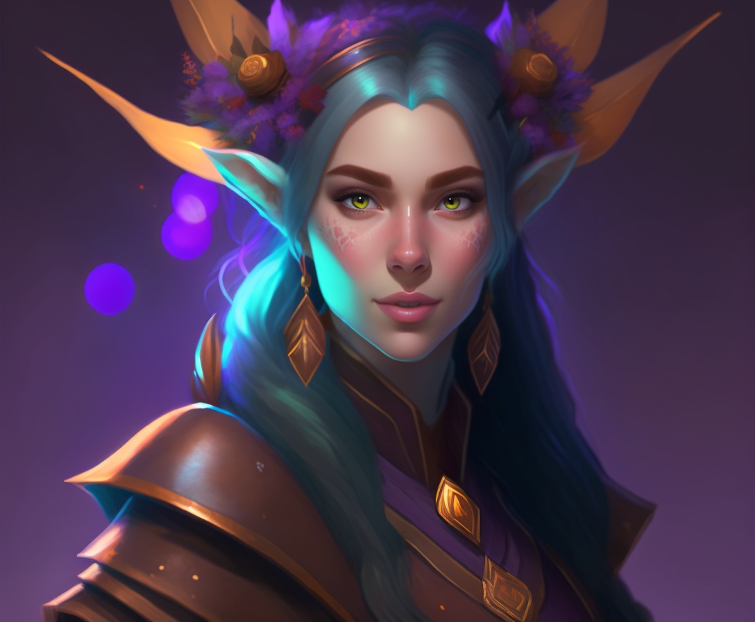 Night elf druid girl, full-length portrait, expressive primary shapes, basic shape composition, character design, stylized concept art