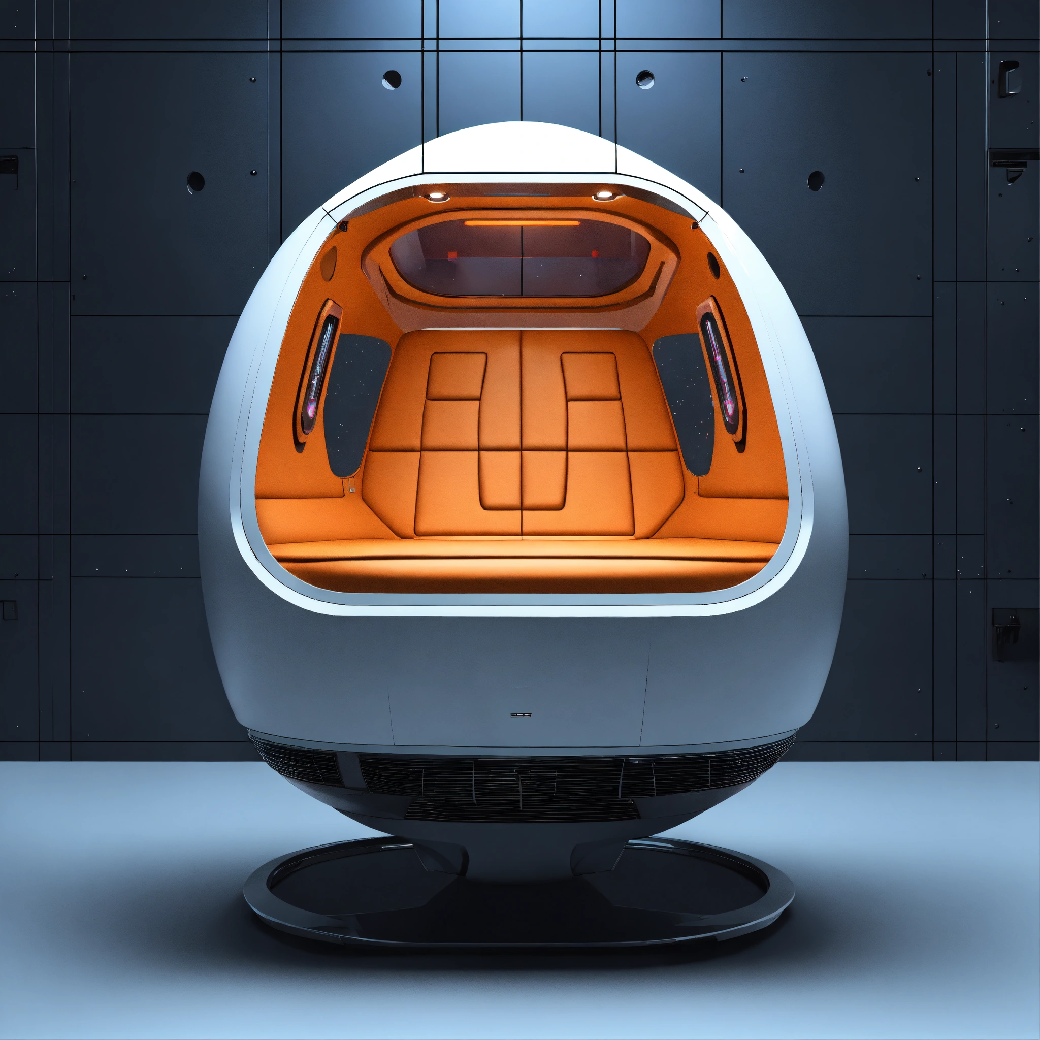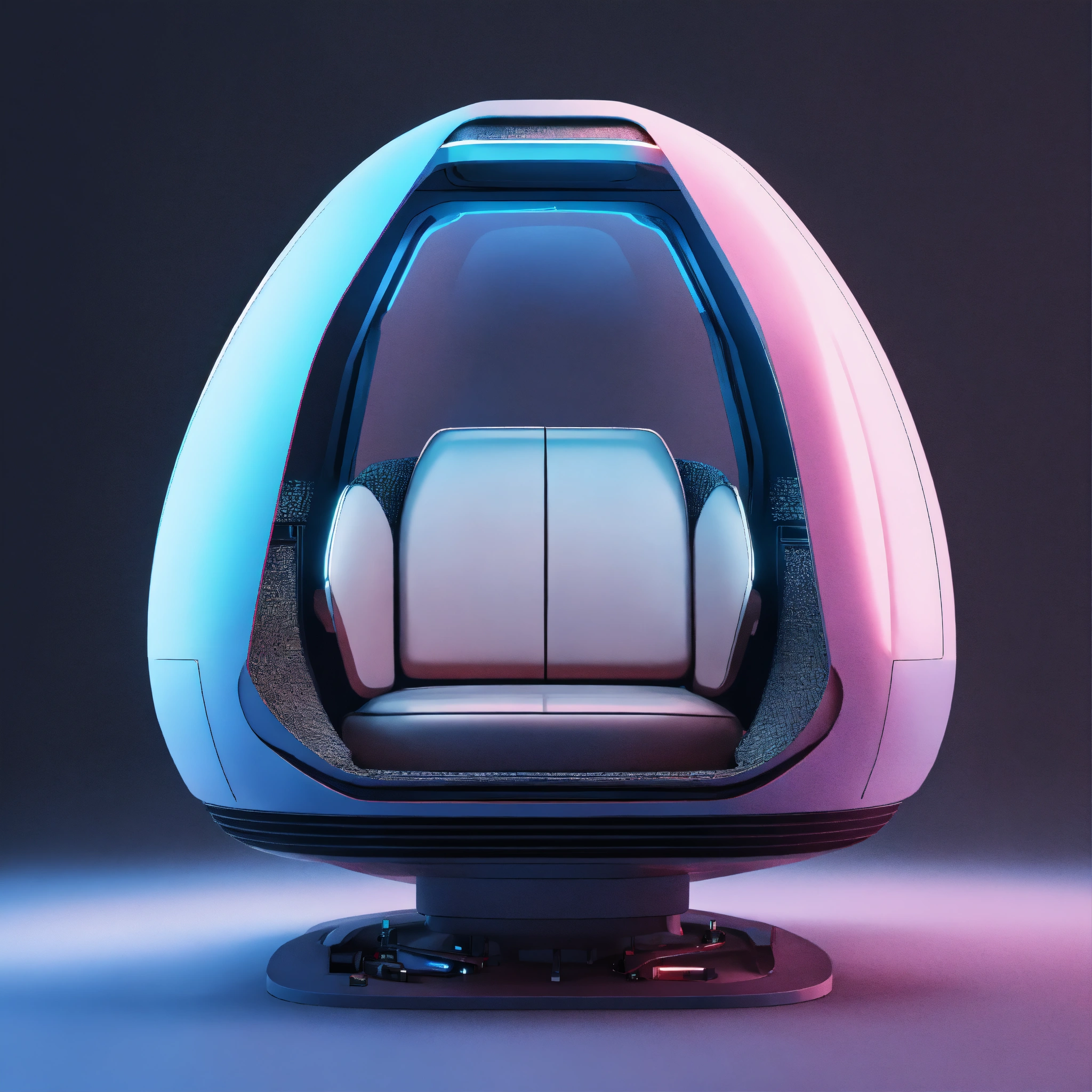 Futuristic sci-fi pod chair, flat design, product-view, extremely detailed, realistic photo, 4k realistic photo.
