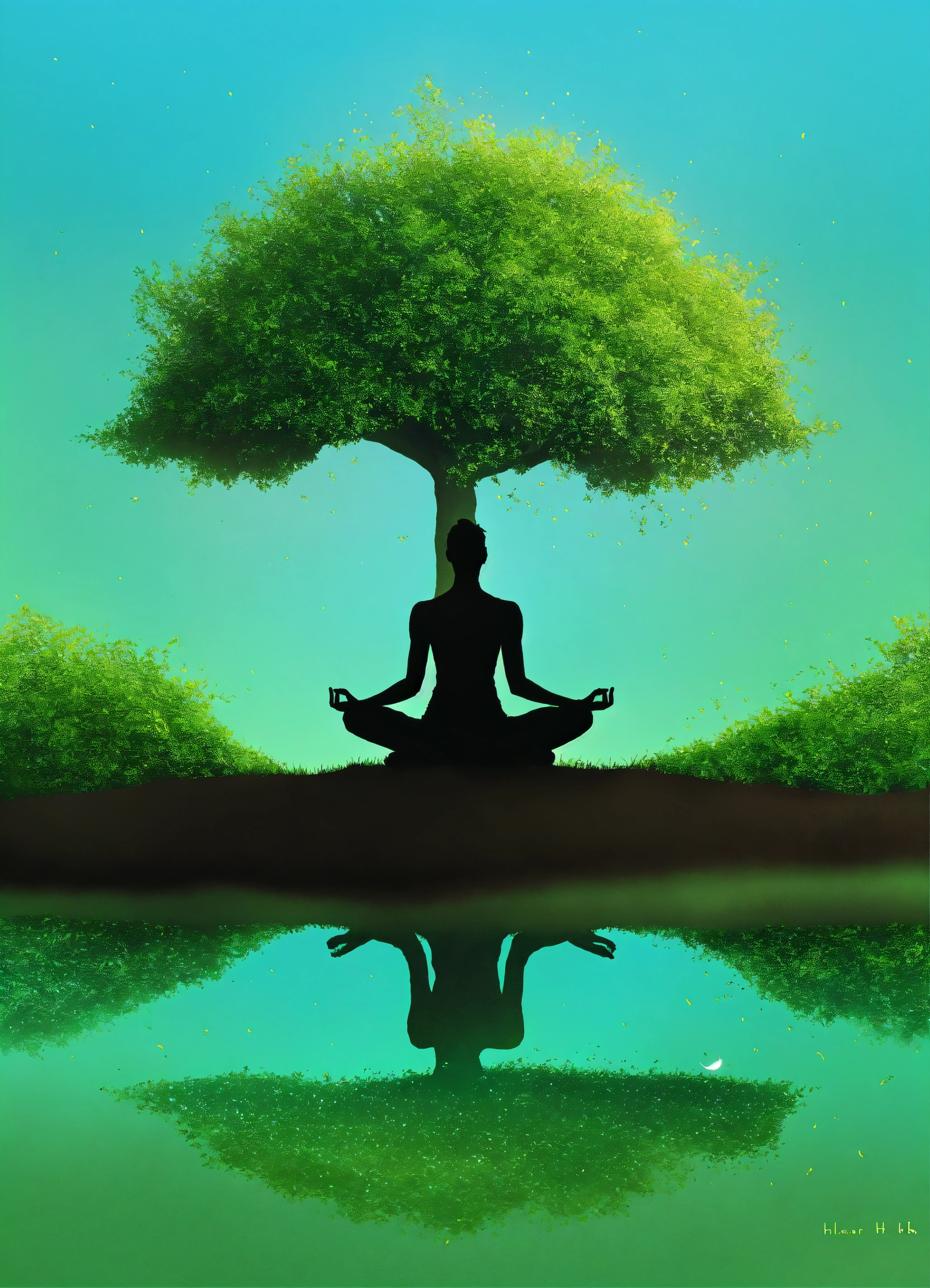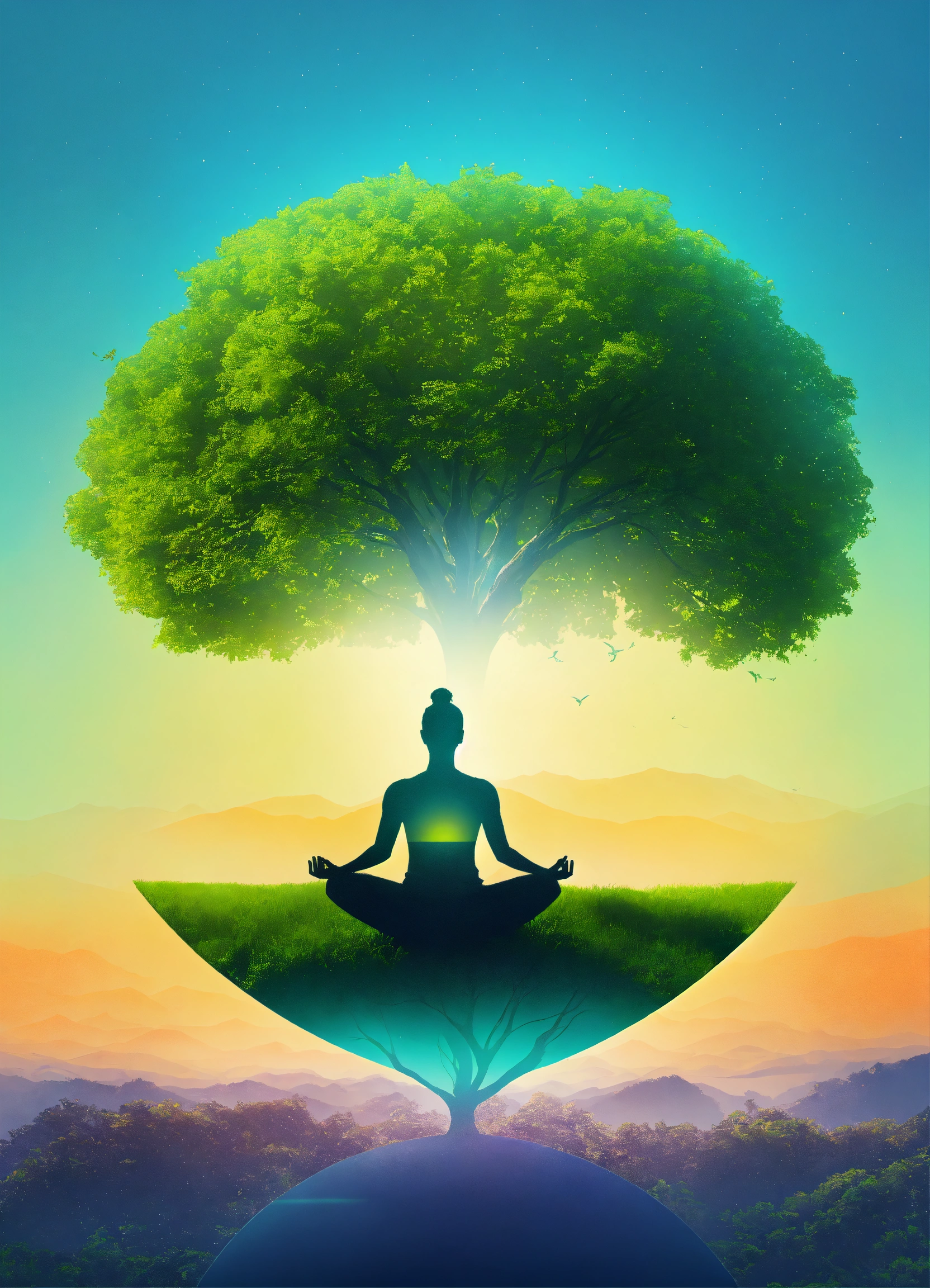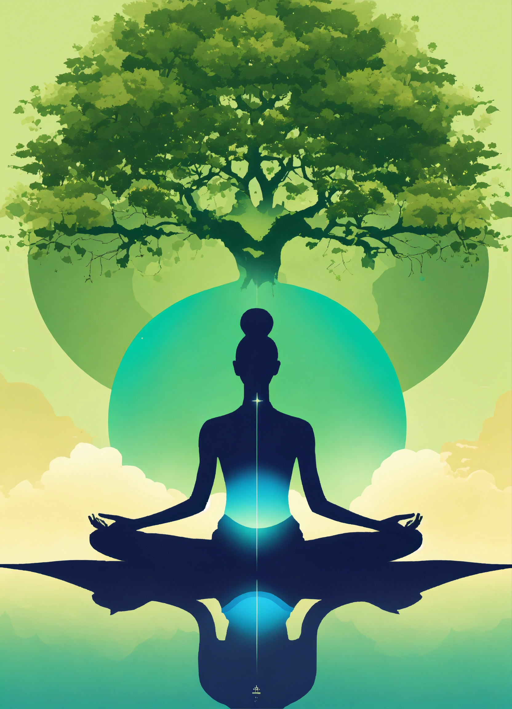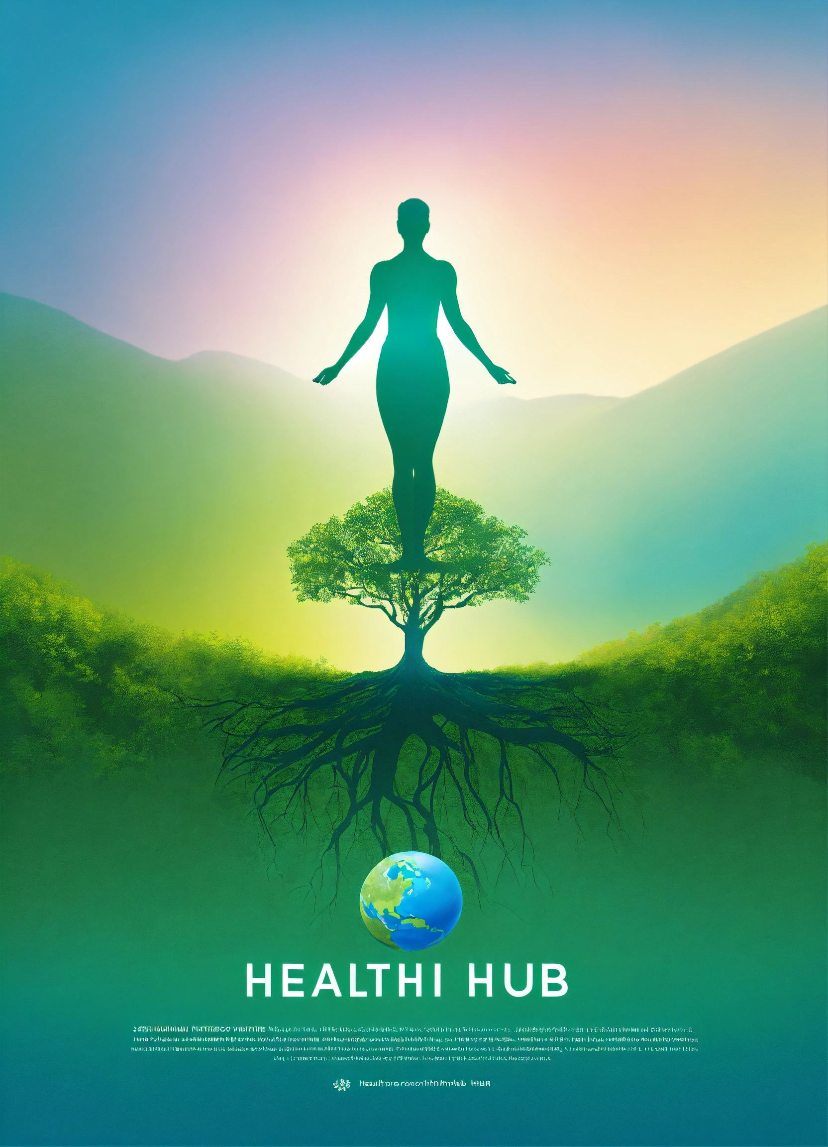 Profile picture description for "healthhorizonhub" concept a harmonious blend of nature and wellness, representing a horizon where health meets vitality. imagery background a gradient background transitioning from a calming sky blue at the top to a vibrant green at the bottom, representing the sky meeting the earth, symbolizing the horizon. foreground a silhouette of a tree with deep roots on one side, representing growth and grounding. on the opposite side, a human figure in a yoga pose, representing wellness and balance. center the channel name "healthhorizonhub" should be centrally placed in bold, modern, and clean typography. the text color should be white to stand out against the gradient background. style theme nature and wellness. colors sky blue, vibrant green, and white.