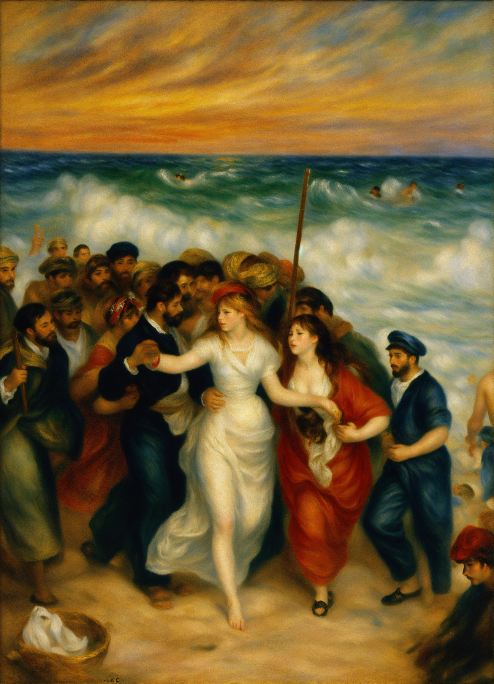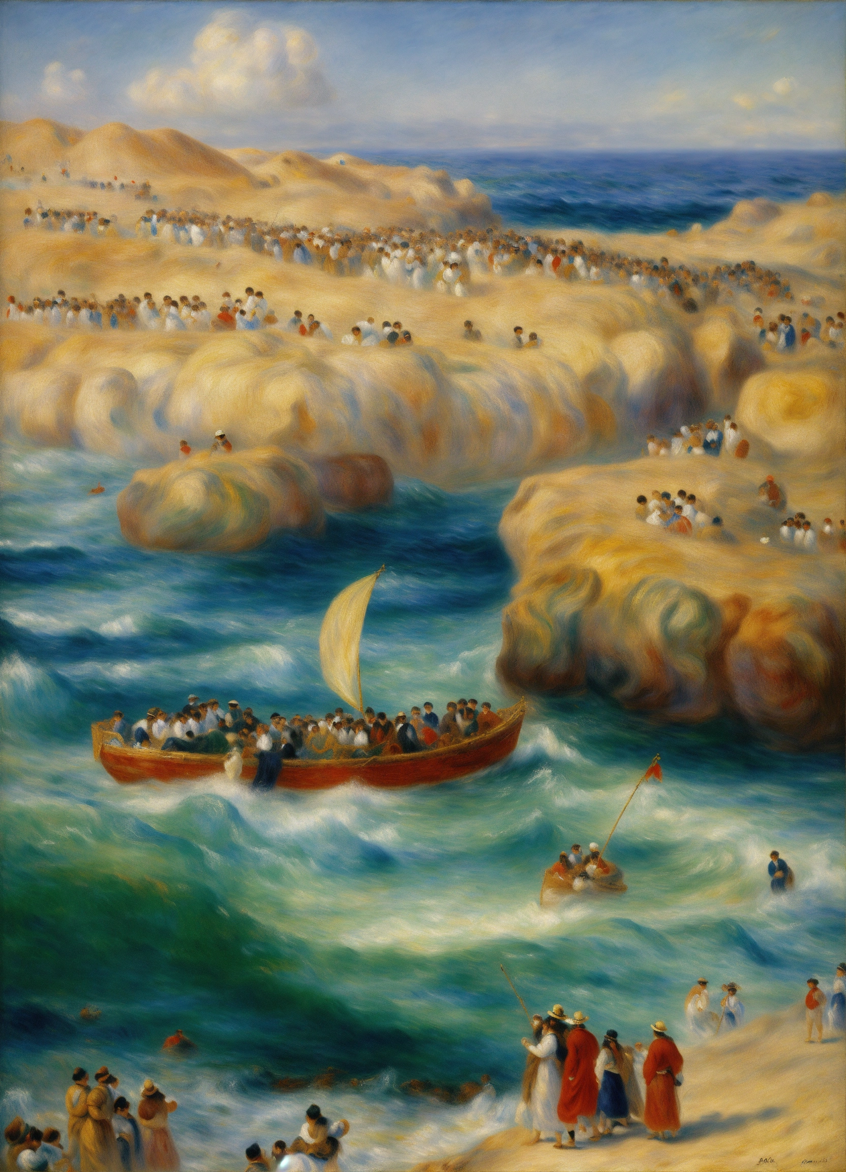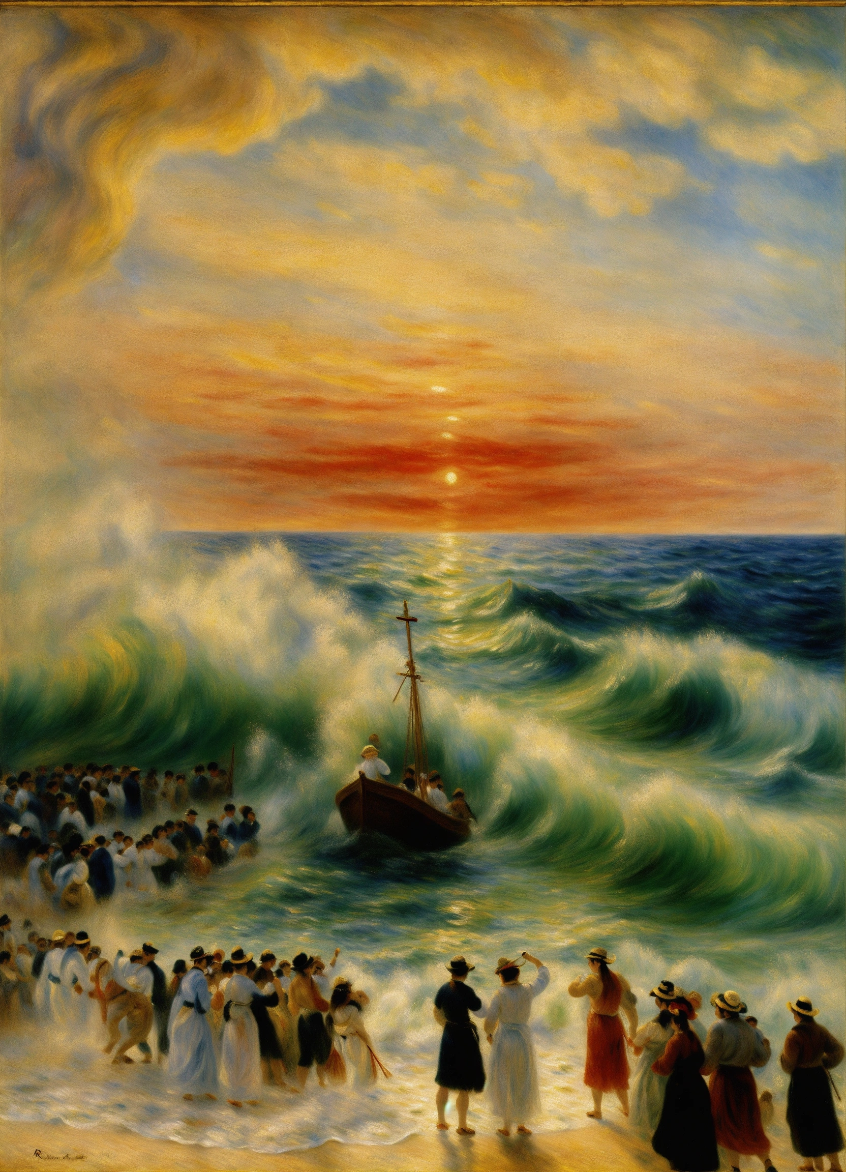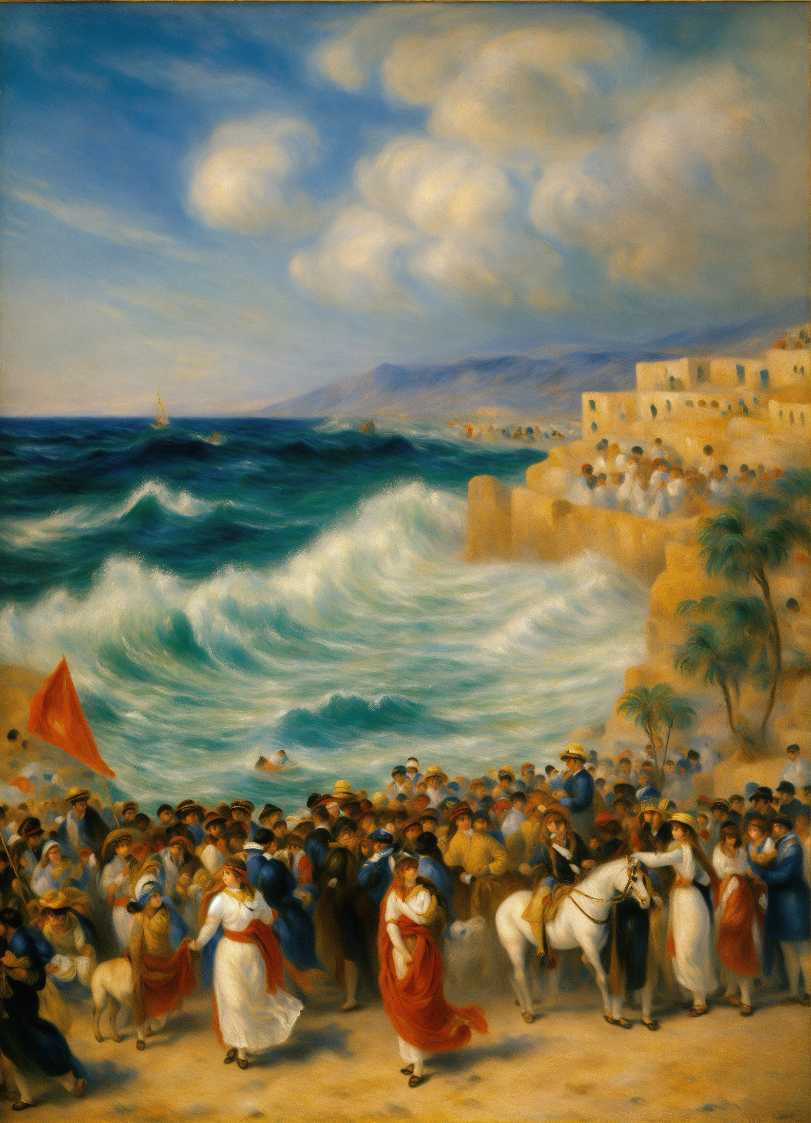 Renoir’s painting mose opens the red sea and the people of israel crosses the sea