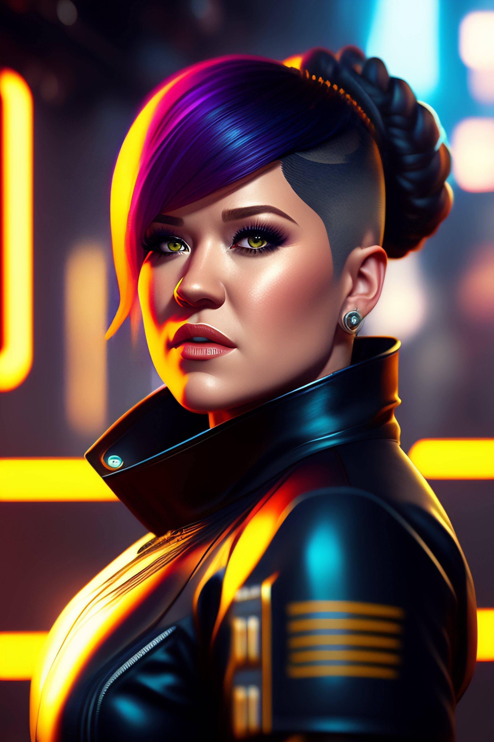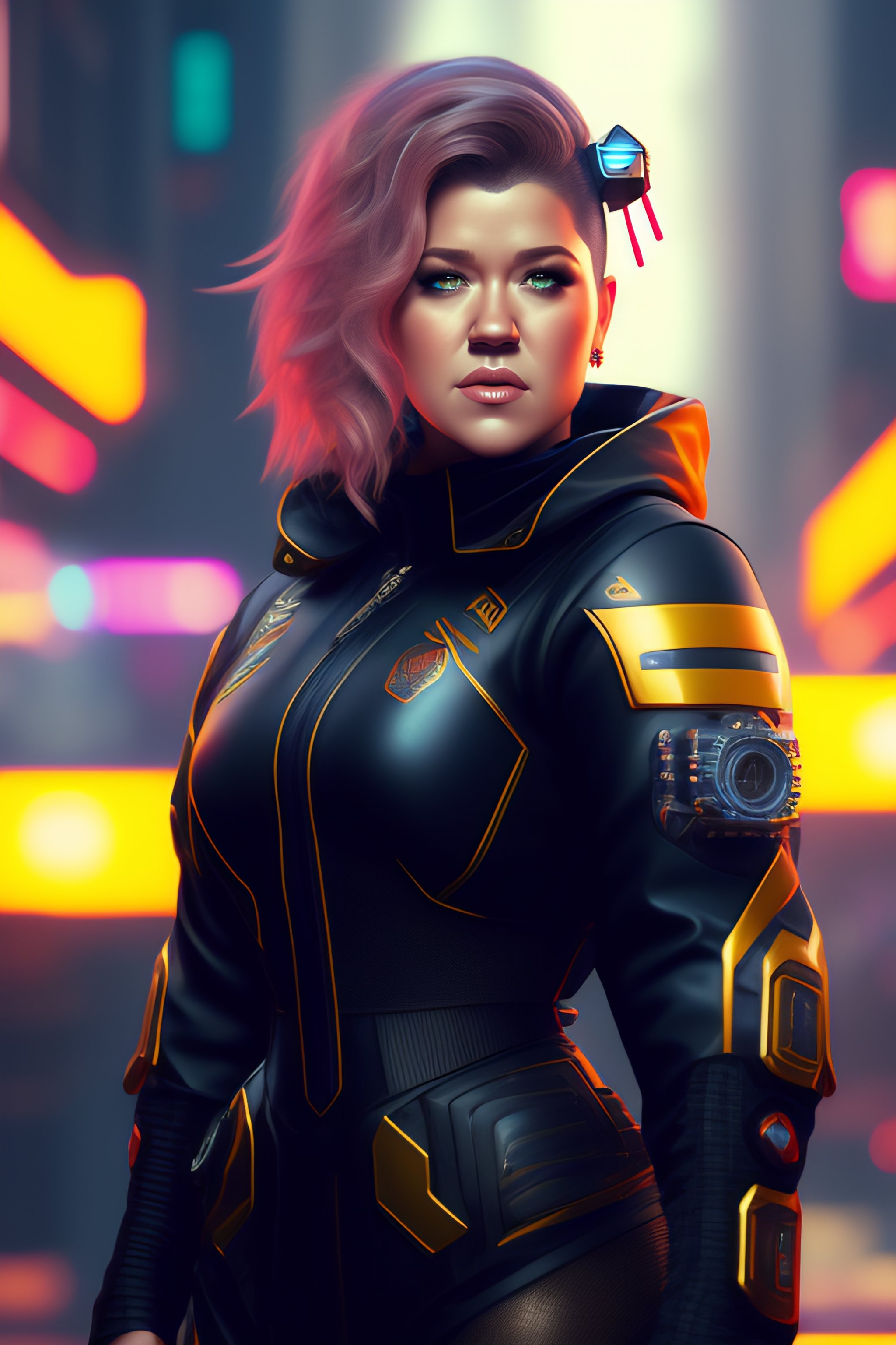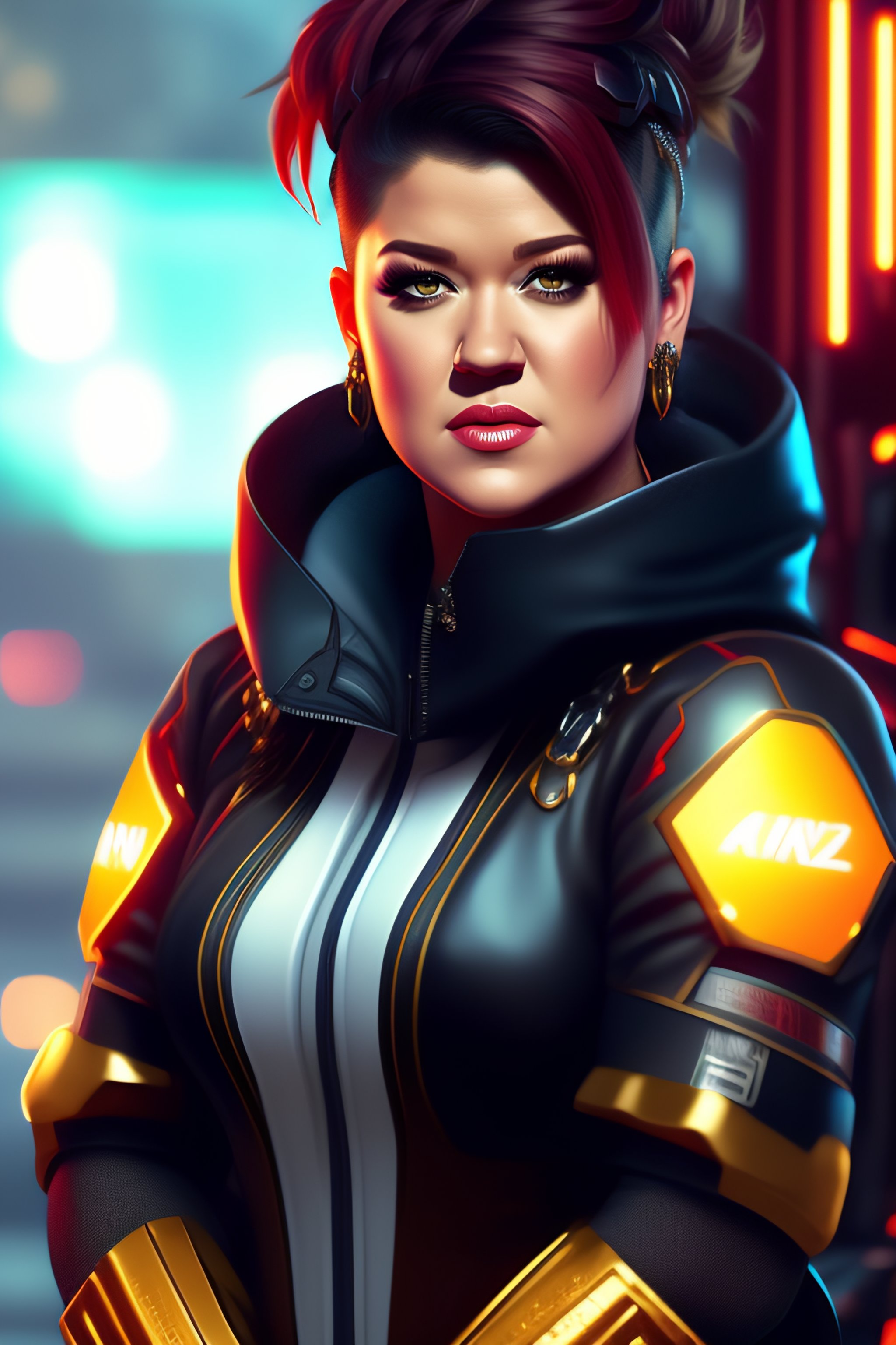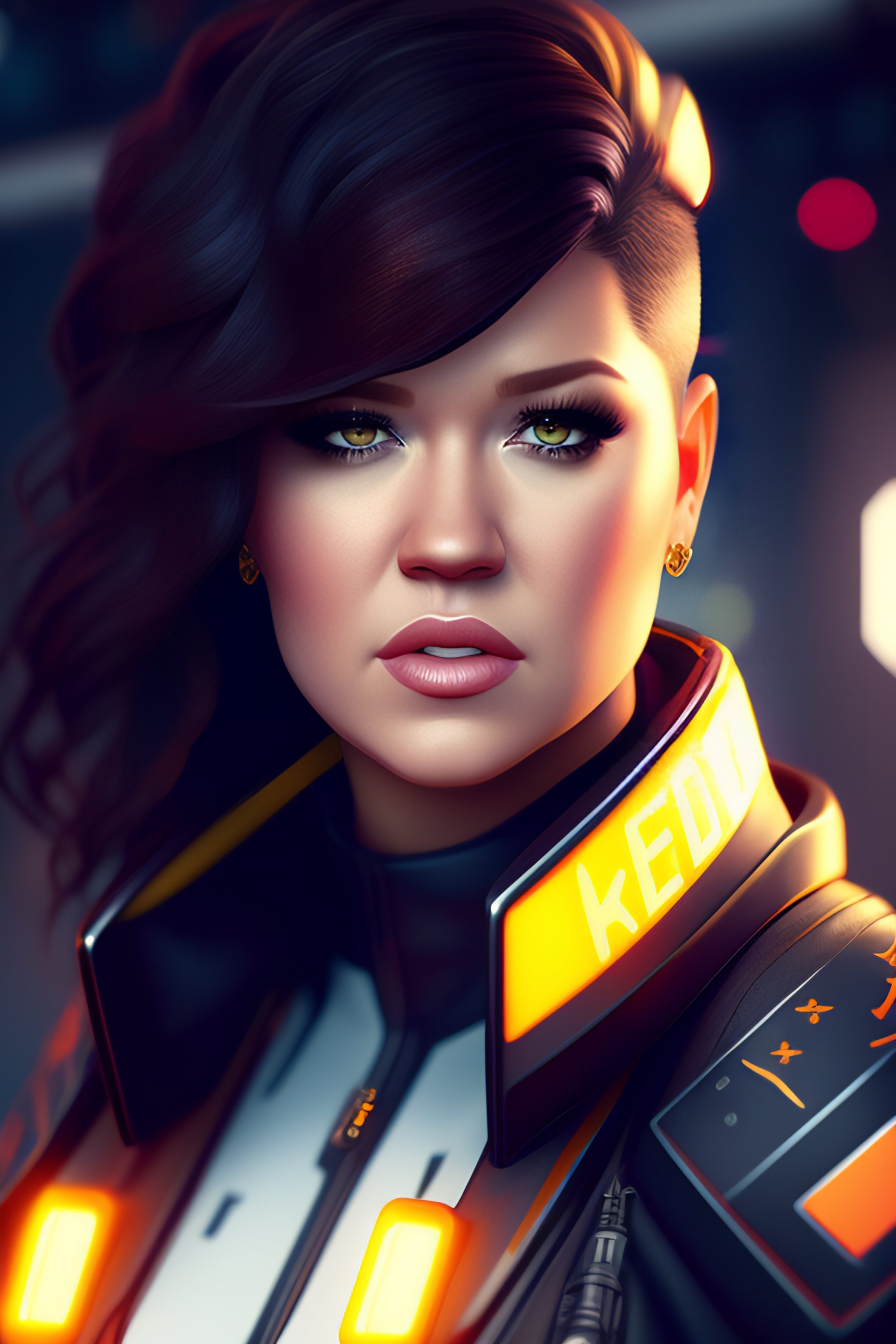 Kelly clarkson in mech punk clothes with short hair girl, battle status, hyper detailed, digital art, cyberpunk style, cybercinematic lighting, studio quality, smooth render, unreal engine 5 rendered, octane rendered, art style by klimt and nixeu and ian sprigger and wlop and krenz cushart