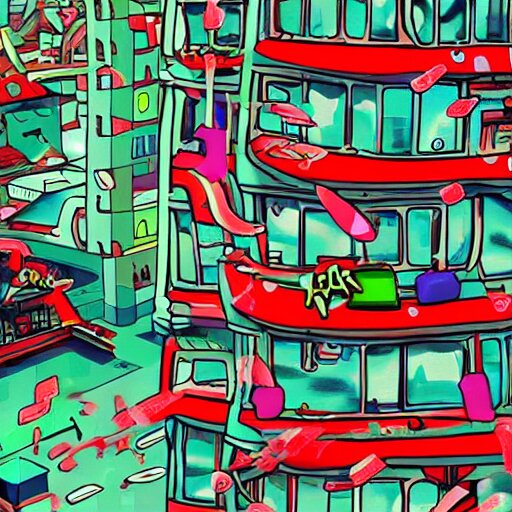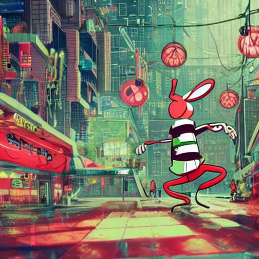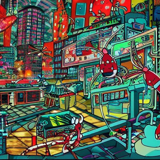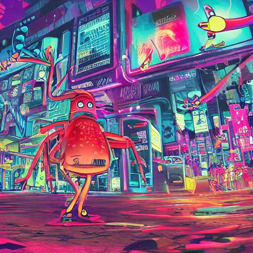 Mr krabs tripping on ketamine in a cyberpunk like city
