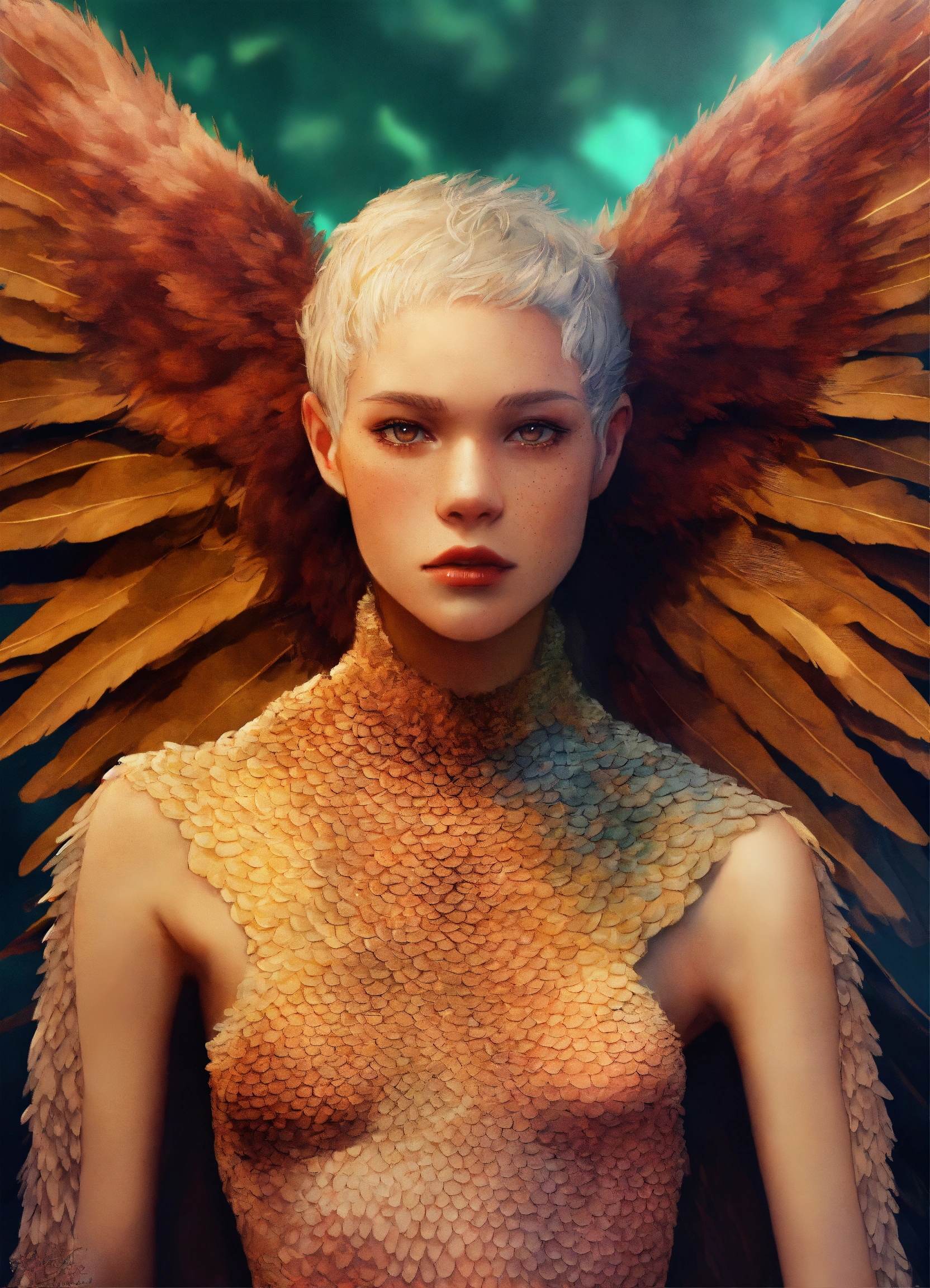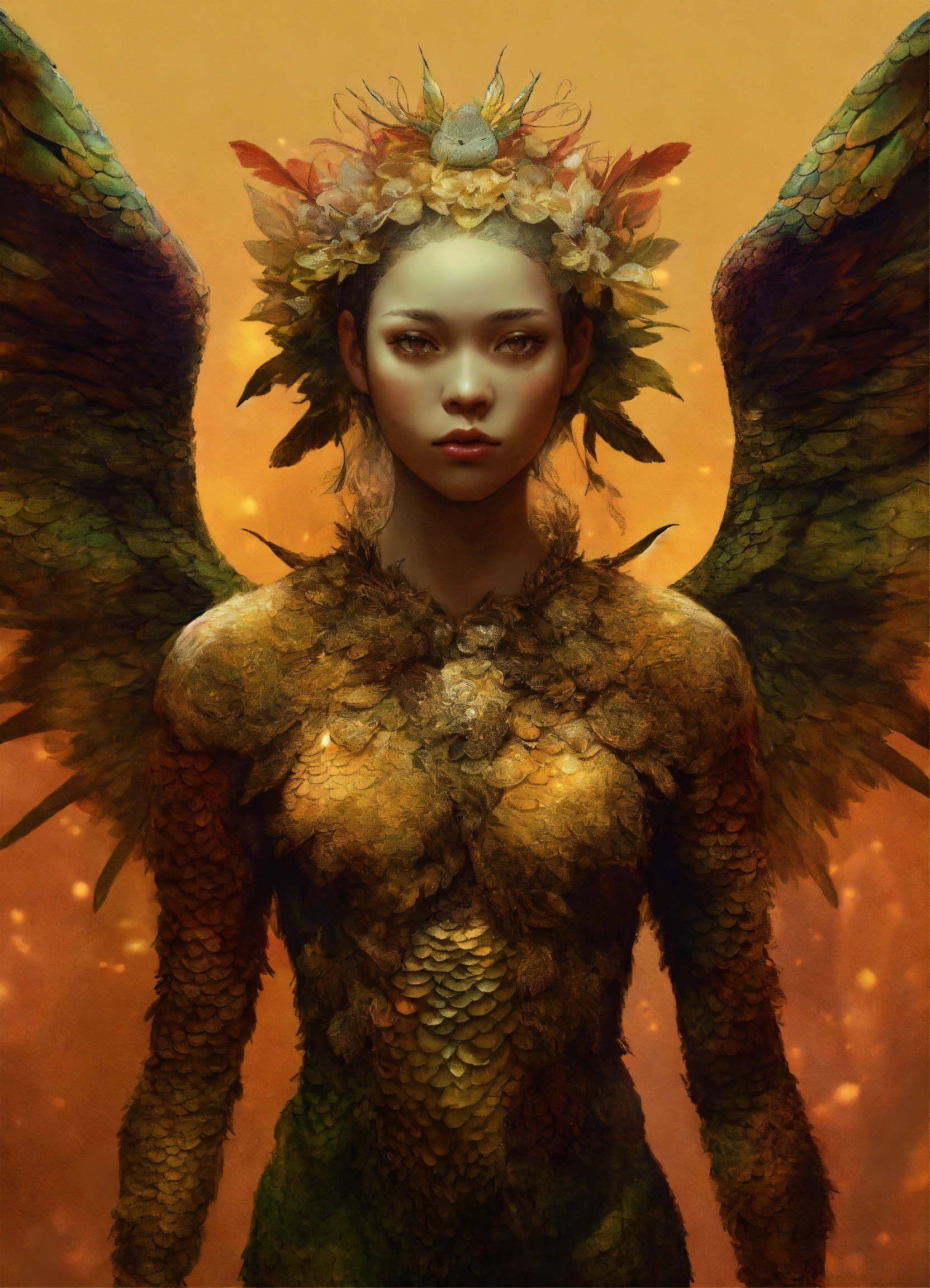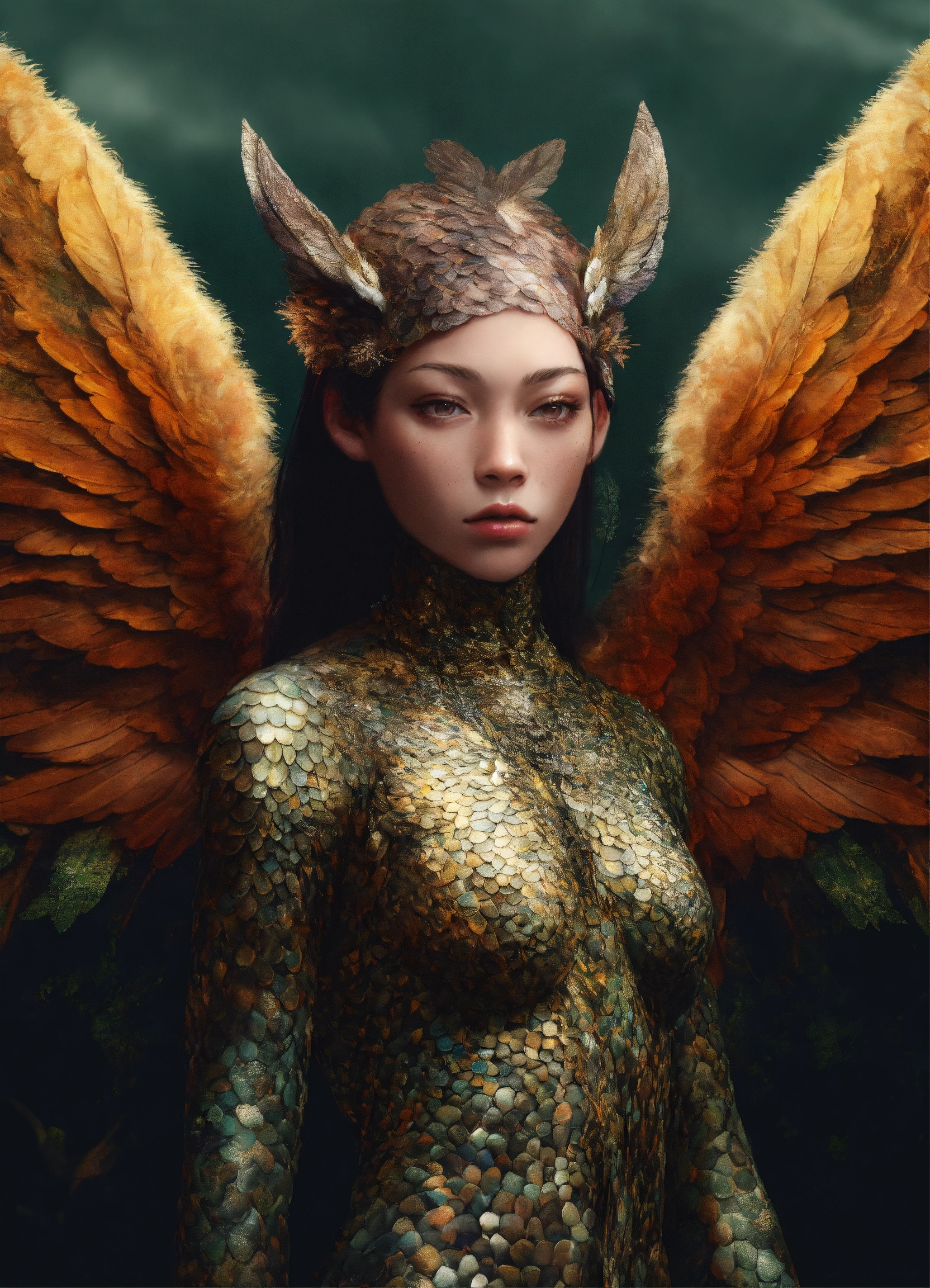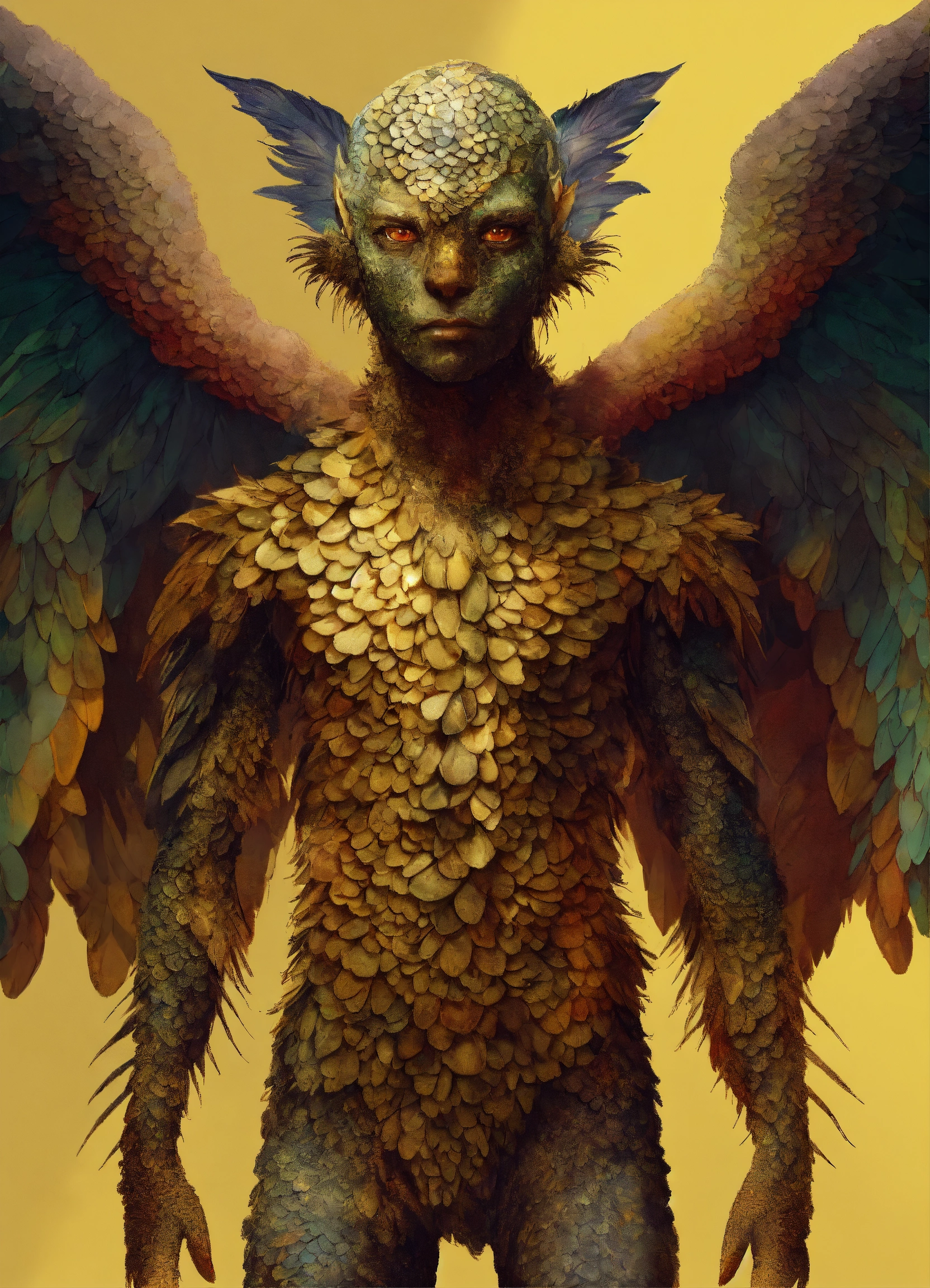 An incredibly ugly appearence with a human-like face a body covered in scales or fur, and wings, digital drawing, art