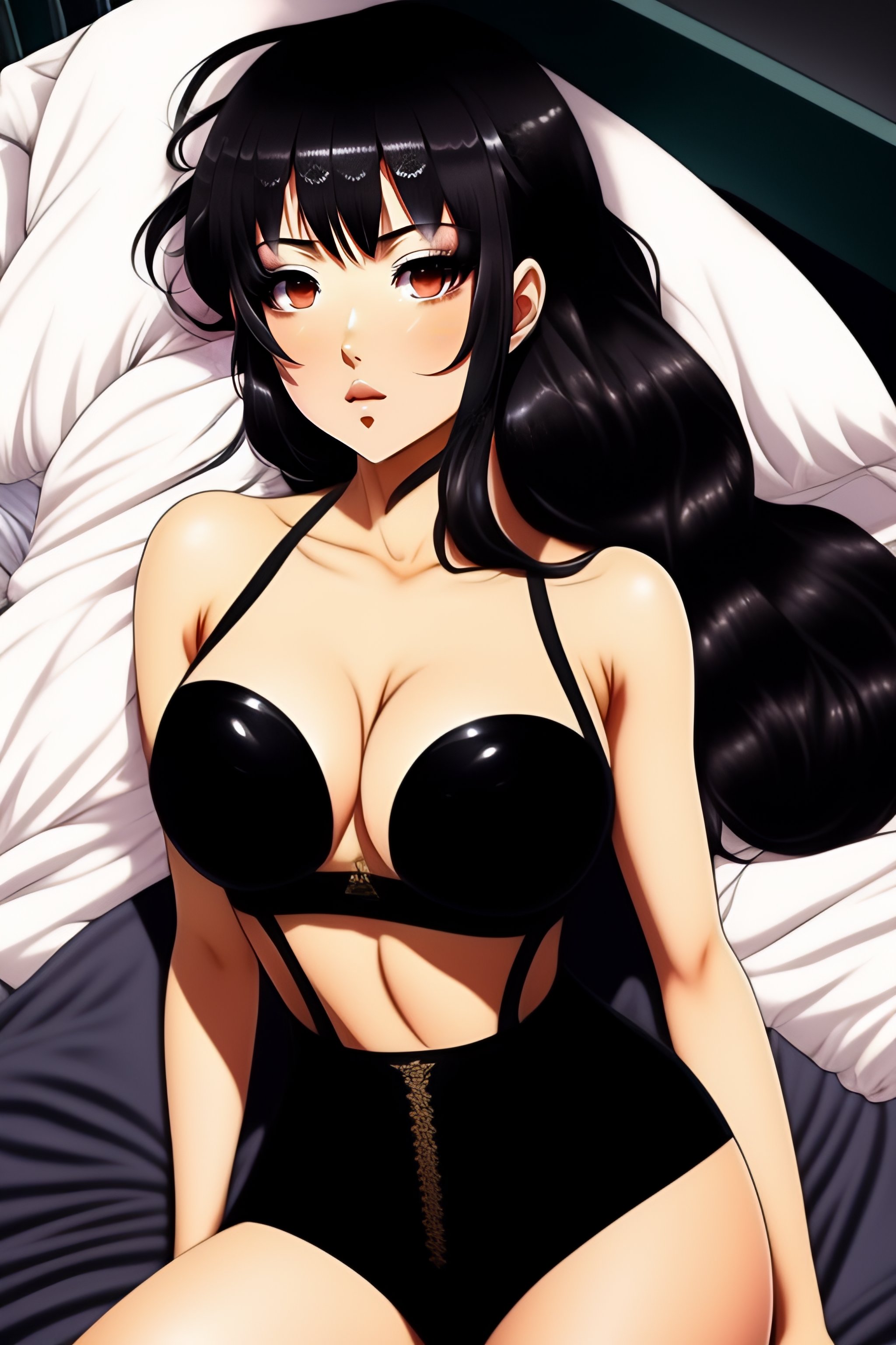 Hinata hyuga laying in bed wearing a black lace bodysuit