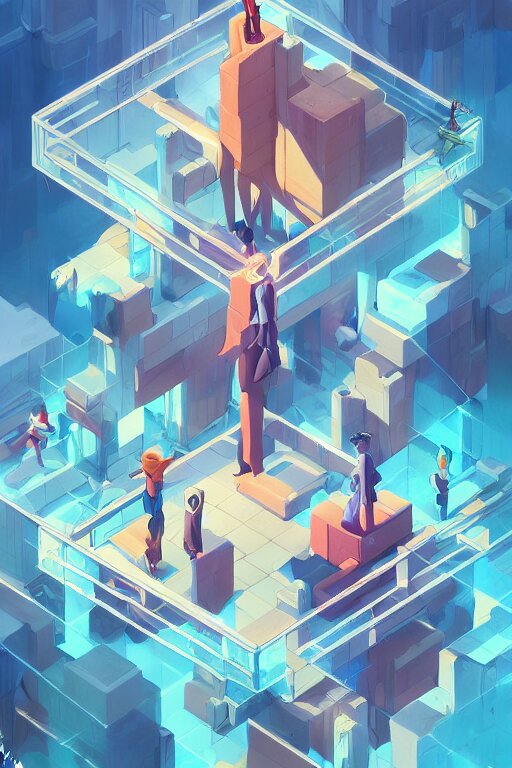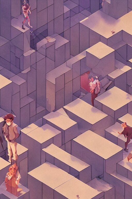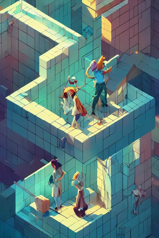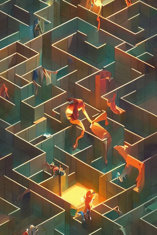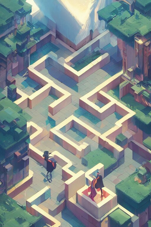 Isometric maze, by jesper ejsing, rhads, makoto shinkai and lois van baarle, ilya kuvshinov, rossdraws global illumination