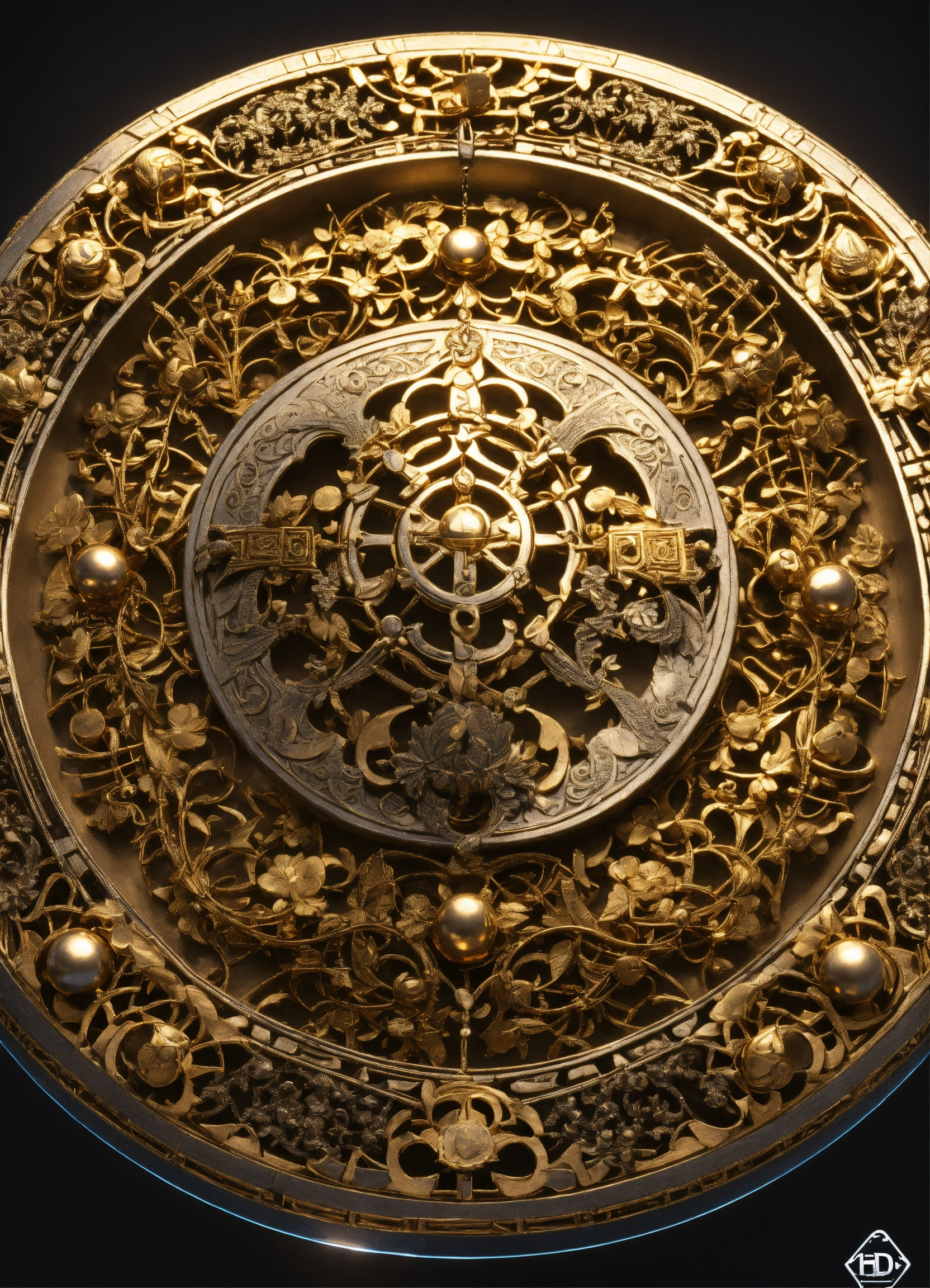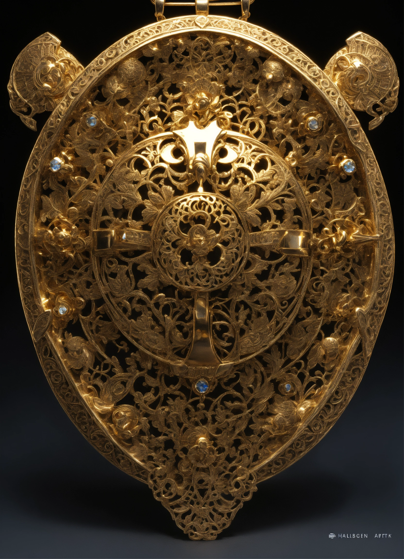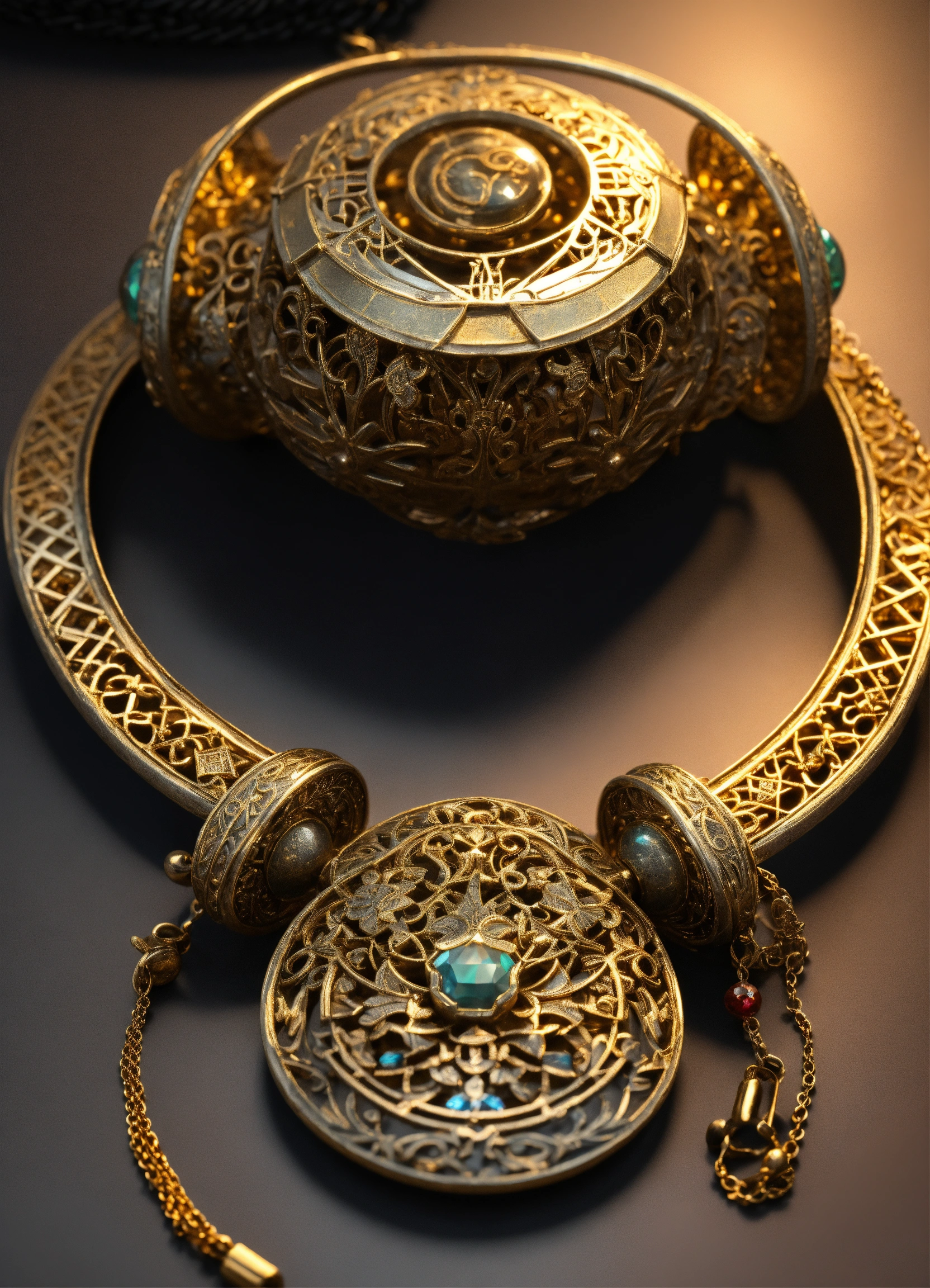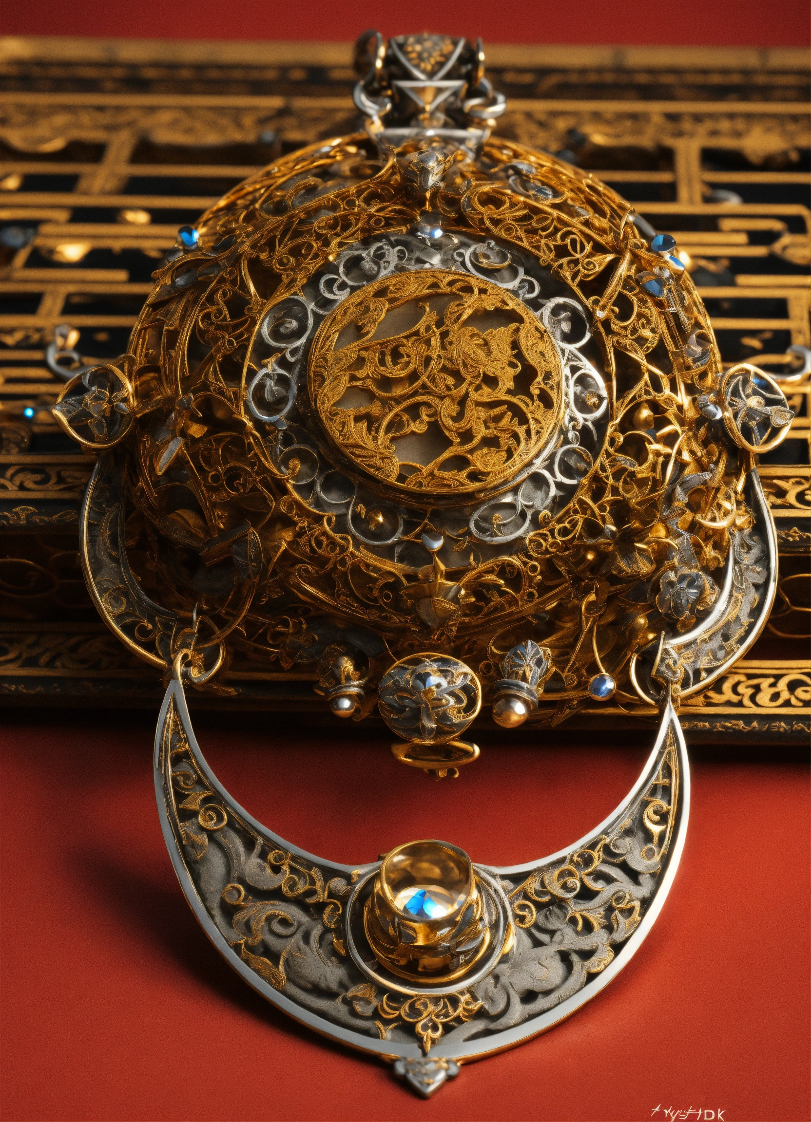 Edo period necklace, ford hallam style, shibuichi, tsuba, iron, silver, silver material, highly detailed, artstation, concept art, sharp focus intricate lines and hard edges, cybernetic jewelry, futuristic jewelry, symmetry, hyper detailed, intricate, ornate, elegant, dramatic lighting, hypermaximalist, golden ratio, micro details, 3d sculpture, ray tracing, hd --chaos 75 --uplight