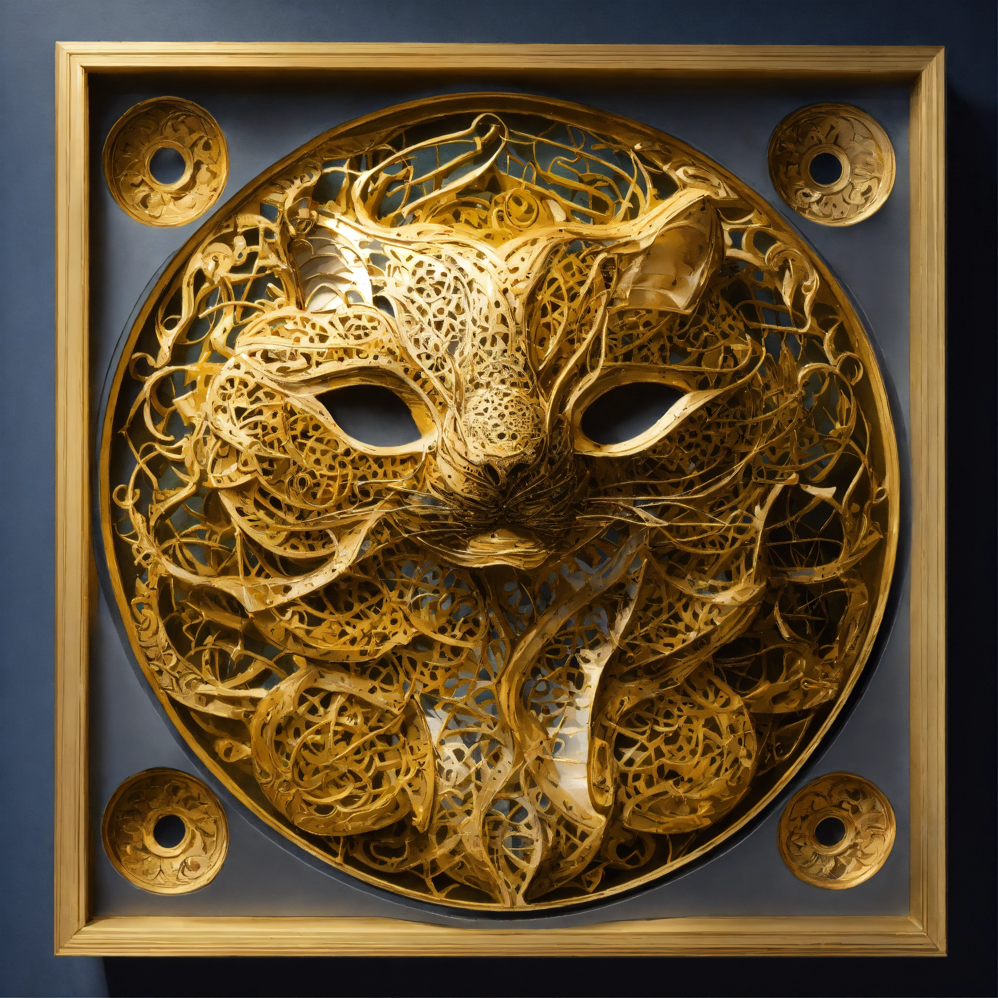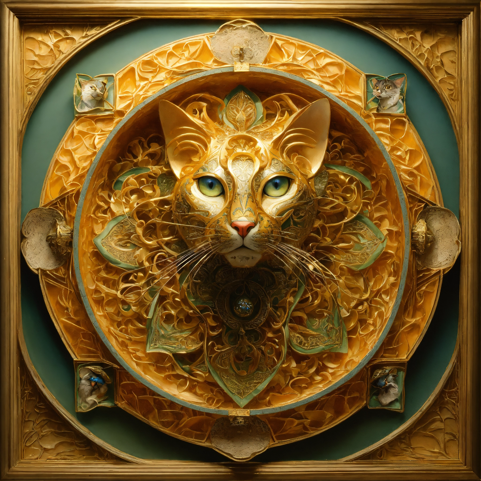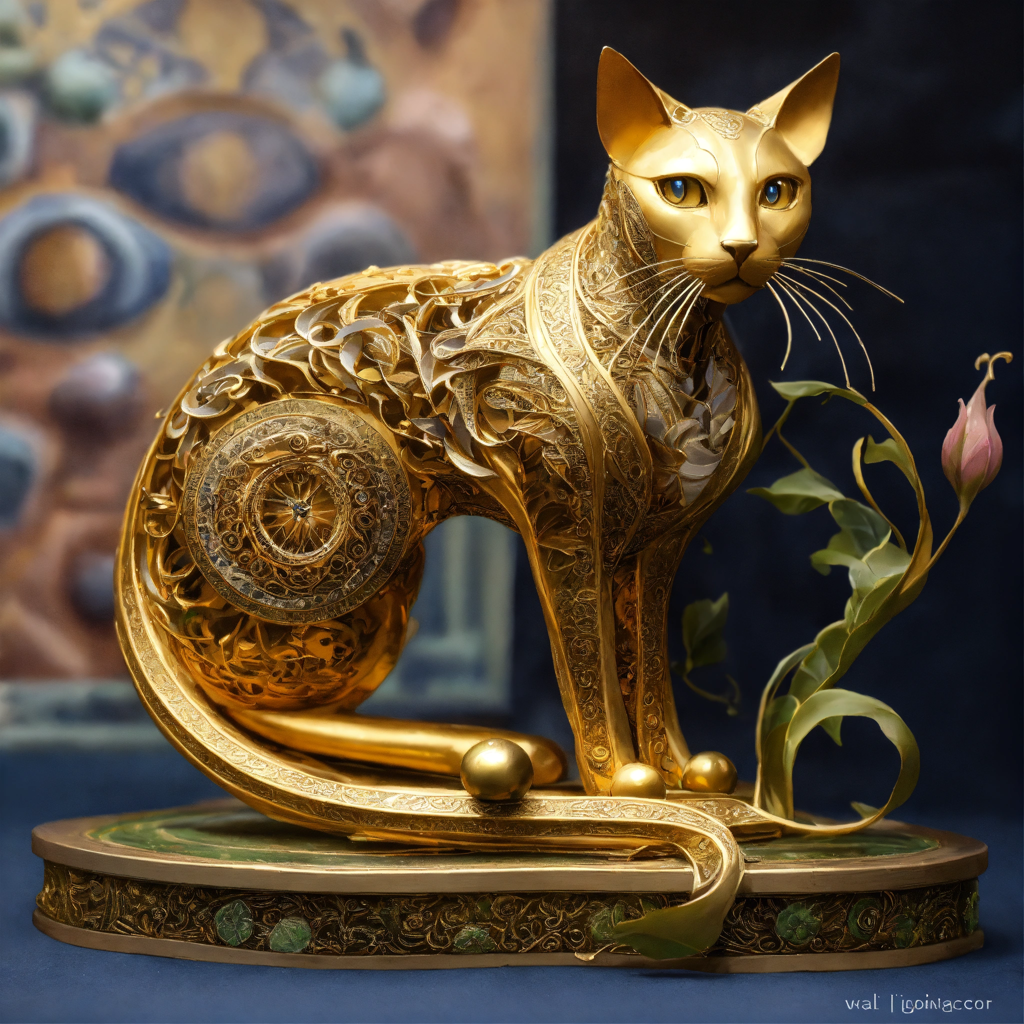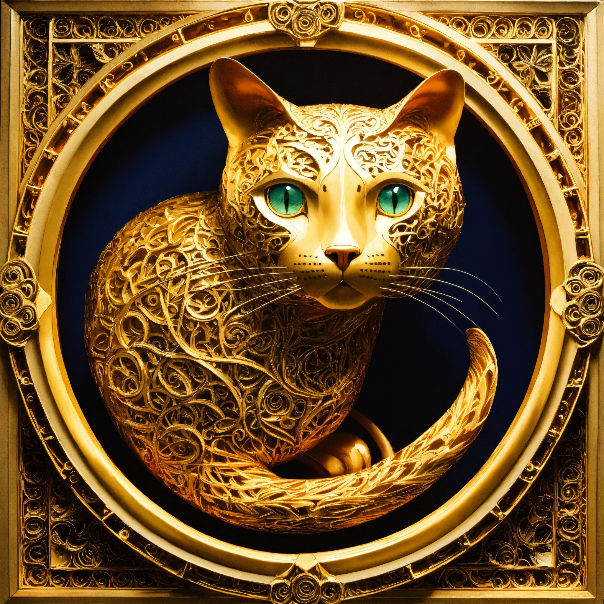 Carl ingham sculpture of a bio cat of life, an ultrafine detailed painting, inspired by vladimir kush, trending on polycount, ecological art, intricate golden filigree, highly detailed symmetry, layered paper art