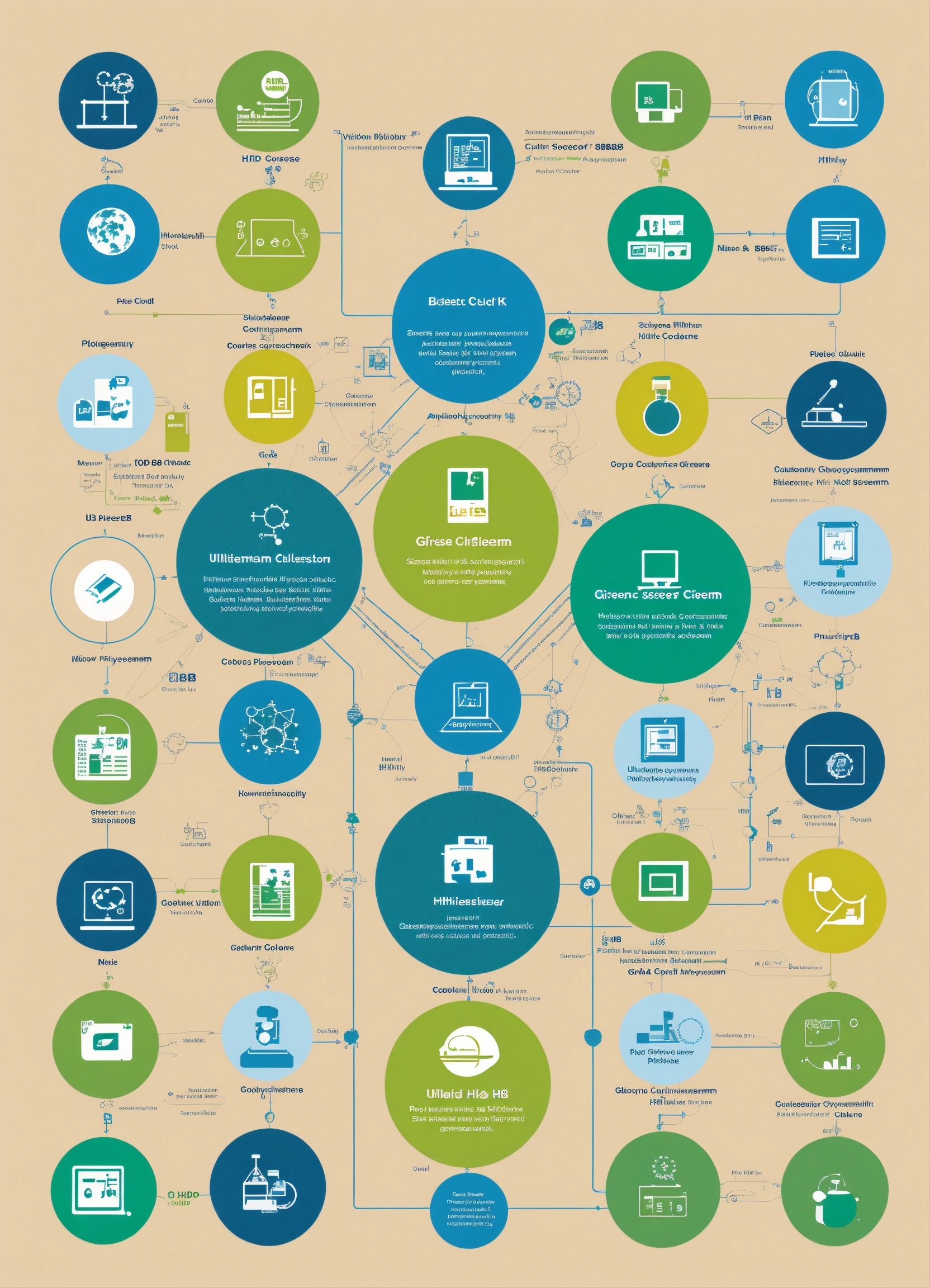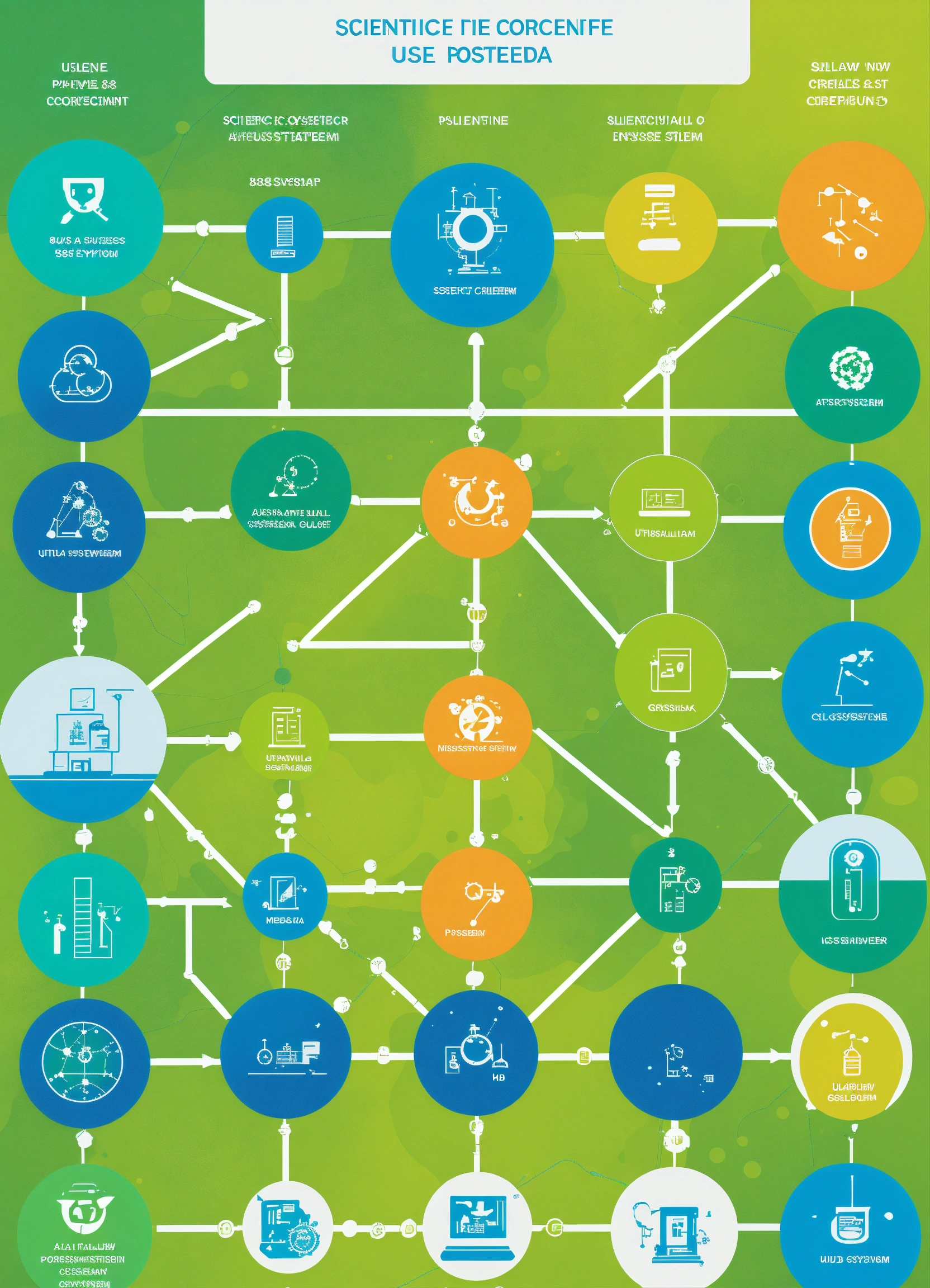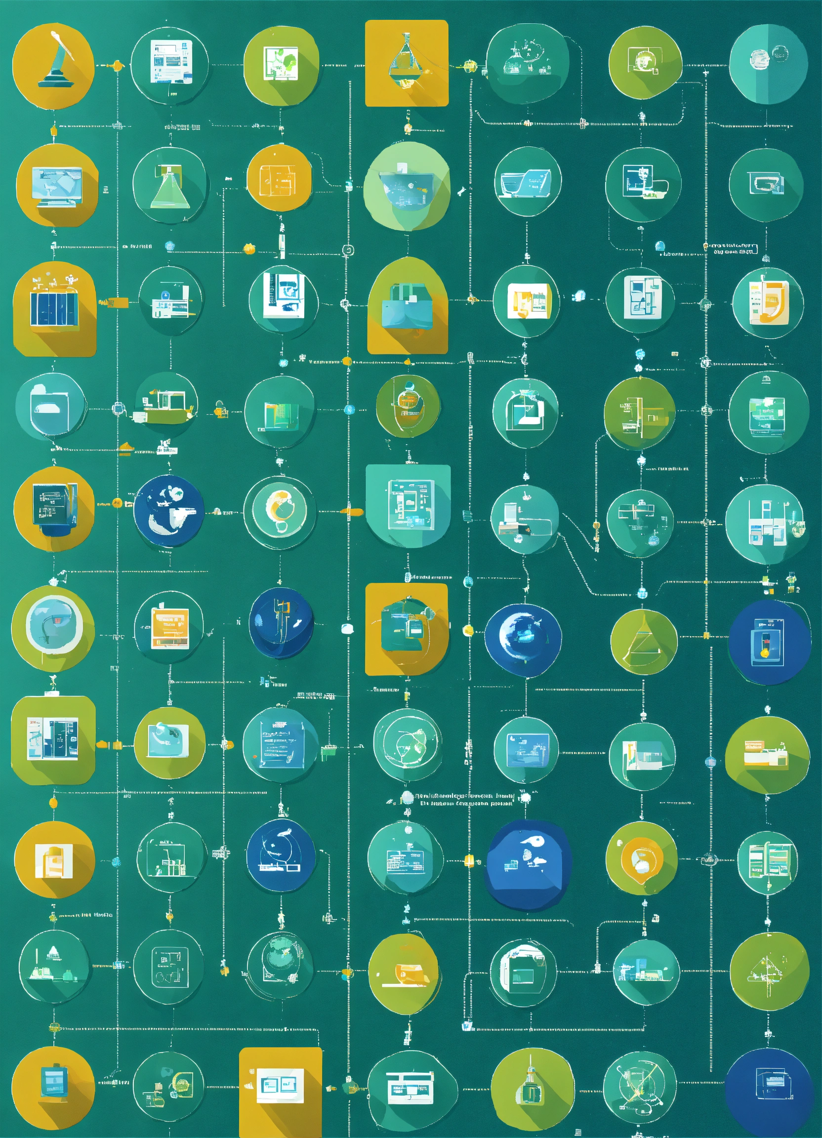 A flowchart of scientific icons that represents a partner ecosystem for use as a slide background. modern. brand colours are #024da1 and #37b884. blues and greens. ultrahd, kodak colour quality, 8k.