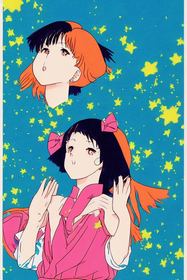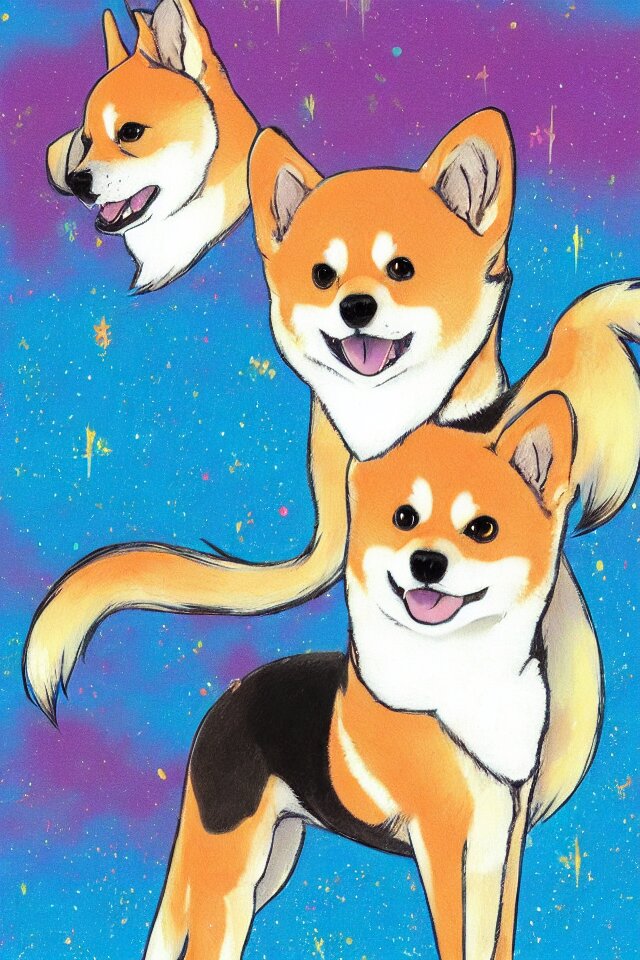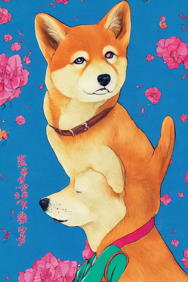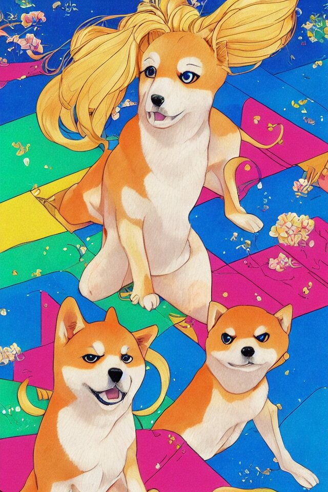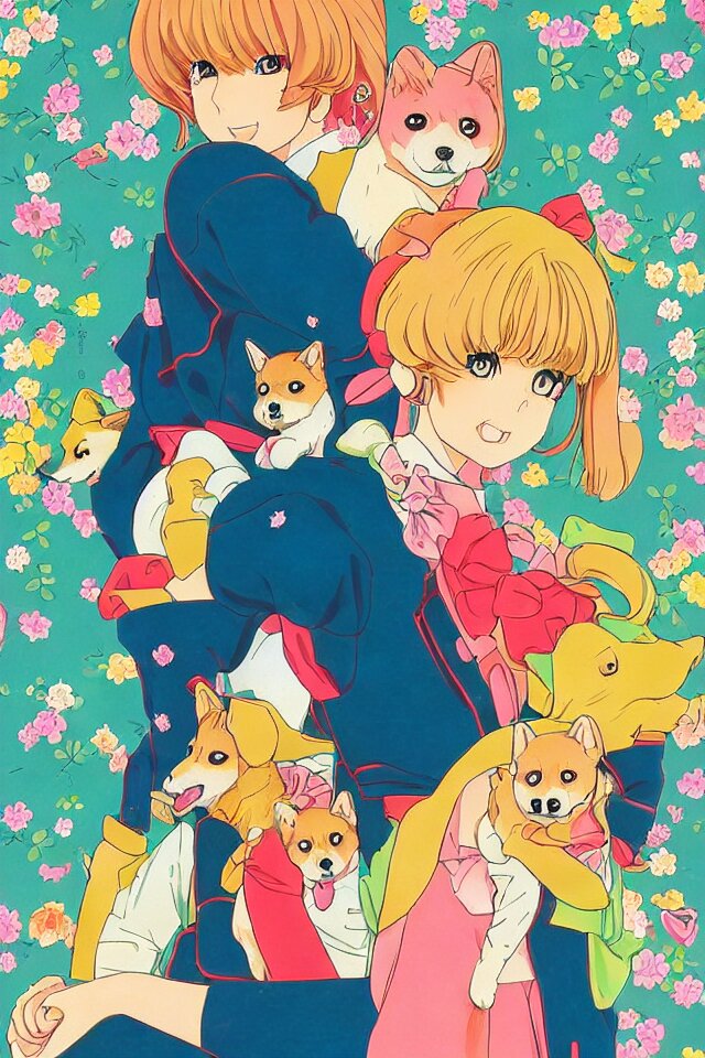 A portrait of a shiba inu, in the art style of 8 0 s anime, japanese city pop color palette, highly detailed, naoko takeuchi, hajime yatate