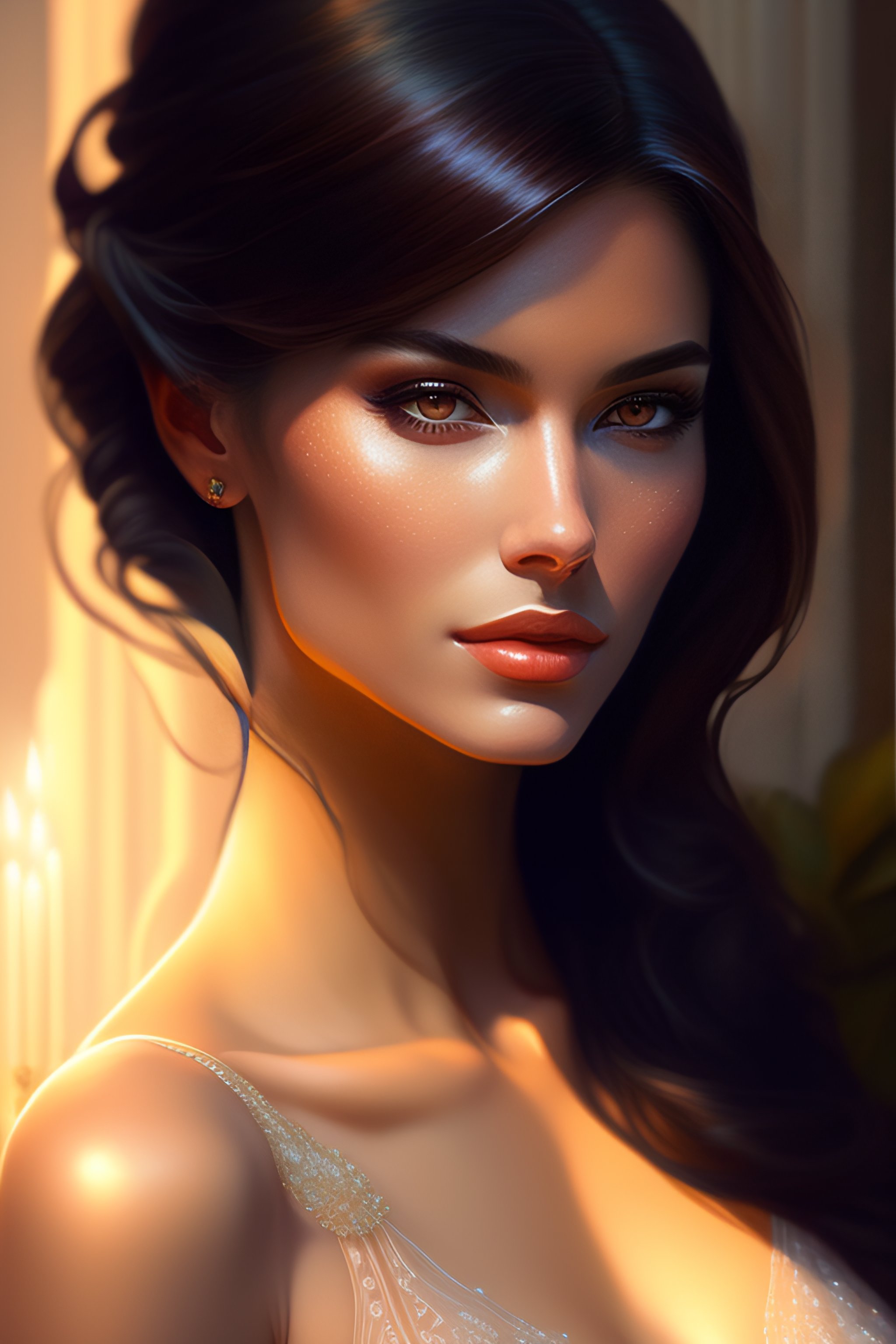 A portrait of beautiful woman, fantasy, sharp focus, intricate, elegant, digital painting, artstation, matte, highly detailed, concept art, illustration, ambient lighting, art by ilya kuvshinov, artgerm, alphonse mucha, and greg rutkowski, extremely detailed, intricate detail, cinematic, photoreal