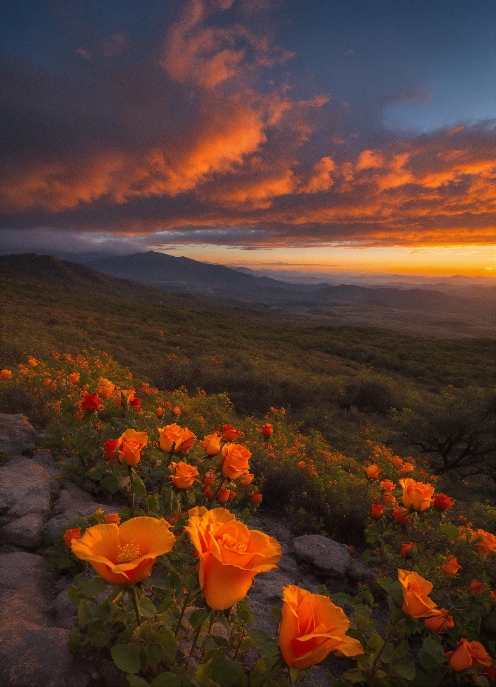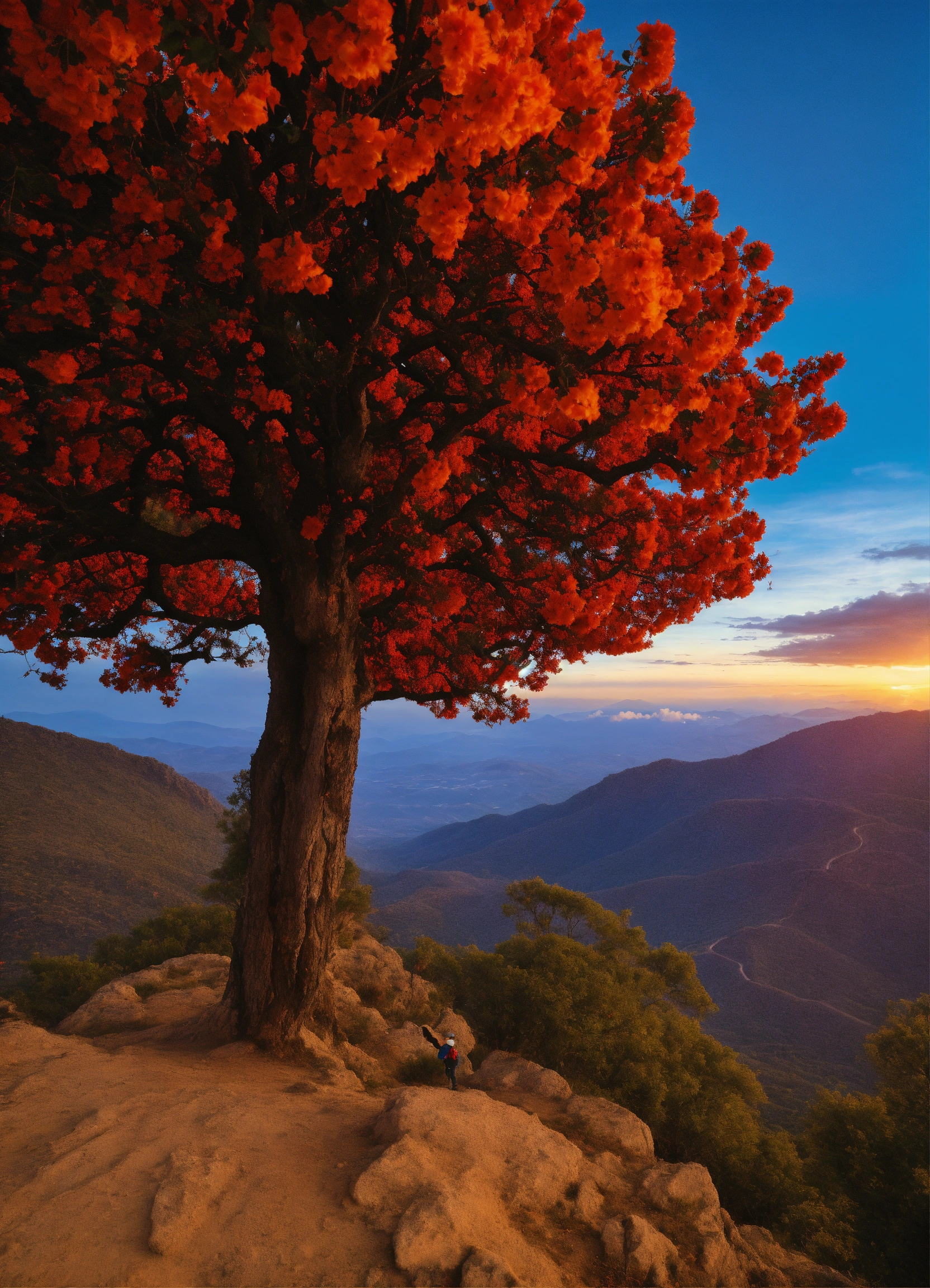 Imagina a roy sullivan en medio de un paisaje montañoso al atardecer. el cielo se tiñe de naranjas, rosas y morados, con nubes de tormenta acumulándose en el horizonte. la figura de roy se destaca en un punto elevado, tal vez en la cima de una colina o roca. está de pie, mirando al cielo, con una mezcla de resignación y asombro en su rostro. alrededor de él, pequeñas señales de sus encuentros pasados con rayos son visibles un zapato quemado, un sombrero chamuscado y marcas de quemaduras en su ropa. sin embargo, a pesar de estos signos de adversidad, su postura es fuerte y determinada. de repente, en la distancia, un rayo ilumina el cielo, creando un hermoso pero amenazante telón de fondo. la imagen evoca una sensación de asombro ante la fuerza de la naturaleza y la resistencia del espíritu humano.