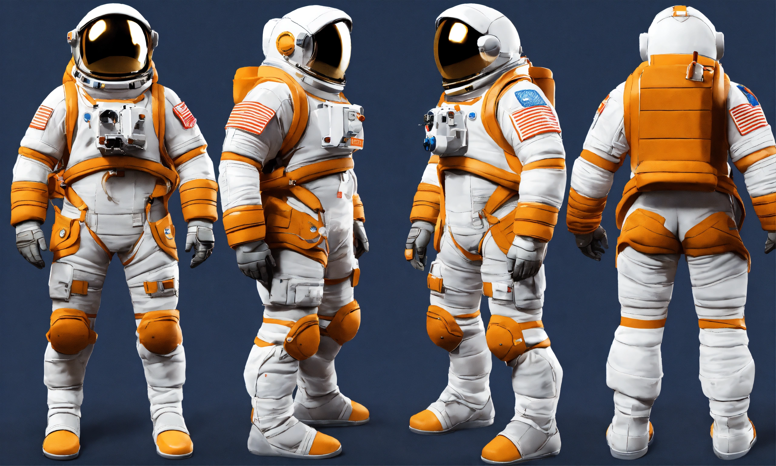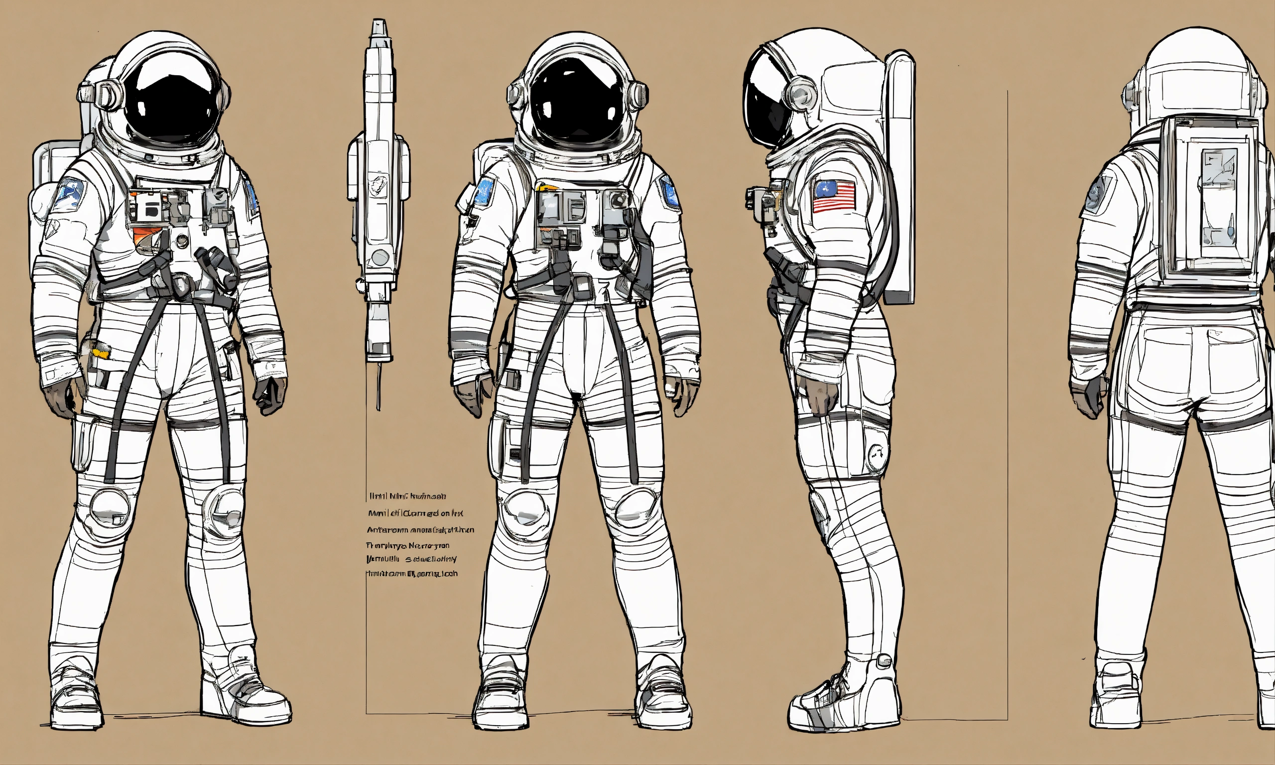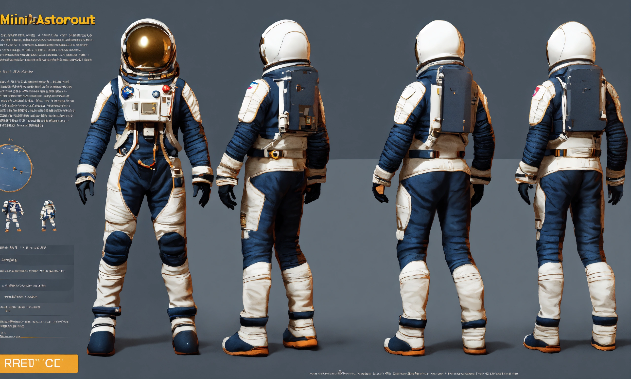 Mini astronaut, 2d, character sheet, full body, reference sheet, character model, detailed, front view, side view, back view