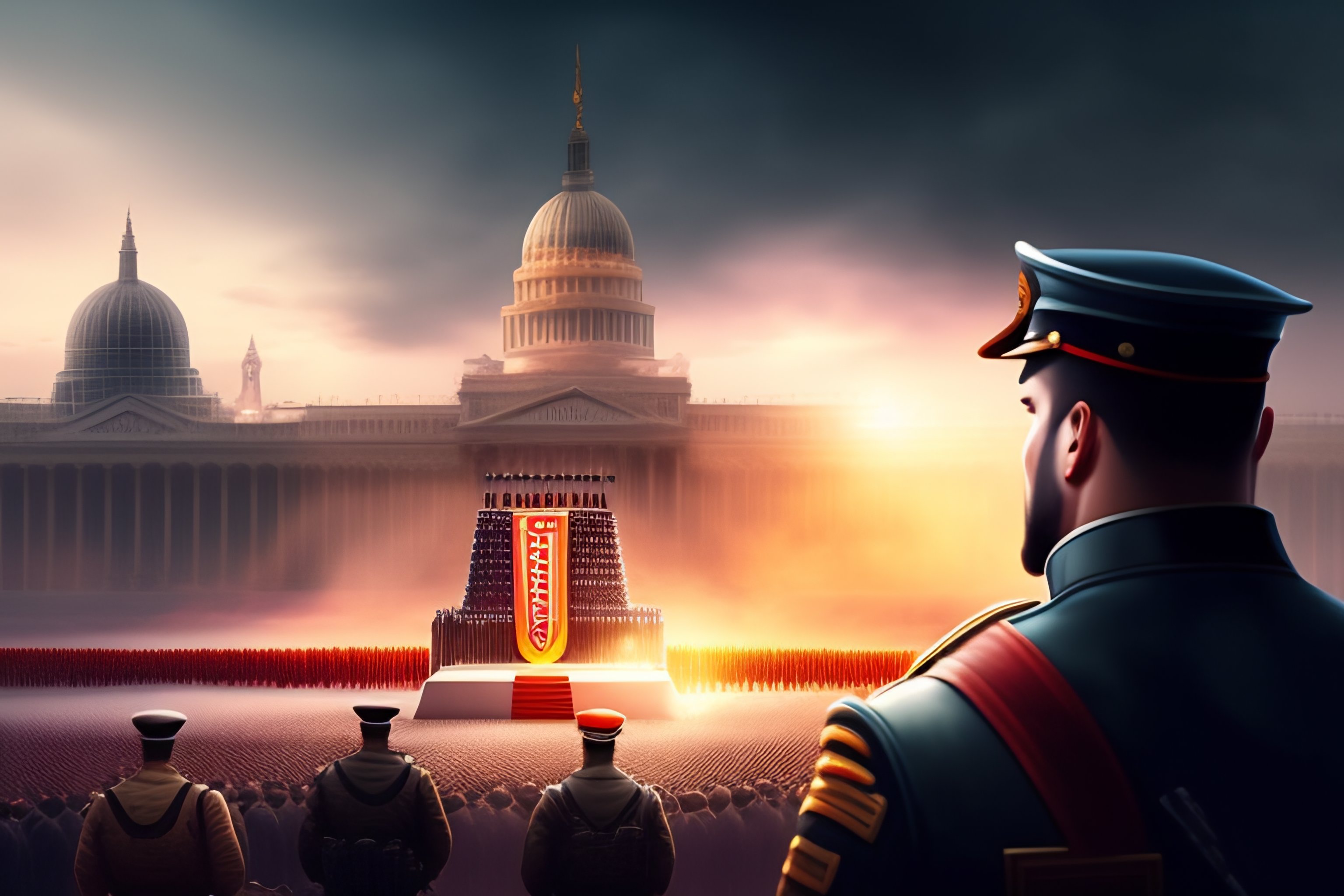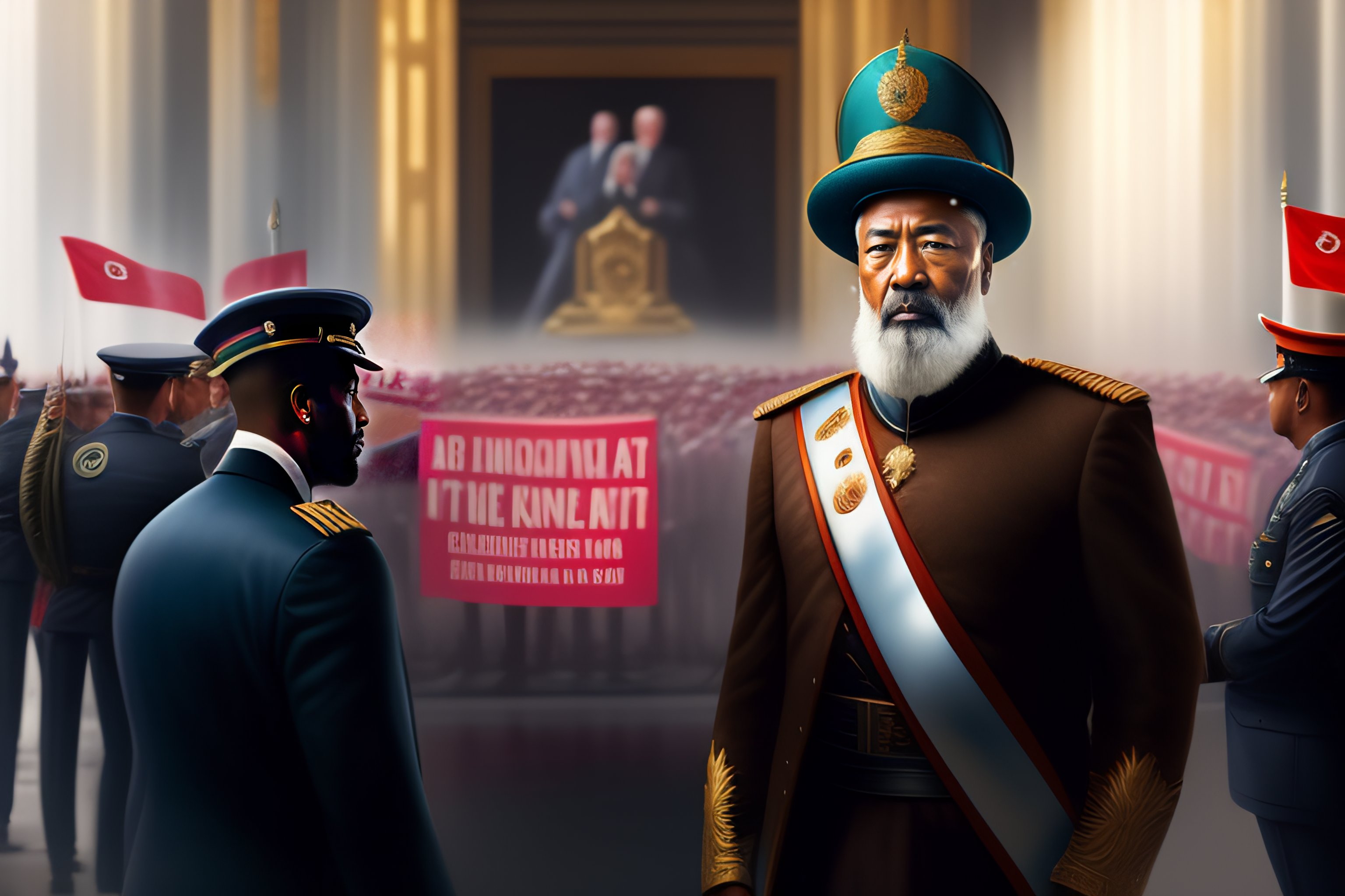 The digital concept art of a person demonstrating against the autocratic leader, charismatic, leadership