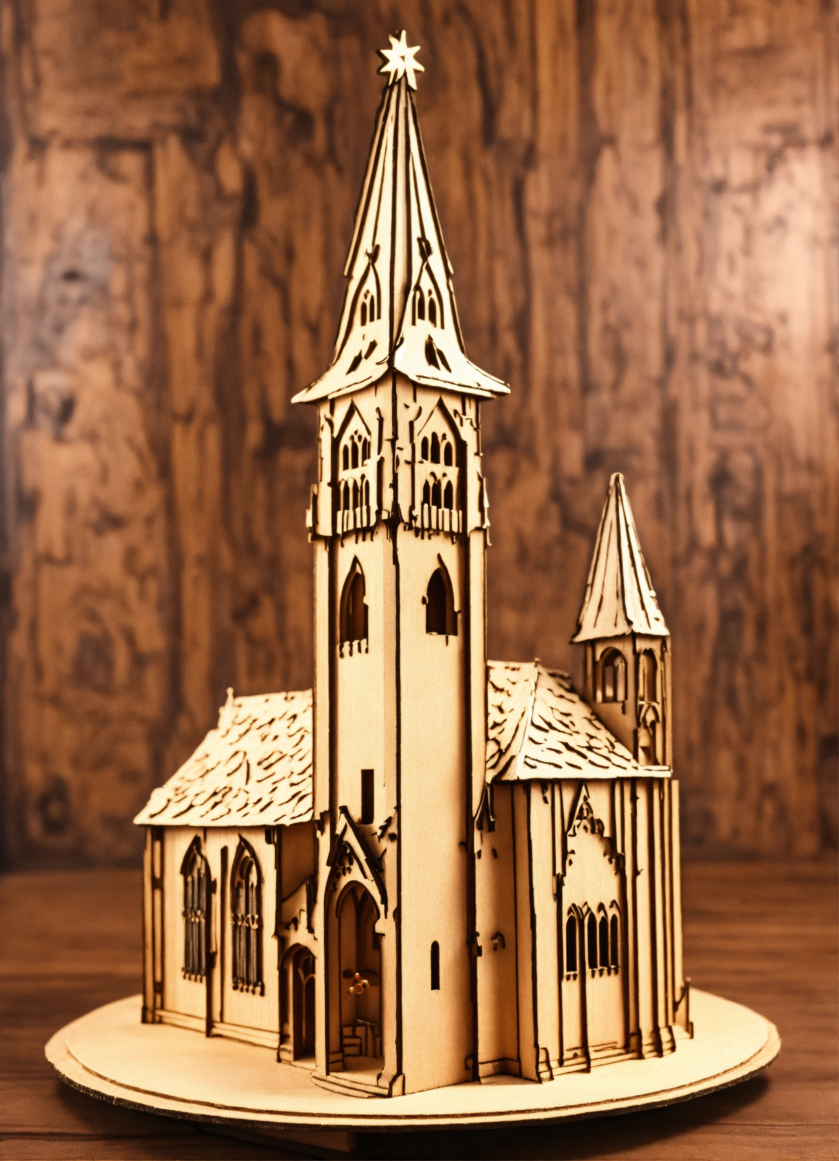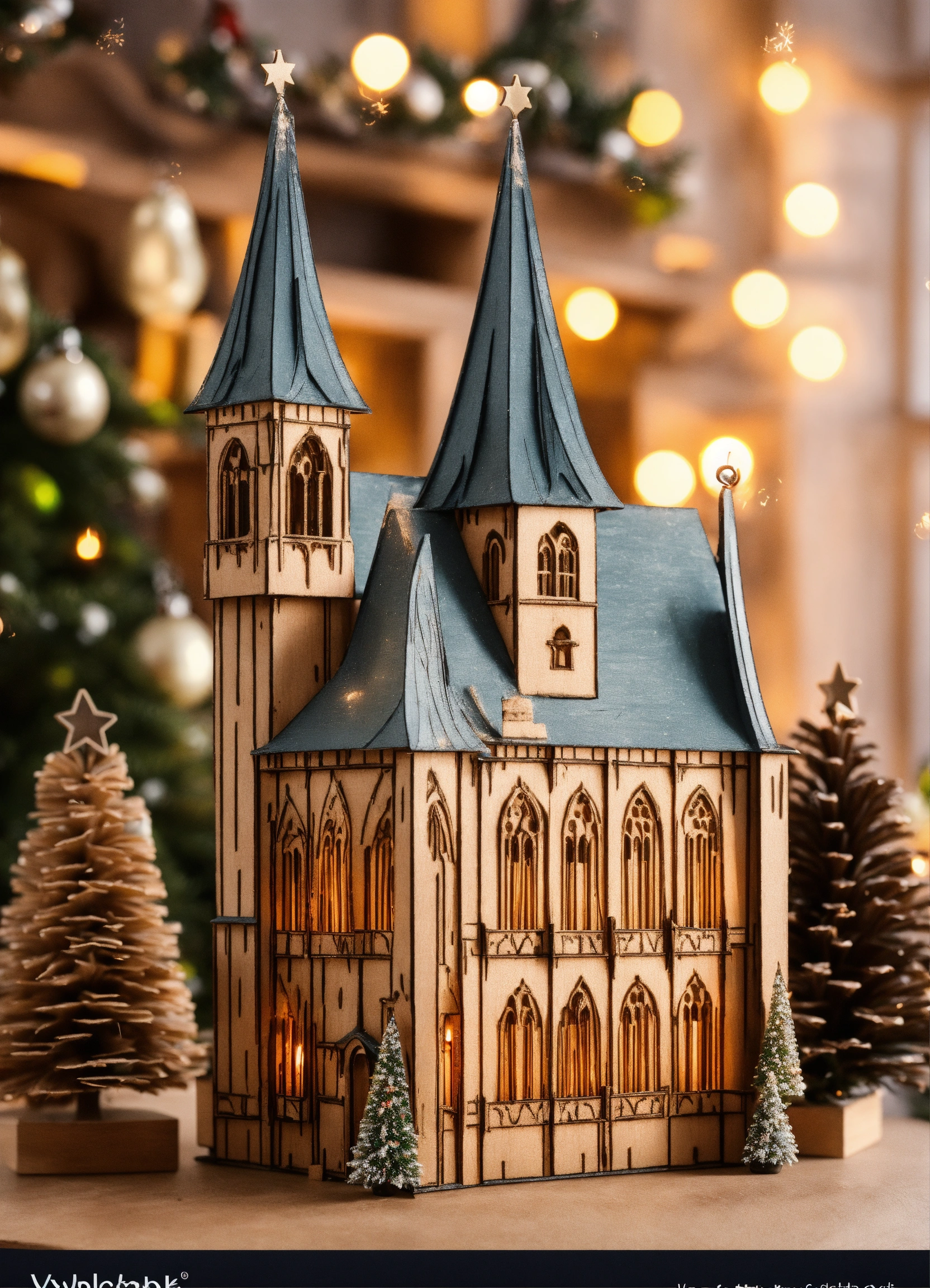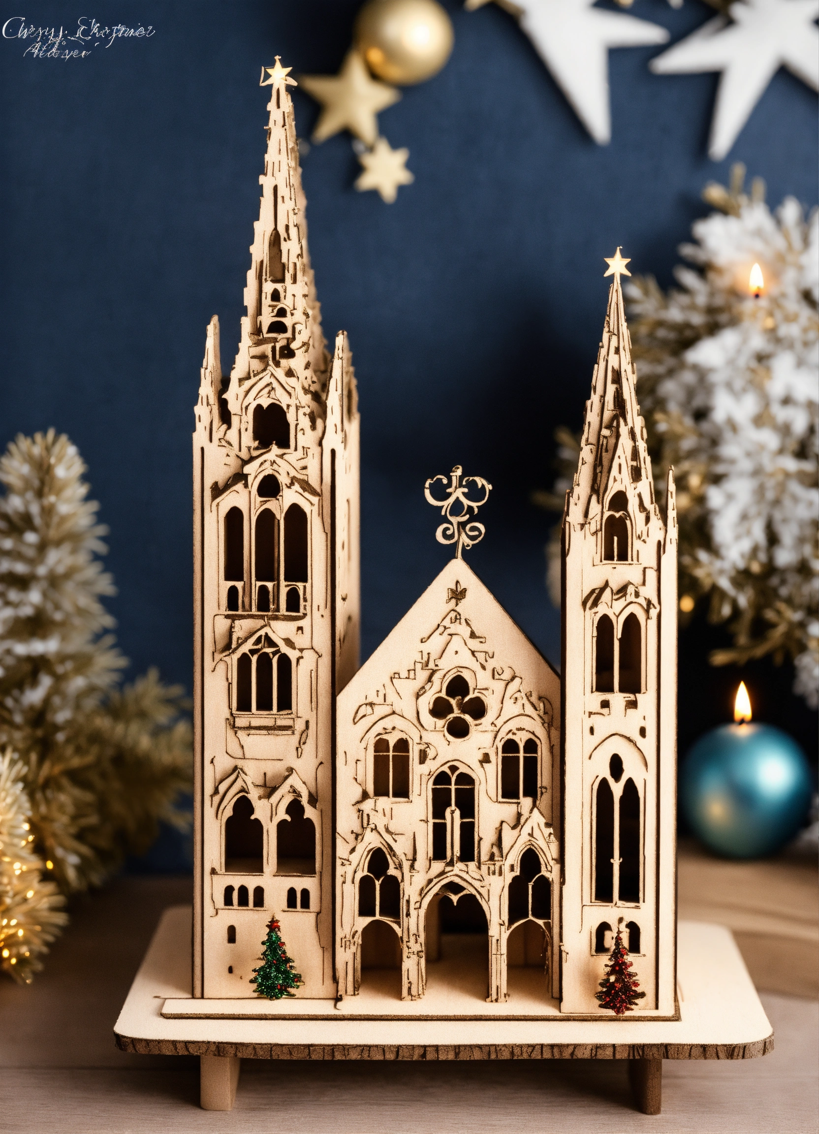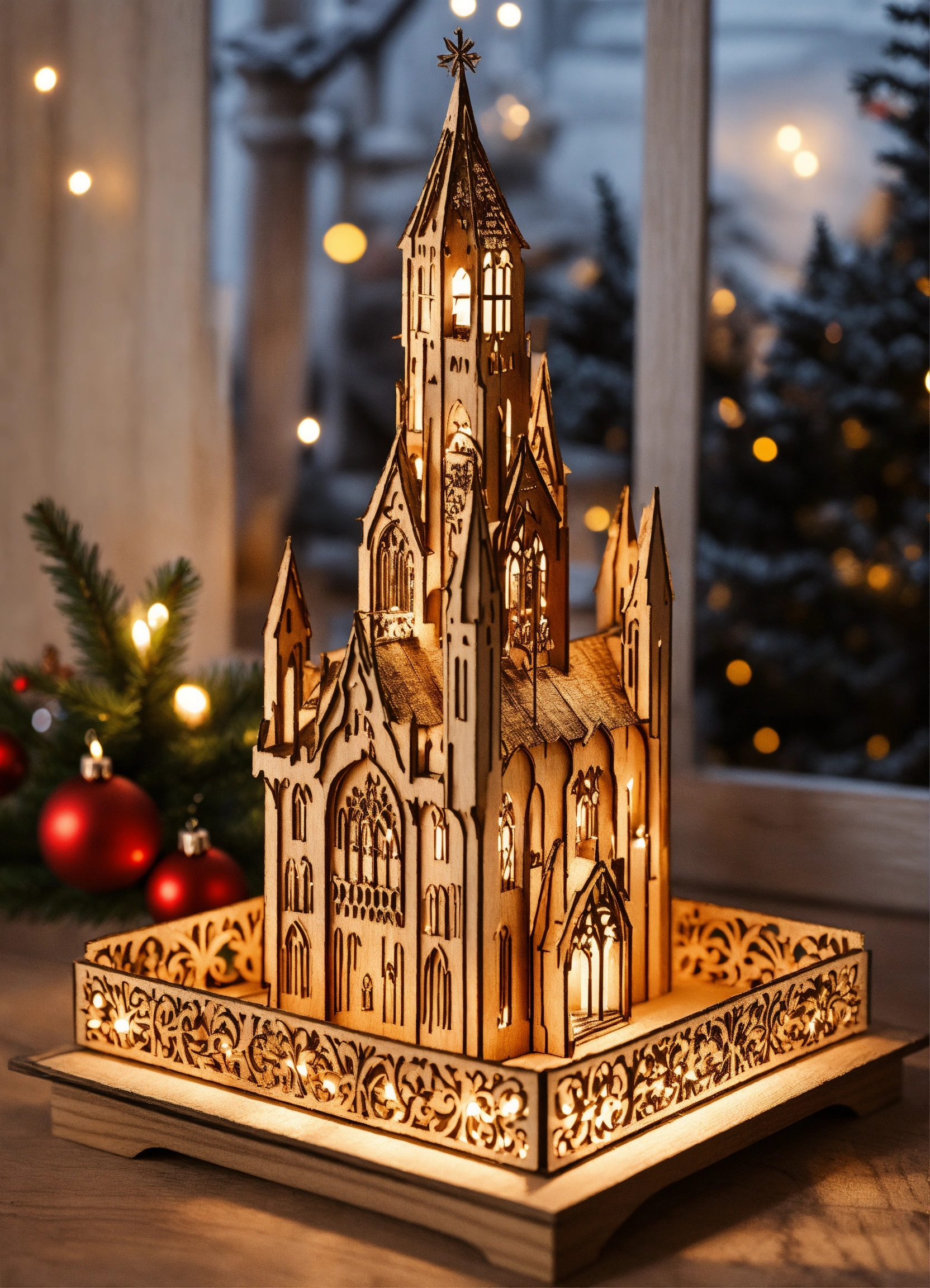 Plywood kraft layered german christmas decorative christmas candle detailed of medieval abbey square 2d style