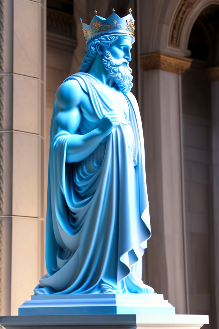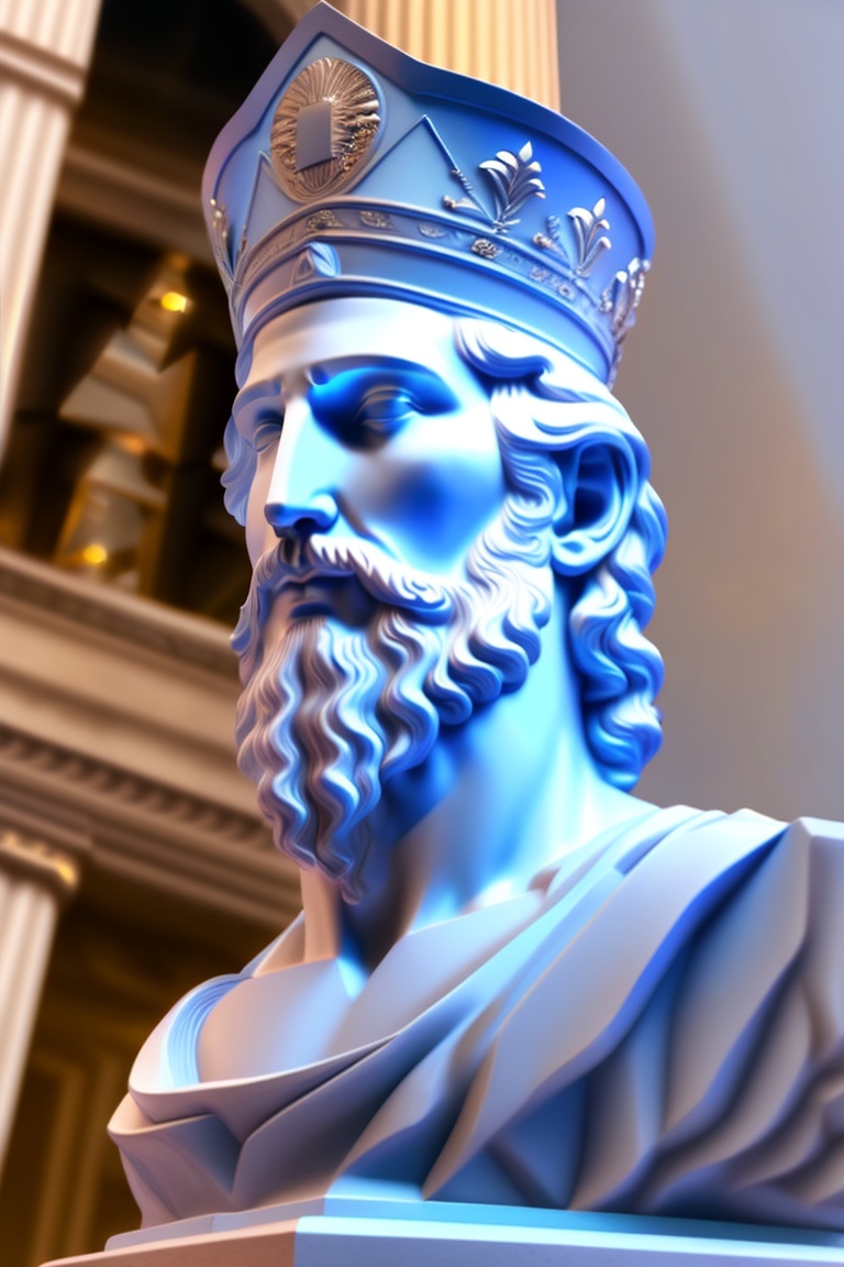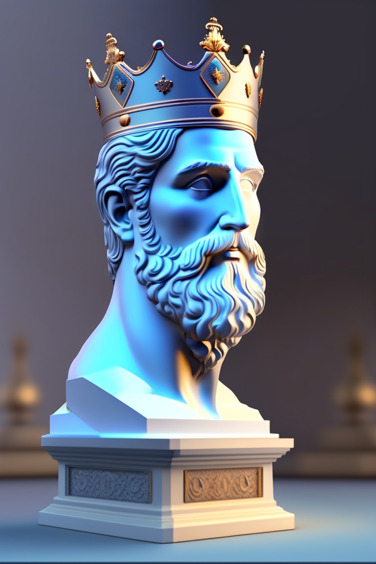 A beautiful picture of pythagoras, marble statu, realistic, ultra hd, 3d, marble, nikon camera, high contrast, very light light-blue shadows, looking to his left, crown of leaves