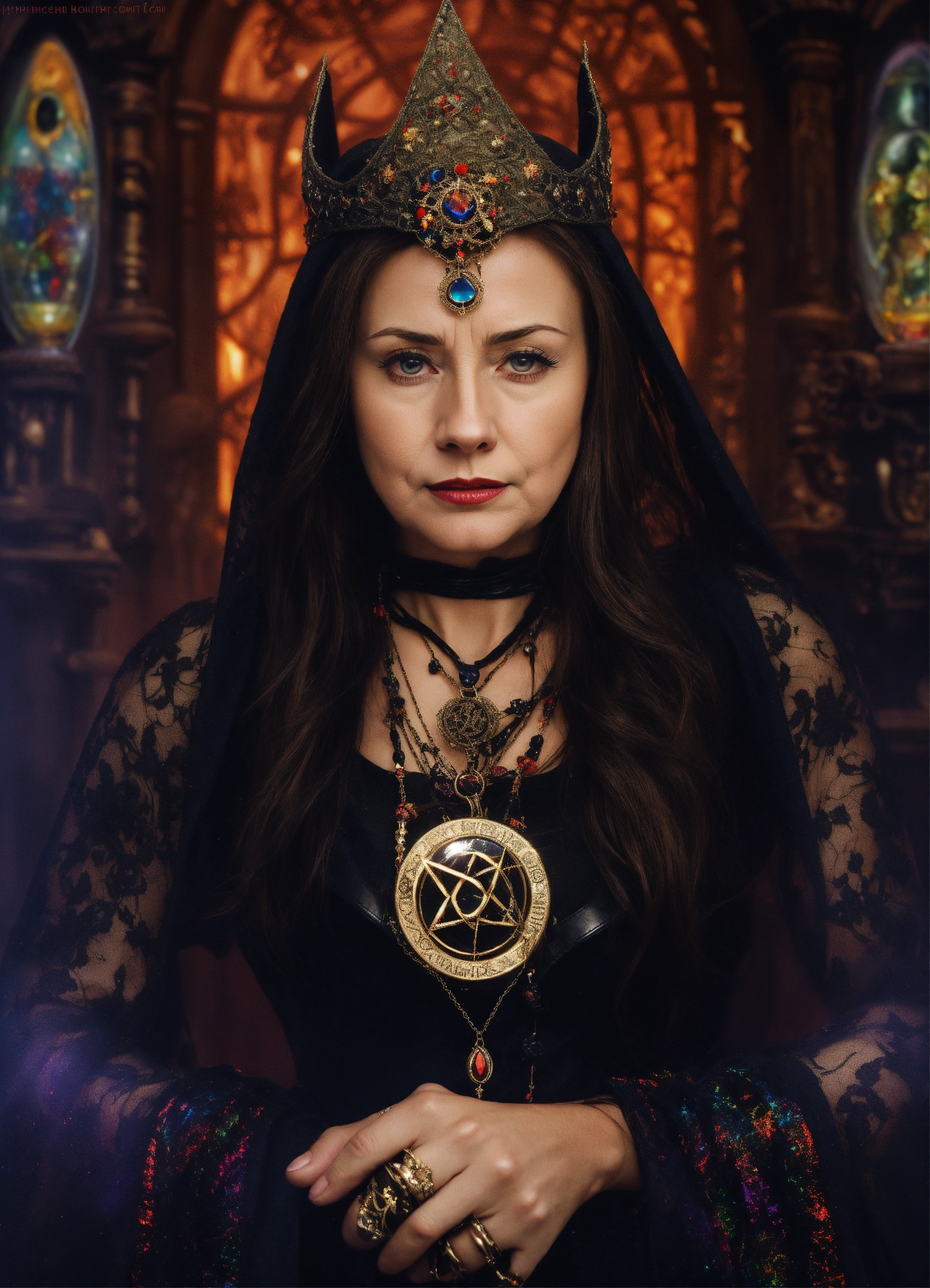 Older goddess hillary clinton as morgan le fay the powerful dark satanic supernatural sith night sisters mind control witch, wearing holographic black leather "hypno short shorts" & boots & black leather gloves, a trance inducing pendant a powerful dark satanic priestess sorceress with supernatural mind control powers, mistress of the dark occult arts, 5-point pentacle amulet necklace, casting powerful mesmerizing spell on the masses, the most powerful witch in the world, now casting a spell on me, i feel her power grow, hypnotic hour glass figure, controls every thought in my mind, so powerful overwhelming cant resist i crave to please, gaze weaves dreams & illusions, she conjures a vortex of energy to envelope me, exudes dominating ultimate magical power & energy, goddess can manipulate the fabric of reality with a snap of her fingers, mesmerizing eyes can burn a hole in my soul forever, i am a prisoner under in her evil love spell, hypnotizing hour glass figure
