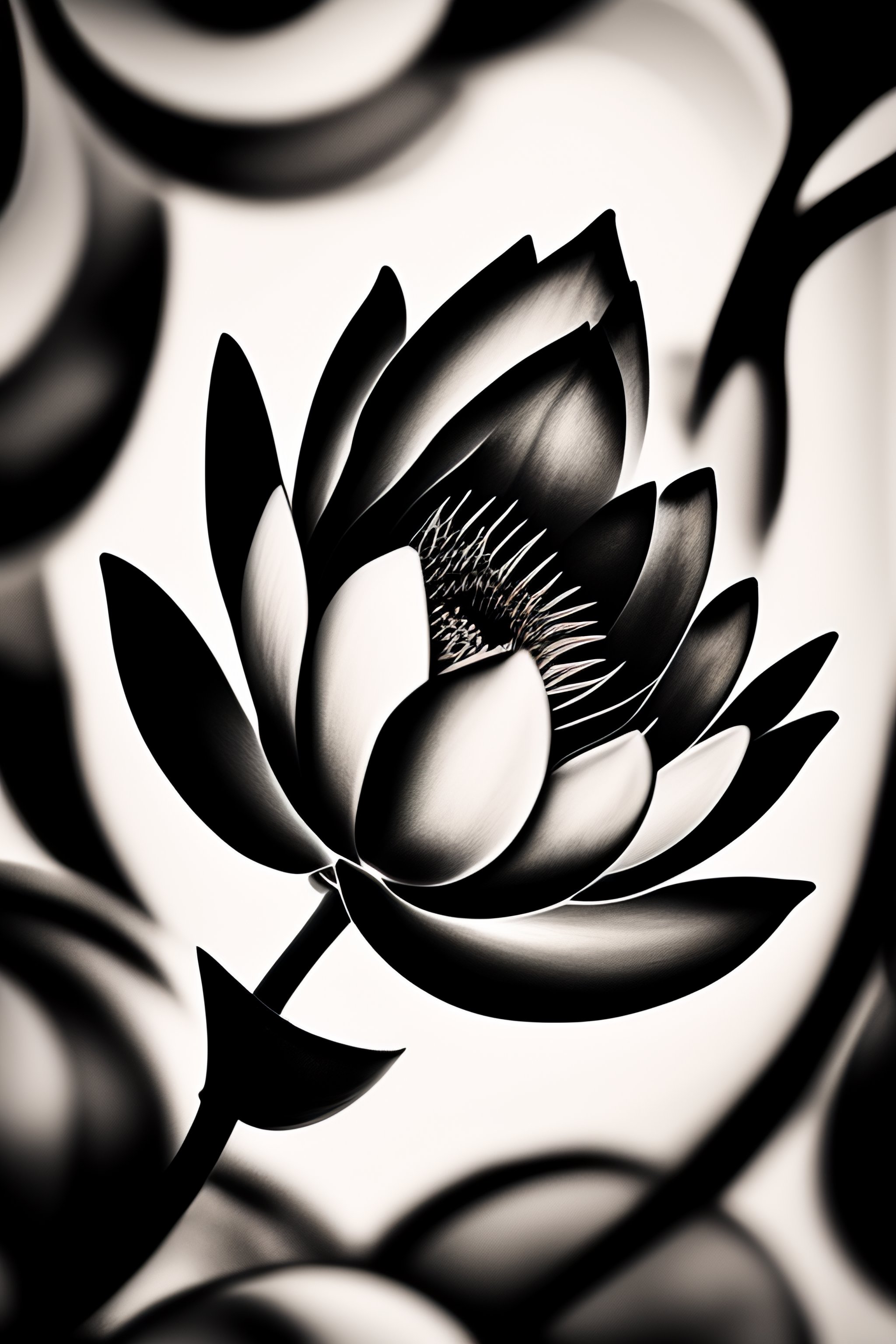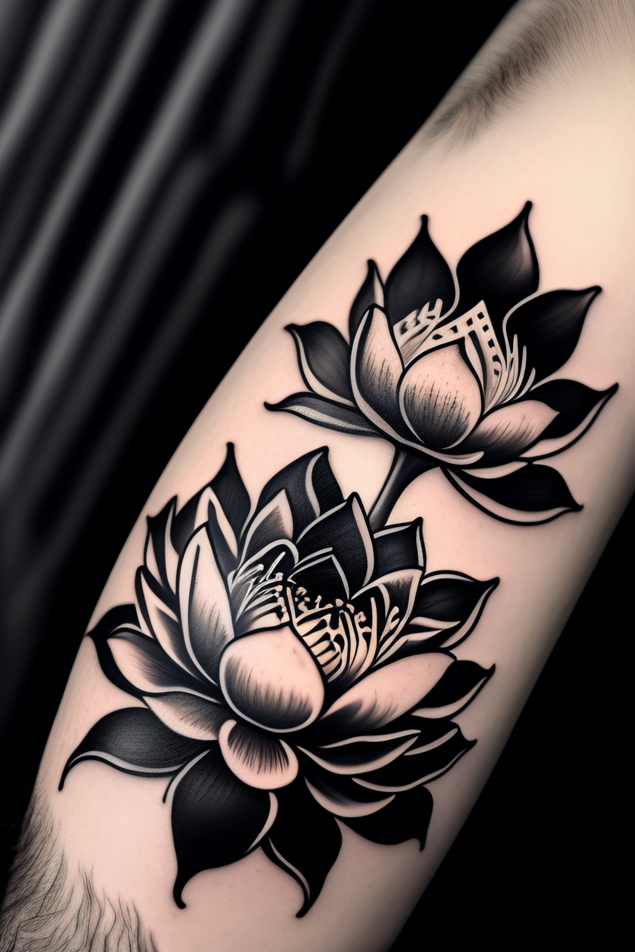 Minimalist black and white lotus flower tattoo fine realistic shadowed
