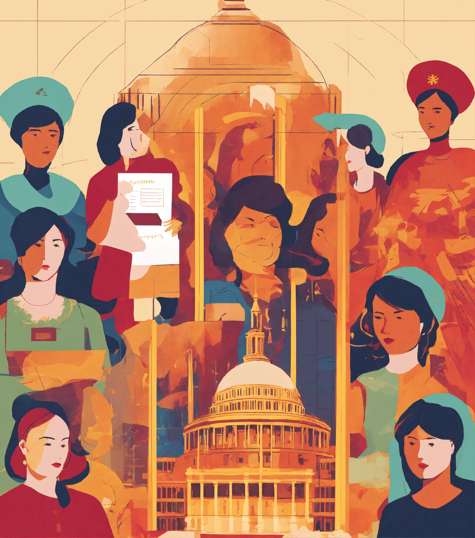 An illustration of pictures of legislative reforms and policies supporting gender equality