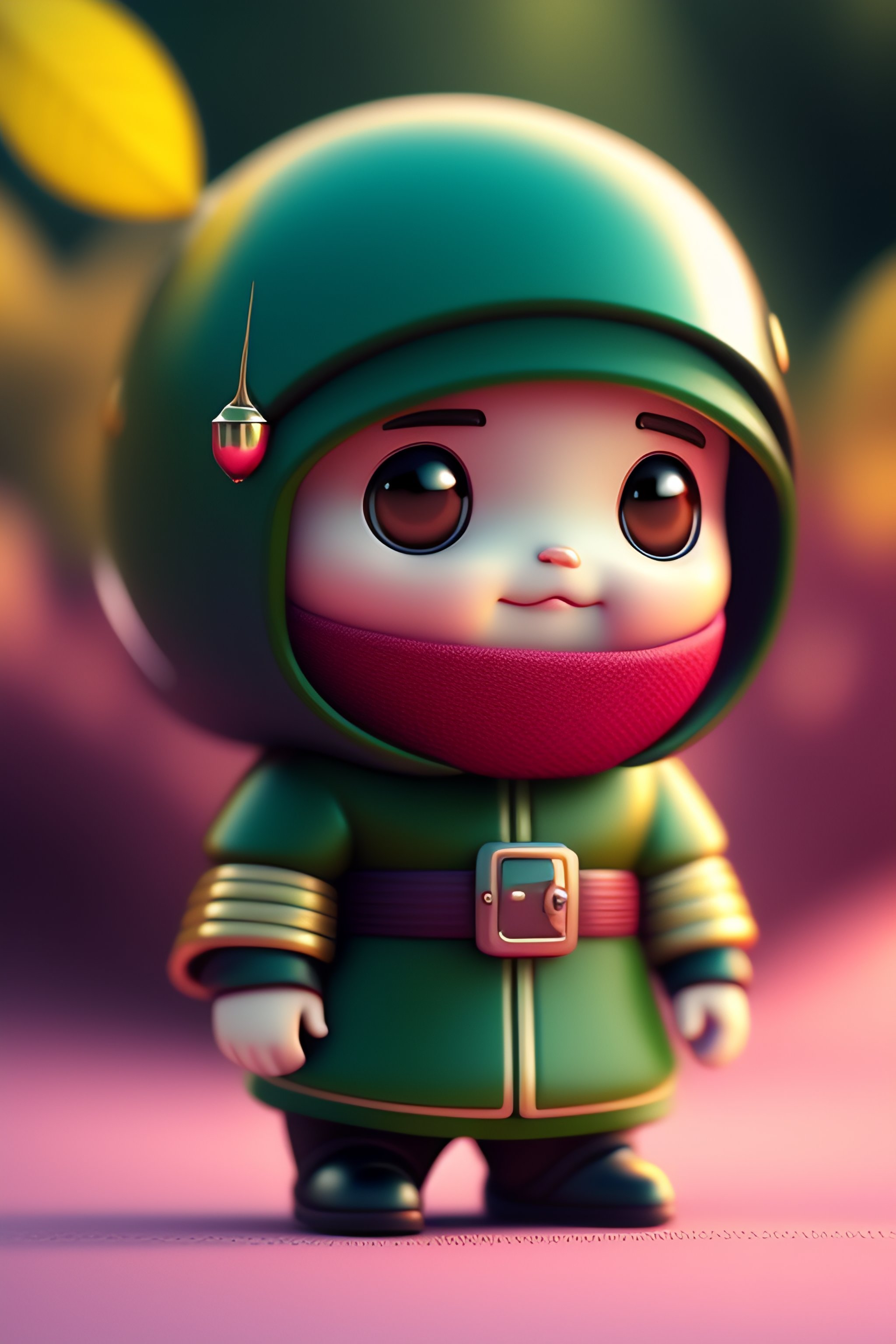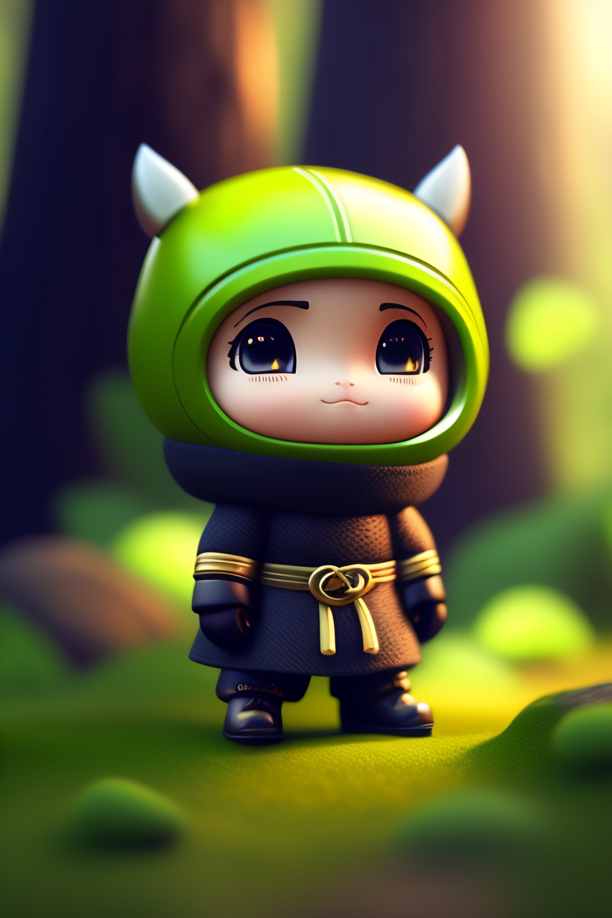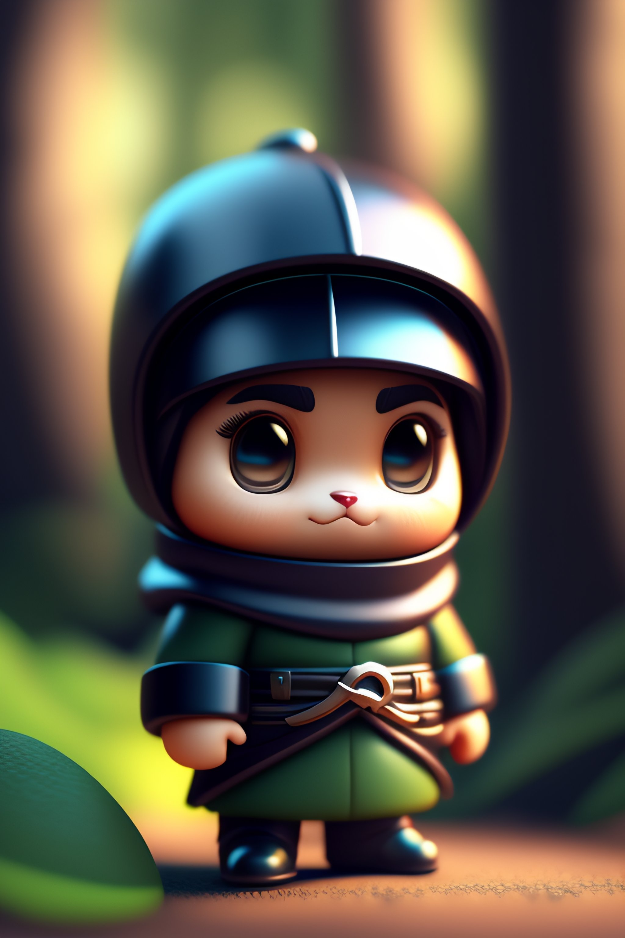C4d render of a comically tiny cute and adorable ninja in a forest, 3d render, cartoon it, hyper realistic, highly detailed, digital illustration, fantasy, dreamlike, surrealism, super cute, trending on artstation designed by dieter rams