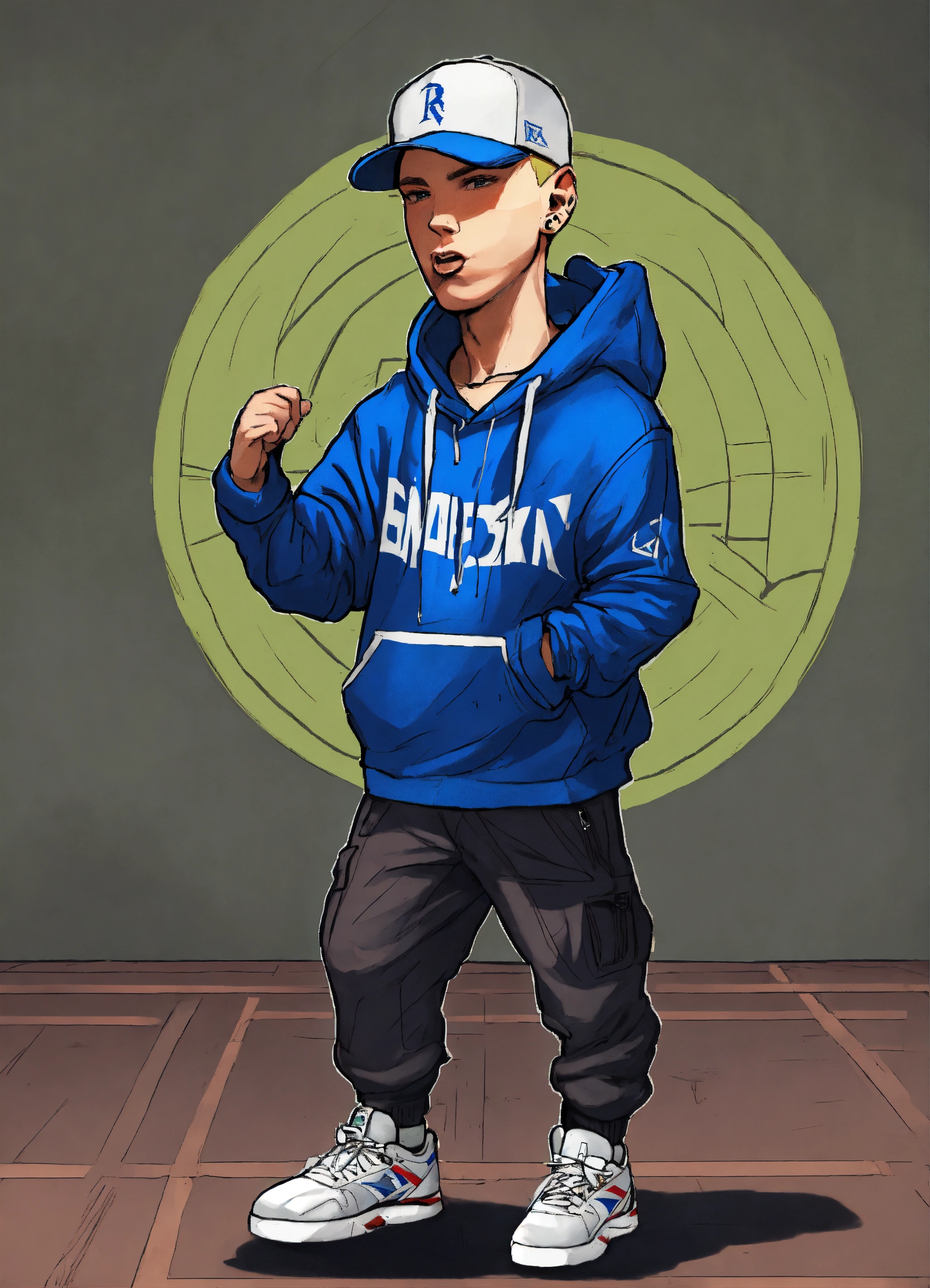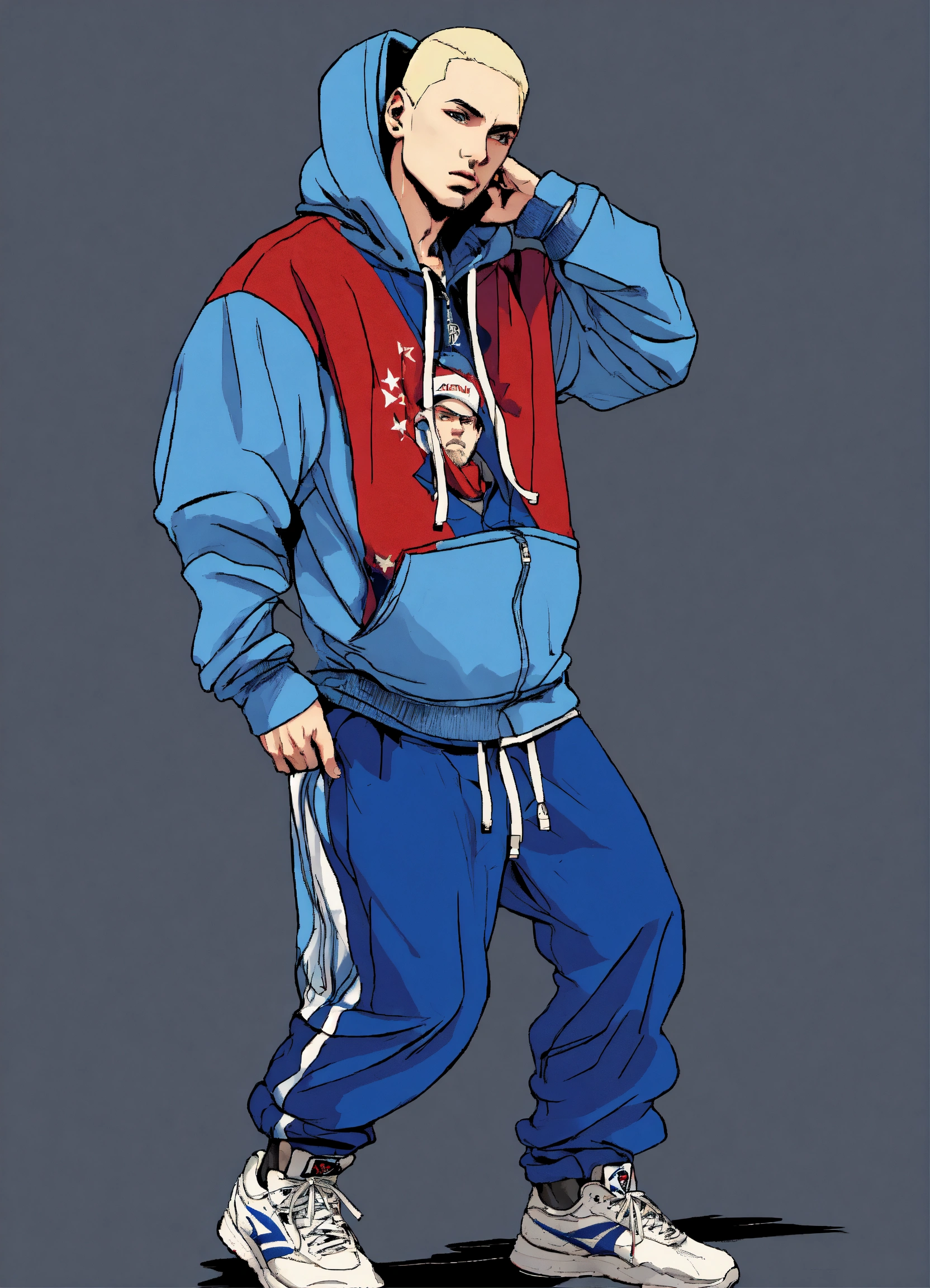 Handsome cartooned eminem with a dressed in reebok hoodie