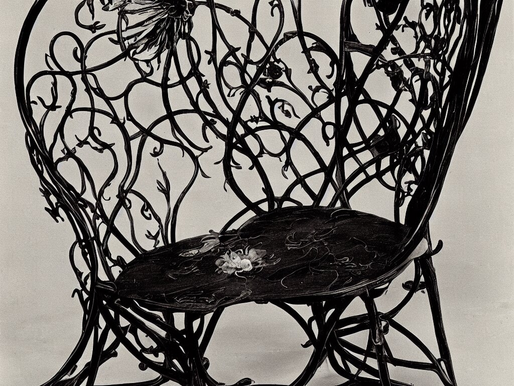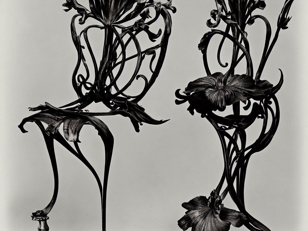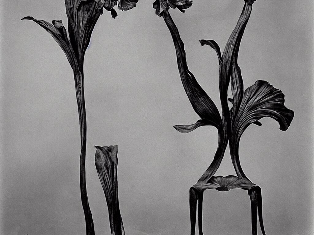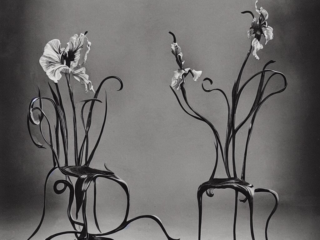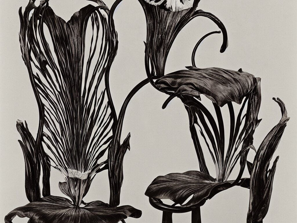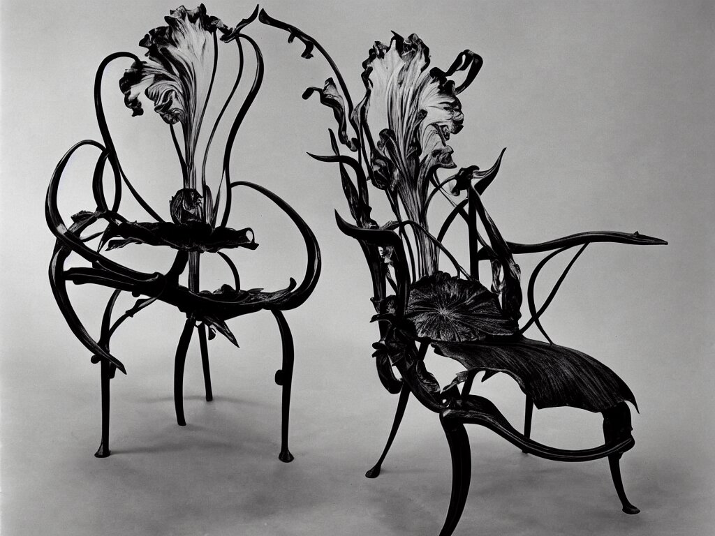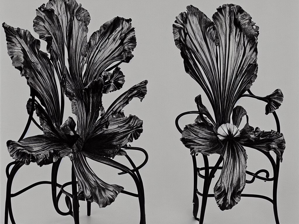 Flaming gothic chair in the shape of a iris flower. karl blossfeldt