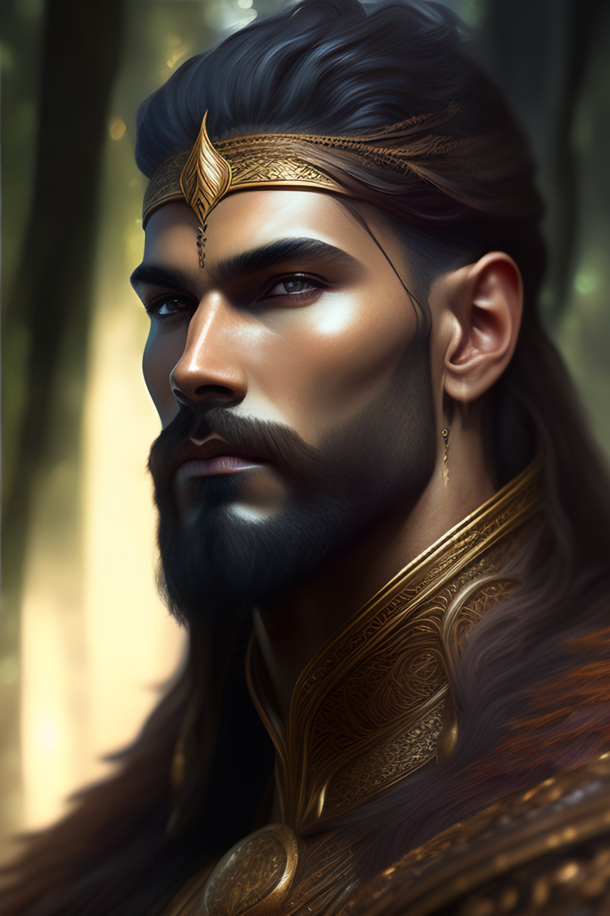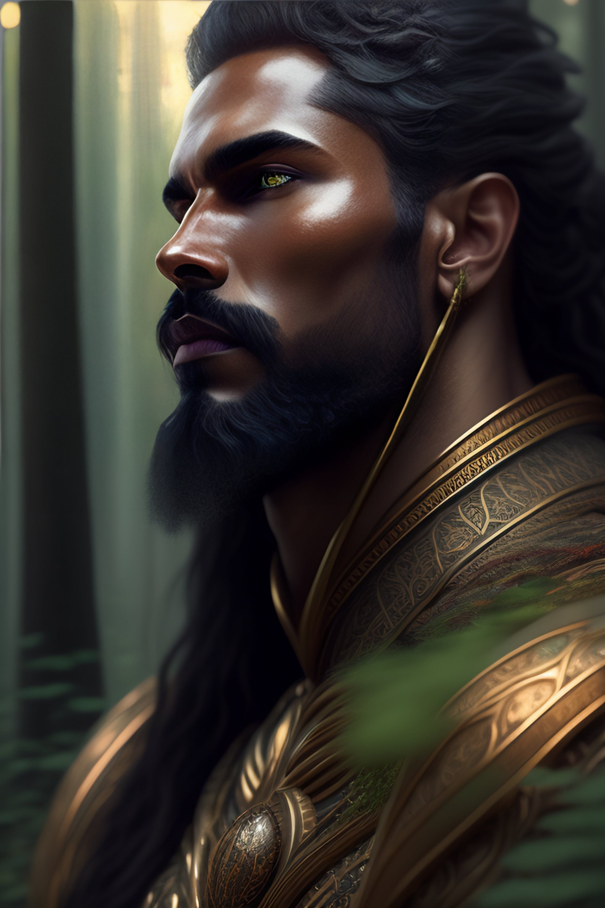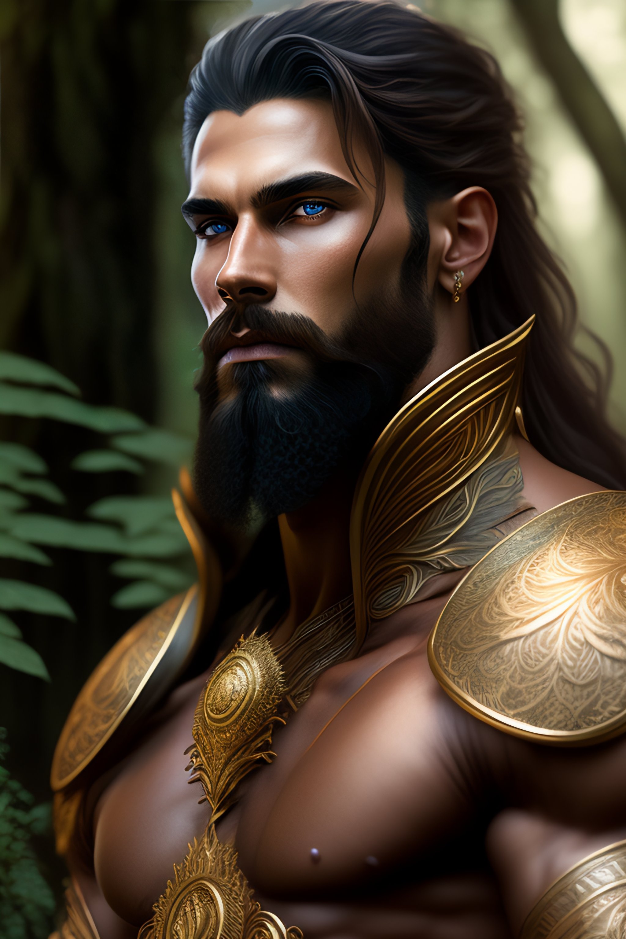 Portrait of forest god, fantasy alien forest, male, clear face, masculine, beard, full body, muscular, fantasy, intricate, elegant, highly detailed, digital painting, deviantart, artstation, concept art, matte, sharp focus, photo realistic, detailed face, realistic skin, greg rutkowski and alphonse mucha