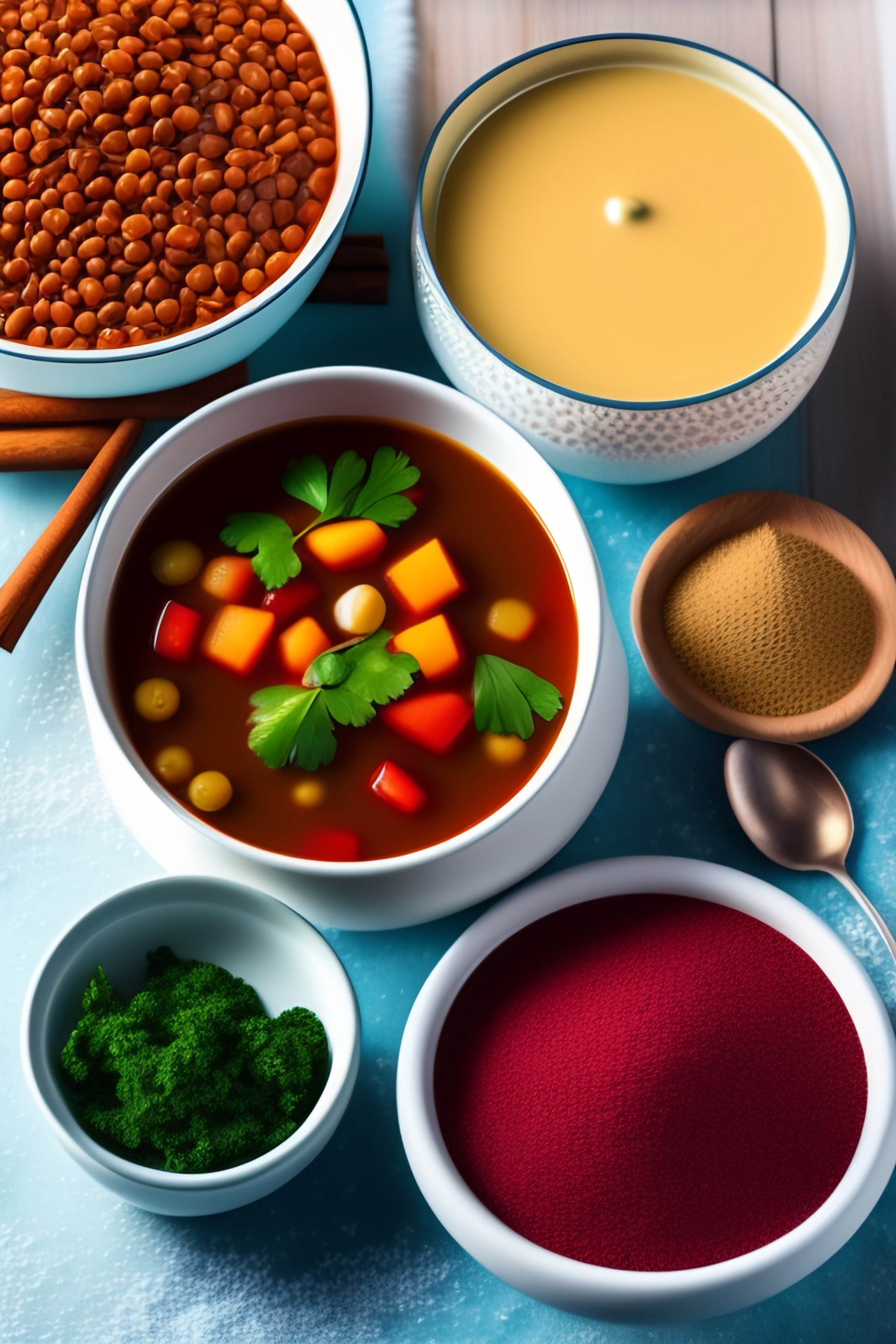 Create a colorful winter scene using the ingredients from one of the recipes above. for example, you could use the lentils, vegetables, and spices from the lentil soup to create a wintery landscape, or the quinoa, kale, and dressing ingredients to make a vibrant still life. get creative and have fun!