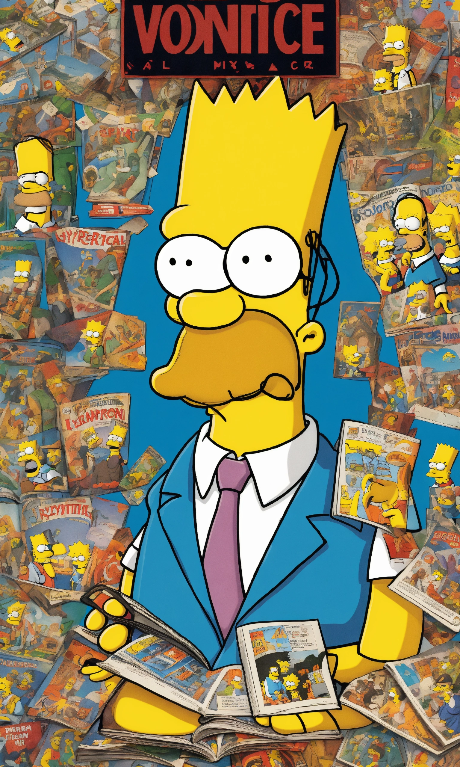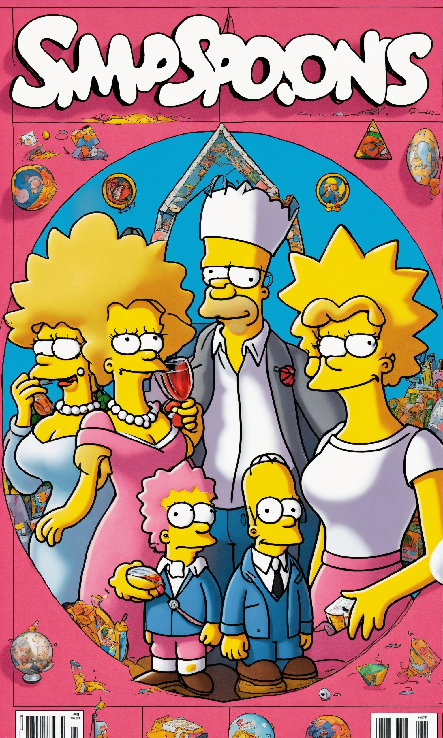 Matt groening as simpsons in a magazine with illuminati logo everywhere