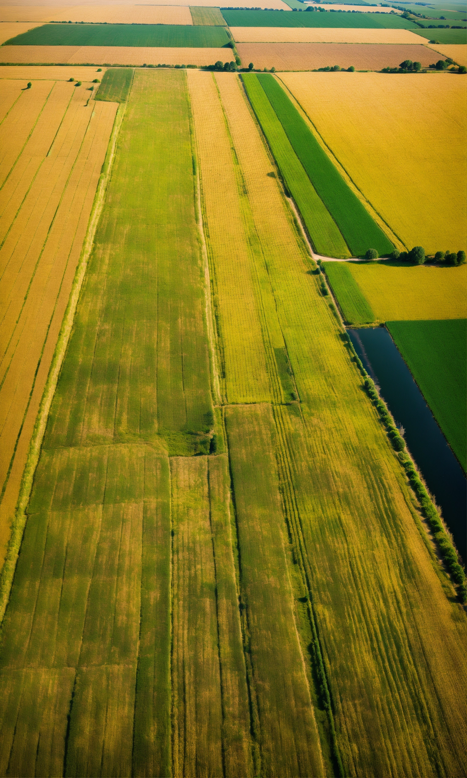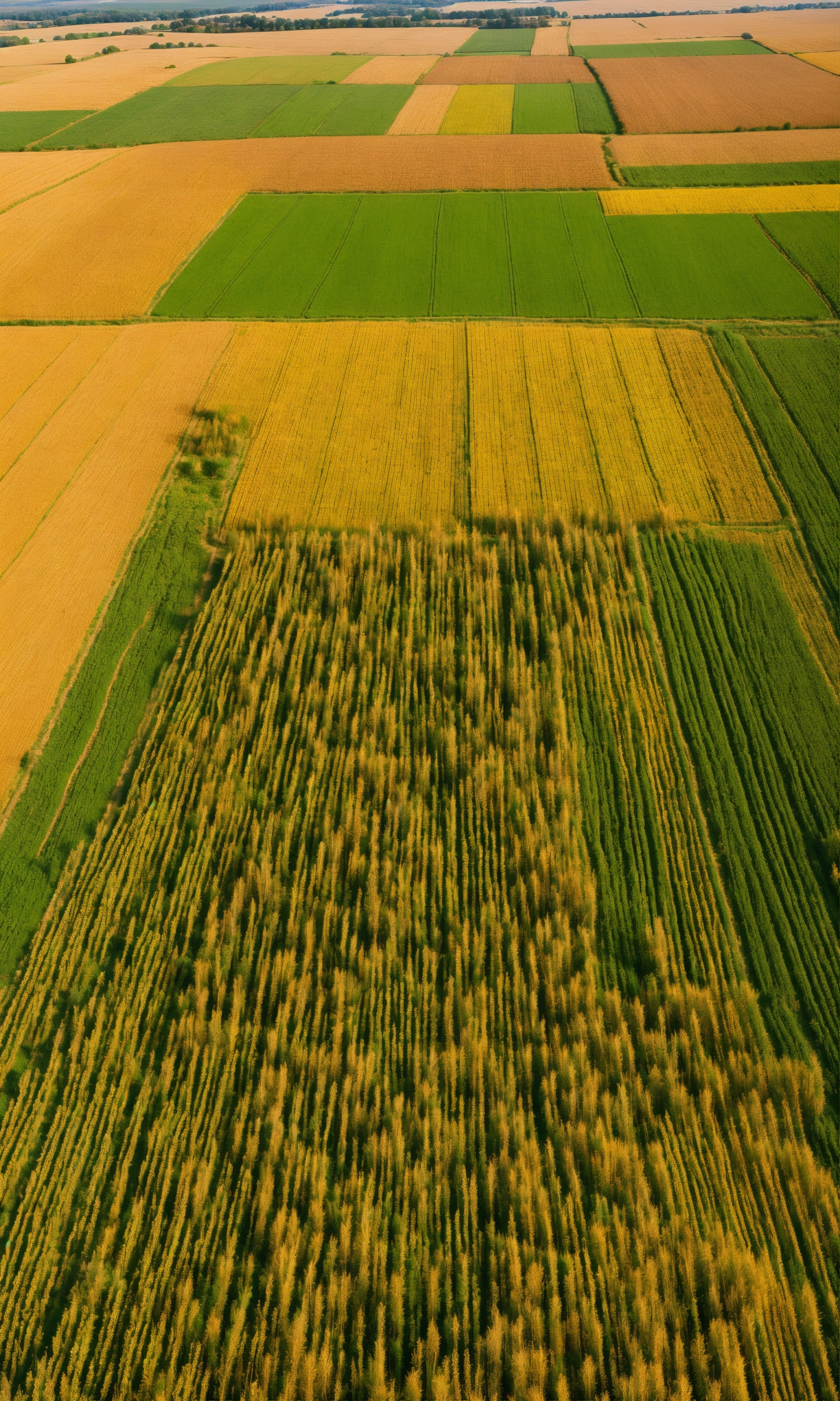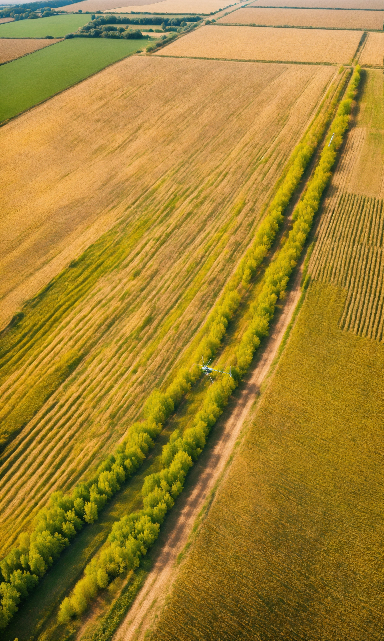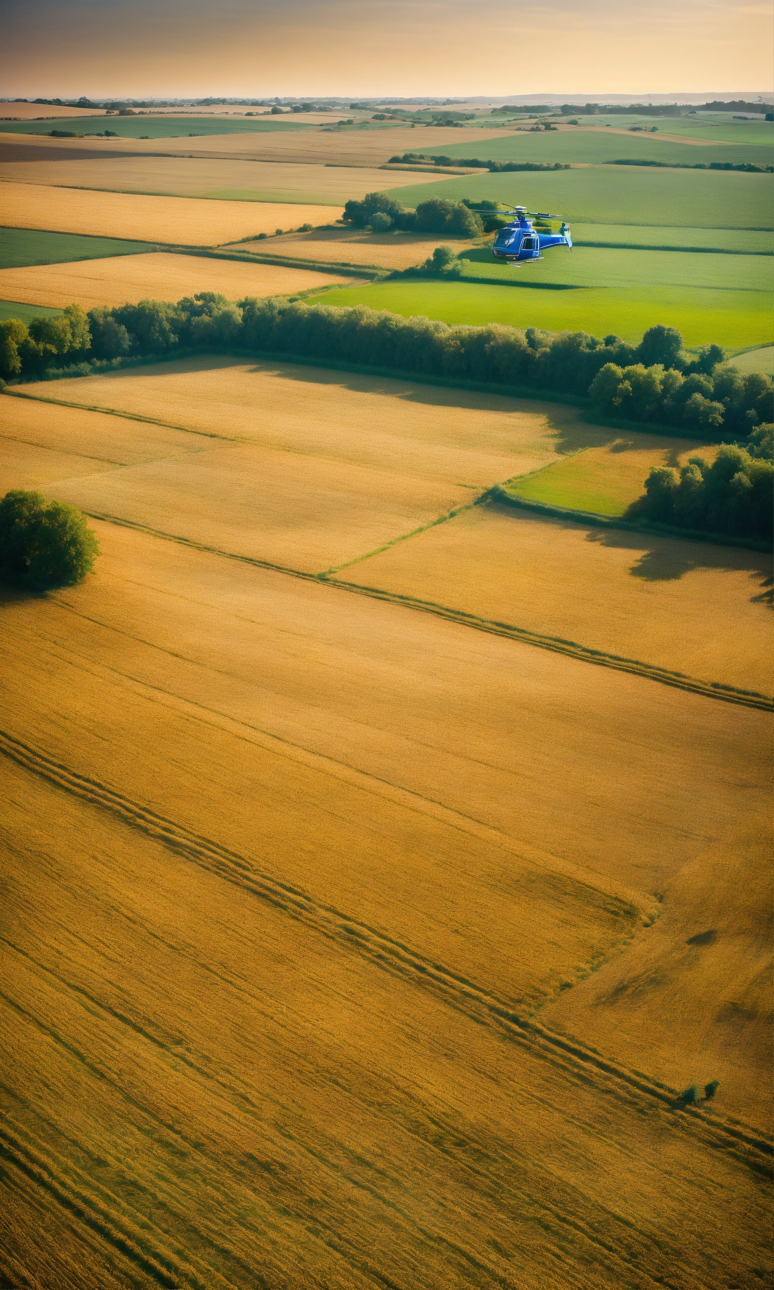 View on a many fields of wheat from a helicopter