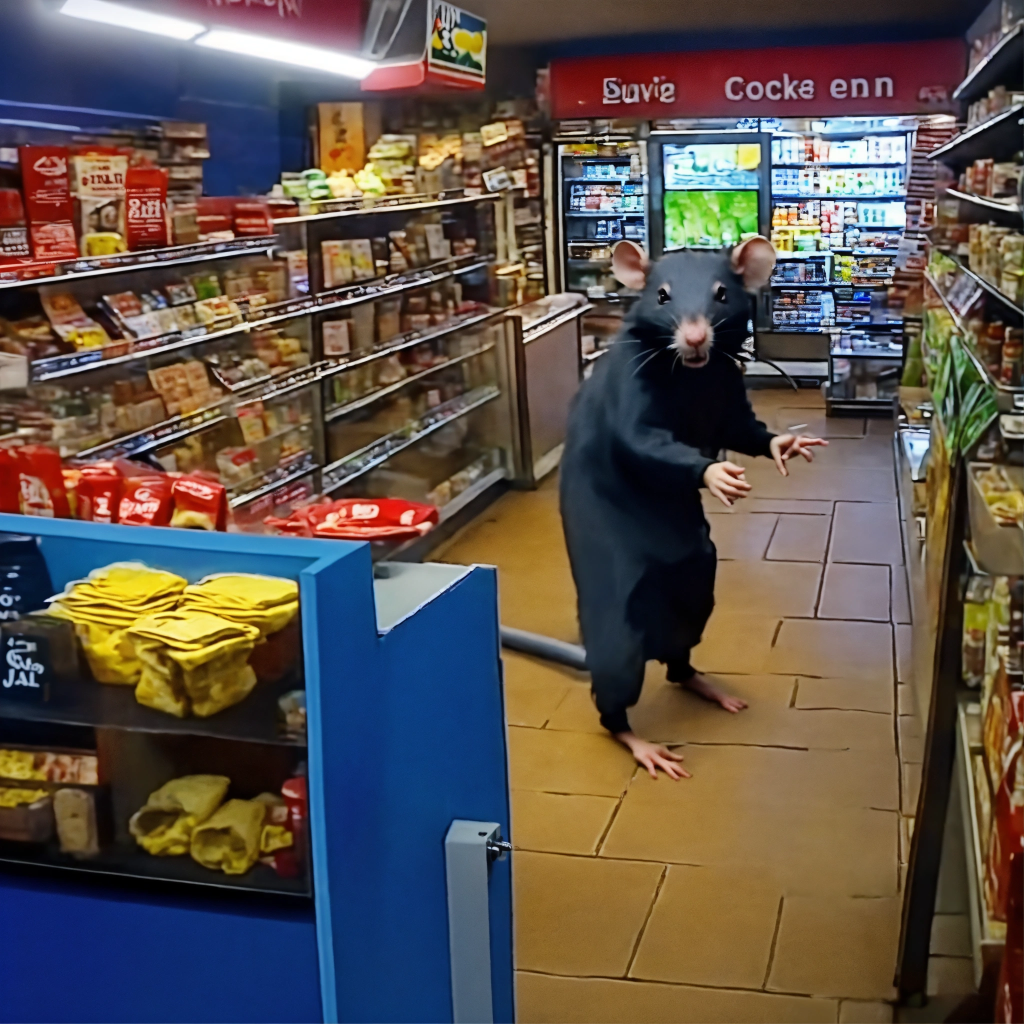 Cctv recording of human like rat robbing store